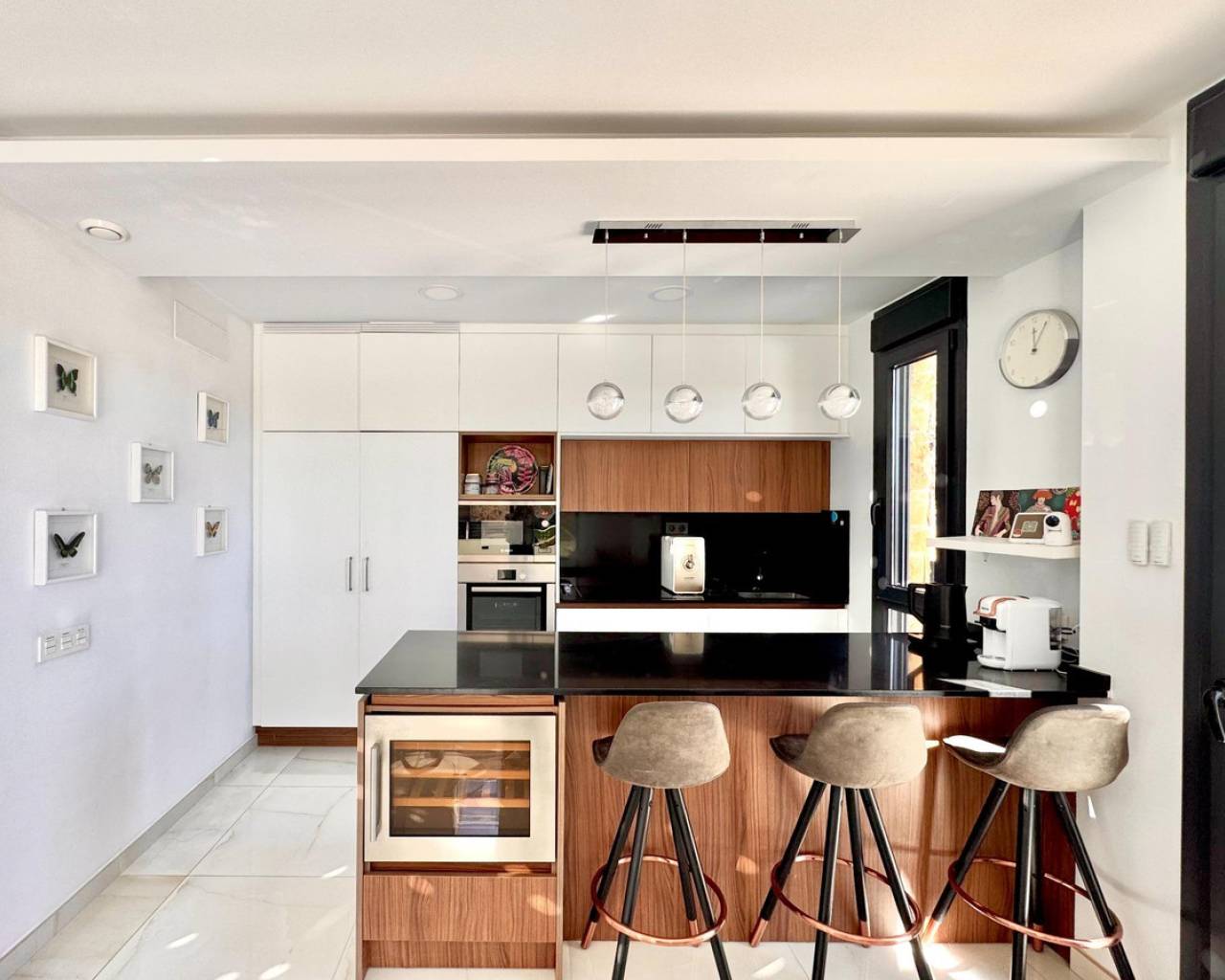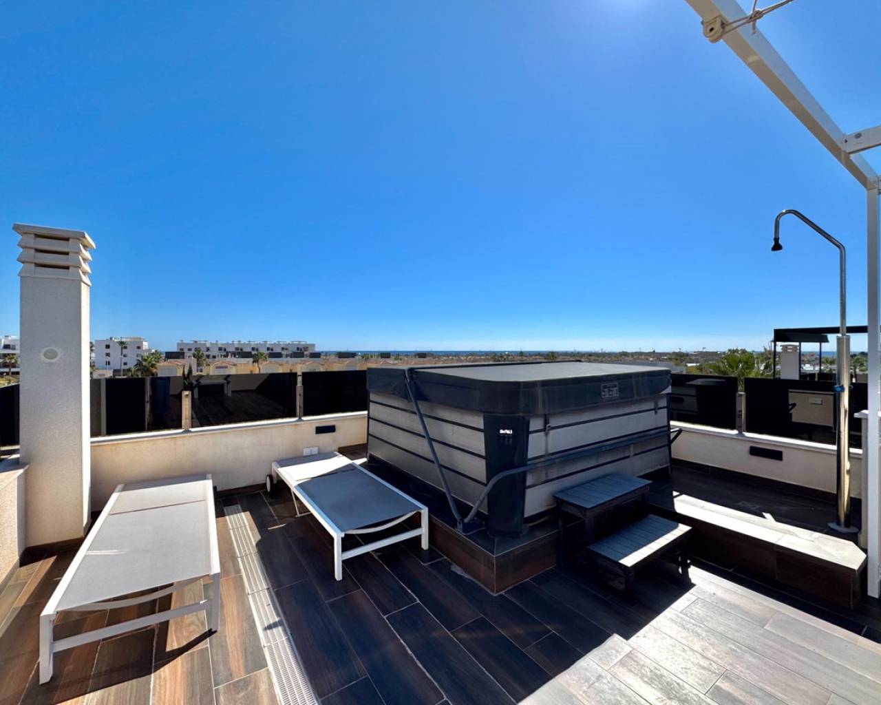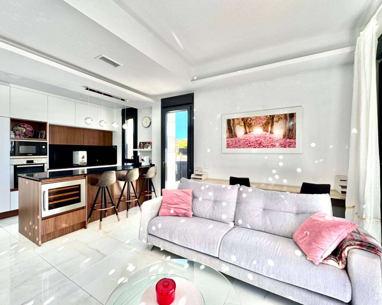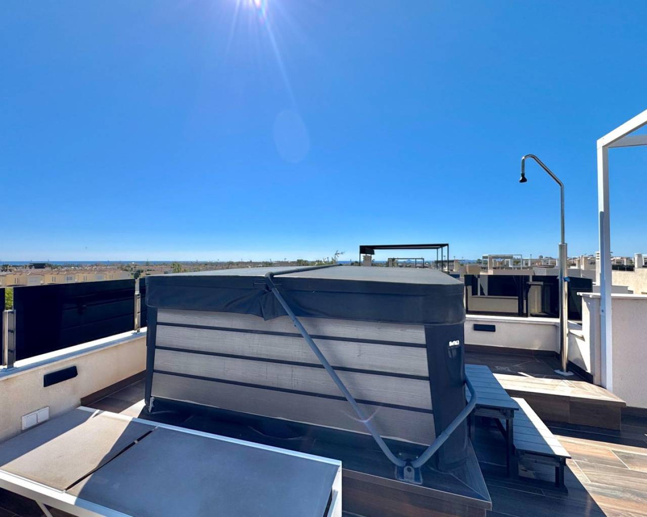 villa independiente moderna construida en 2021, lista para entrar a vivir y completamente amueblada, situada en una zona tranquila y soleada cerca de la playa y de todos los servicios. esta elegante vivienda combina espacio, luz y confort y es ideal tanto para vivir todo el año como para disfrutarla como segunda residencia en la costa blanca. la villa cuenta con 285 m2 construidos y 185 m2 útiles, distribuidos en dos plantas más un amplio sótano. en el interior encontramos cuatro dormitorios y cuatro baños, con una distribución moderna y abierta y grandes ventanas panorámicas que aportan mucha luz natural. en el exterior se puede disfrutar de un jardín privado con piscina, varias terrazas y un precioso solárium en la azotea con jacuzzi. gracias a su orientación sur la vivienda disfruta de sol durante casi todo el día. la propiedad también dispone de aire acondicionado, calefacción eléctrica individual, armarios empotrados, trastero y plaza de aparcamiento privada. los paneles solares aportan mayor eficiencia energética y reducen los costes de electricidad. la ubicación es ideal: la playa se encuentra a solo cinco minutos en coche, supermercados a cinco minutos y un centro comercial a unos diez minutos. el aeropuerto de alicante está a aproximadamente 45 minutos. una villa moderna y confortable, perfecta para disfrutar del estilo de vida mediterráneo.