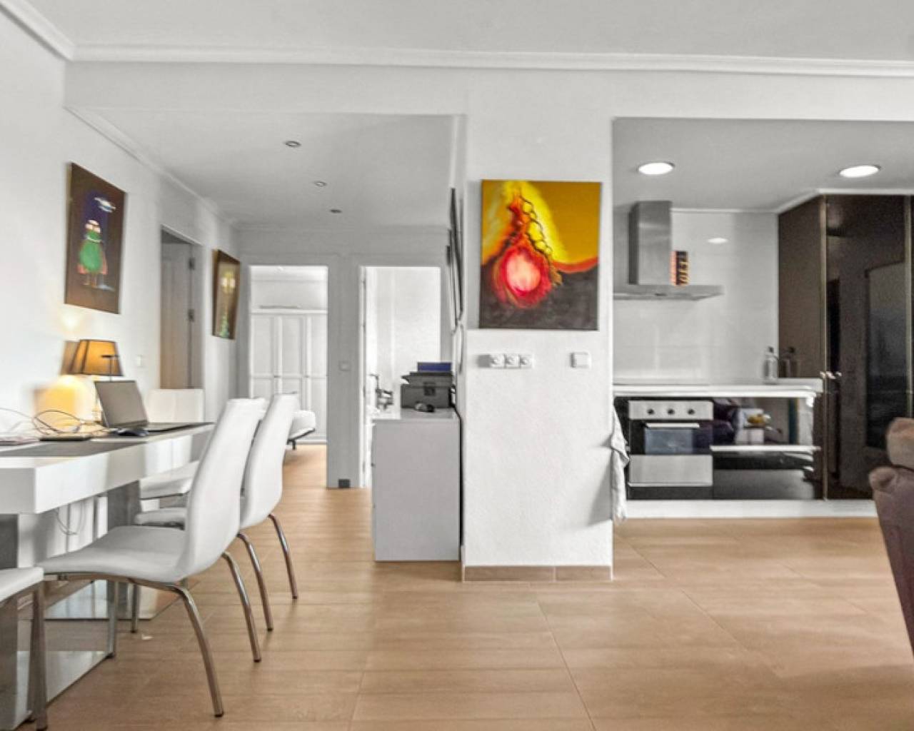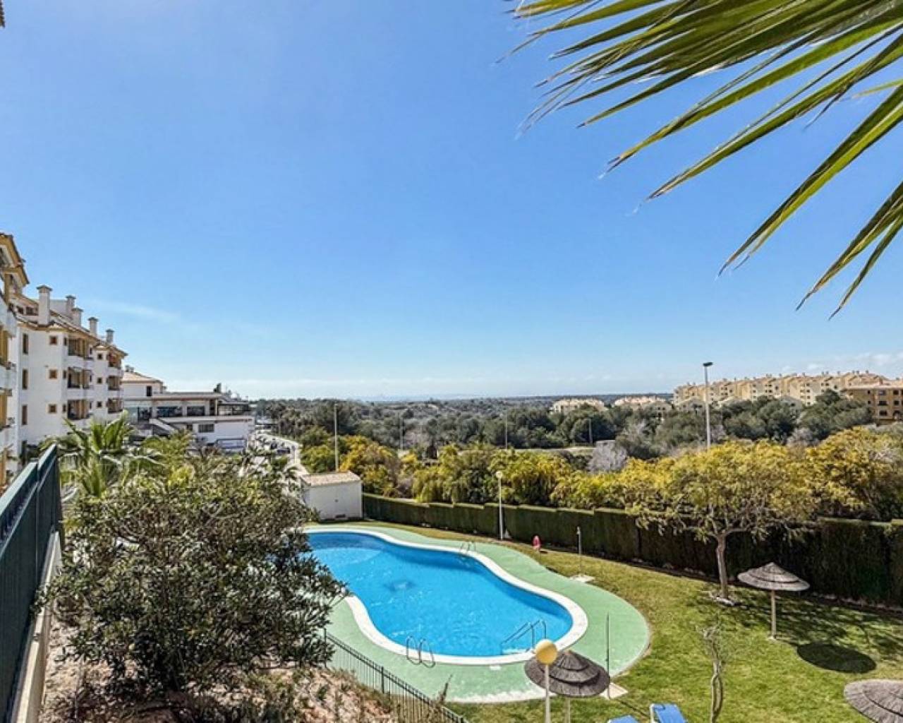 Descubra este luminoso y elegante apartamento situado en una exclusiva urbanización en Campoamor, a pocos pasos de Mercadona, numerosos bares y restaurantes, y el conocido centro comercial La Fuente. La vivienda cuenta con una distribución funcional: Dos amplios dormitorios con armarios empotrados Dos baños modernos, uno de ellos en suite Cocina totalmente equipada abierta al salón-comedor Amplia terraza privada ideal para disfrutar del clima mediterráneo El residencial ofrece piscina comunitaria, zonas verdes cuidadas y un ambiente tranquilo y familiar. Ubicado cerca del prestigioso campo de golf Campoamor, es una opción ideal tanto para amantes del golf como de la naturaleza. Perfecto como segunda residencia, inversión o vivienda habitual en la Costa Blanca.