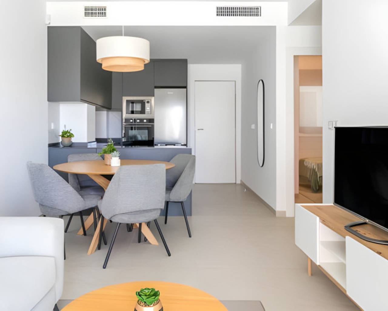 Se trata de una nueva promoción de apartamentos Torrevieja, con exclusivas vistas al mar y en una zona residencial con todos los servicios. El residencial consta de apartamentos de 2 y 3 dormitorios y 2 baños, todos ellos con amplias terrazas y vistas al mar mediterráneo. Orientación Sureste. Las viviendas se han diseñado pensando en el confort y la comodidad de las mismas, con unas excelentes calidades, permitiendo así disfrutar al máximo de las zonas comunes del residencial. Todas las viviendas disponen de amplias terrazas con vistas al mar, jardines privados en planta baja y solariums en plantas áticos con accesos desde el interior de la vivienda. Esta promoción es una comunidad privada y cerrada, a 700 metros de la playa La Mata. Este residencial se caracteriza por sus amplias zonas ajardinadas y sus completas instalaciones desde las cuales podrá disfrutar del sol y las vistas al mar; dichas zonas comunes están equipadas con piscinas con cascada y zonas ajardinadas. Torrevieja se caracteriza por las buenas infraestructuras de comunicación, así como sanitarias, la cercanía al aeropuerto de Alicante, y la cantidad de servicios abiertos durante todo el año. A tan solo 20 km nos podemos encontrar los campos de golf de Villamartín, Campoamor, las Ramblas y Las Colinas; todos ellos de 18 hoyos, así como el centro comercial Torremarina, con comercios de todo tipo, restaurantes, supermercado Mercadona, centro veterinario, farmacia, etc.