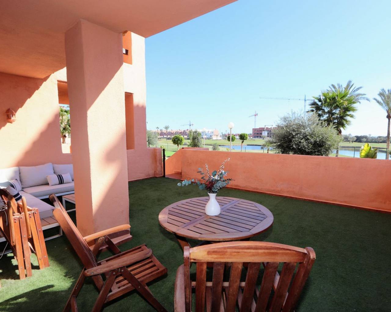 Un campo de golf increíble en una ciudad costera con todas las comodidades. El campo cuenta con grandes lagos, palmeras y fauna silvestre. ¡Serena Golf es uno de los mejores campos de golf de Murcia! El magnífico campo de golf Serena cuenta con grandes lagos y casi 70 bunkers de diseño impecable, perfectamente integrados en el paisaje. Diseñado por el exjugador de la Ryder Cup, Manuel Piñero, el campo serpentea alrededor de la Torre del Rame, una torre de vigilancia del siglo VI. Con suaves colinas y onduladas calles bordeadas de palmeras y olivos, Serena Golf es un campo precioso para todos los niveles, a la vez que estratégico para recompensar a los jugadores más audaces y aventureros. Este apartamento en planta baja, completamente reformado, consta de 3 dormitorios, 2 baños, salón-comedor y cocina totalmente equipada. La propiedad cuenta con una terraza privada con vistas a la piscina comunitaria, los jardines, el lago y el campo de golf, aire acondicionado y aparcamiento subterráneo con trastero. Los Alcázares se encuentra a orillas del Mar Menor, rodeado por los municipios de San Javier, Torre Pacheco y Cartagena. Los Alcázares tiene una fantástica costa con más de 7 kilómetros de playas de arena que dan acceso directo a las cálidas aguas del Mar Menor. Paralelo a estas playas y extendiéndose a lo largo de toda la ciudad, se encuentra el larguísimo paseo marítimo, ideal para caminar y, durante los meses de invierno, para ir en bicicleta. El centro de la ciudad es bastante extenso y cuenta con una buena selección de tiendas, mientras que el Centro Bahía, en la zona de Los Narejos, está repleto de restaurantes internacionales que siempre están muy concurridos en temporada alta. El mercado callejero se celebra todos los martes por la mañana en Los Alcázares y, si no lo encuentras, también hay uno en Los Narejos los sábados por la mañana. Si aún quieres más opciones, siempre puedes jugar al golf en los campos de La Serena y Roda o en el minigolf Golf Deluxe.