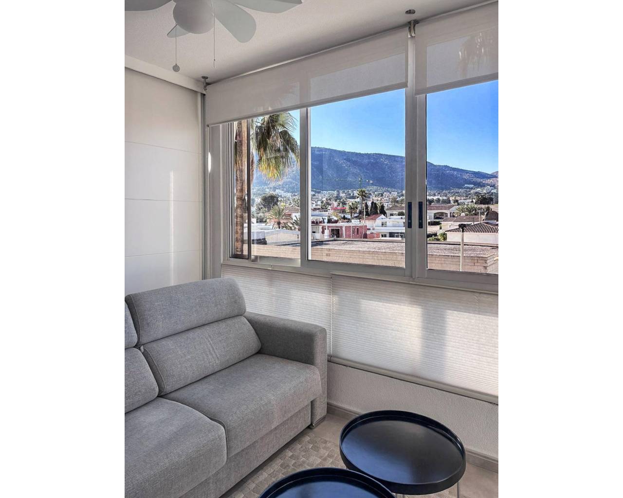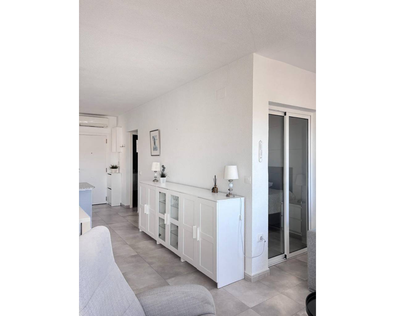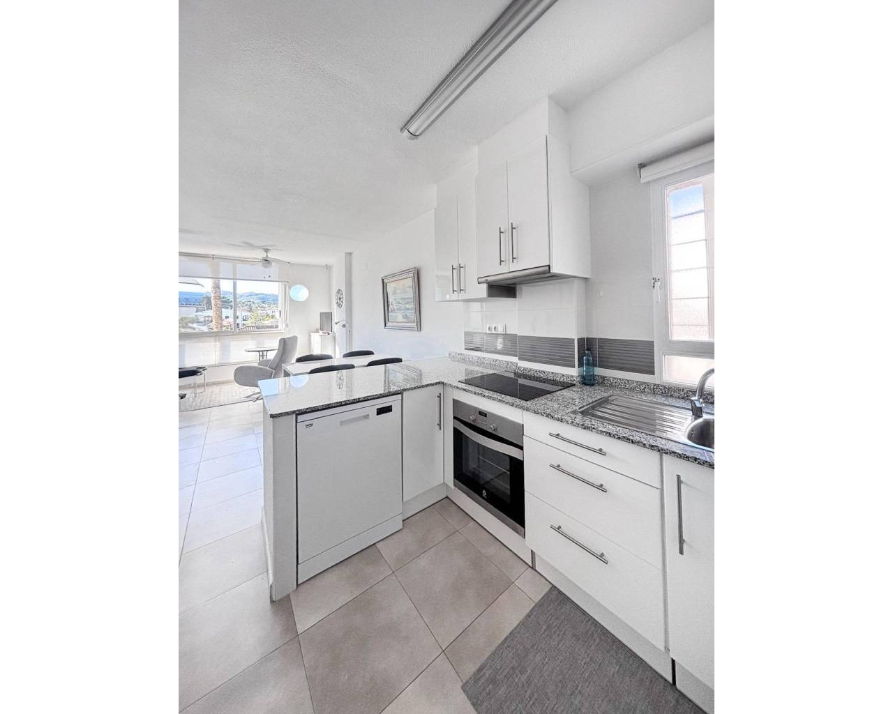 Apartamento de 1 dormitorio ubicado en el centro del Albir, a tan solo 850m de la playa. Completamente reformado, destaca por sus vistas y grandes ventanales con orientación Sur, lo que garantiza buena iluminación y sol durante todo el día. Cuenta con cocina americana, aire acondicionado y armarios empotrados.~Segunda planta con ascensor, cerca de todos los servicios, con mucha variedad en restaurantes y comercios.~Urbanización con zonas comunes muy cuidadas y piscina.~Plaza de garaje incluida en el precio.