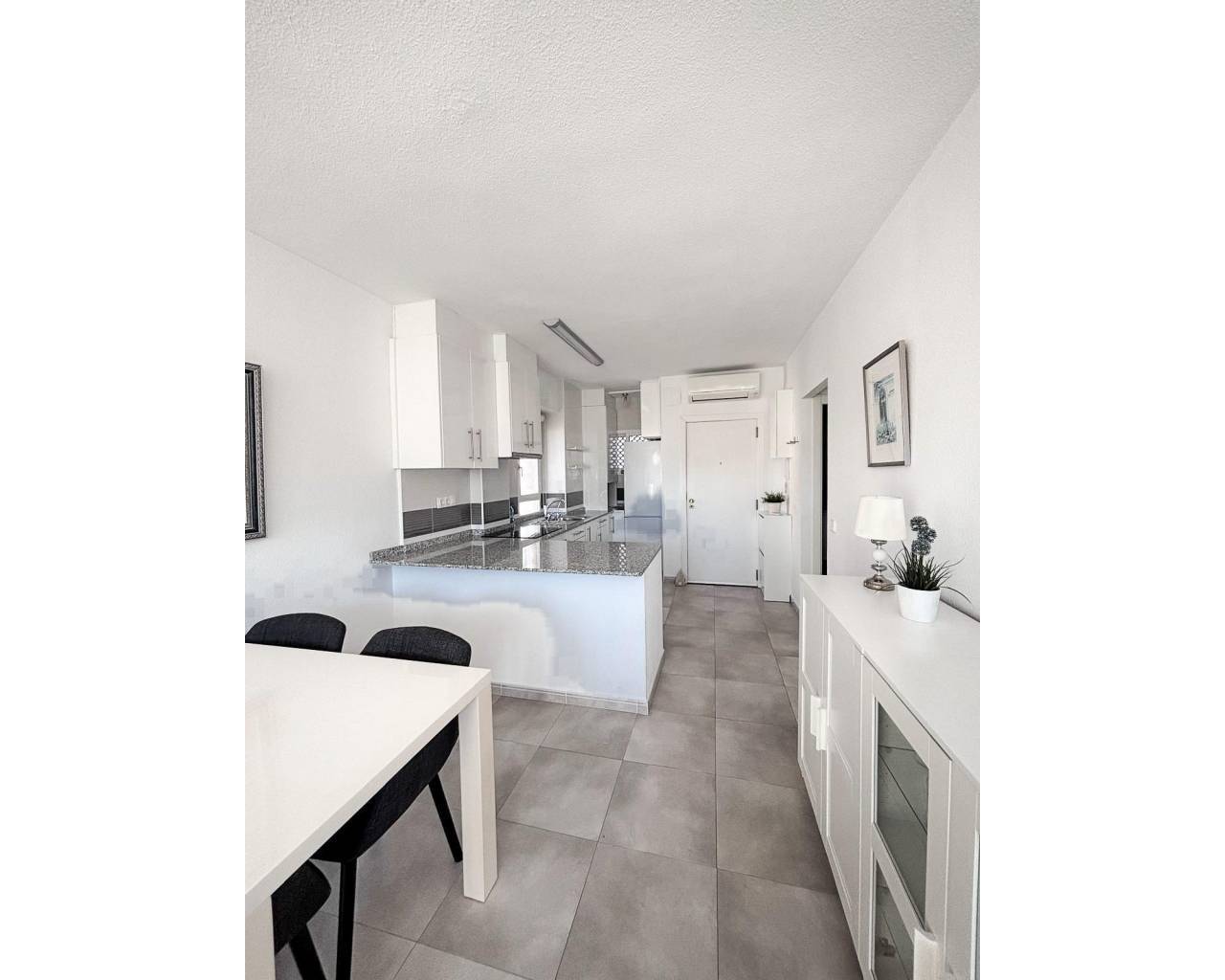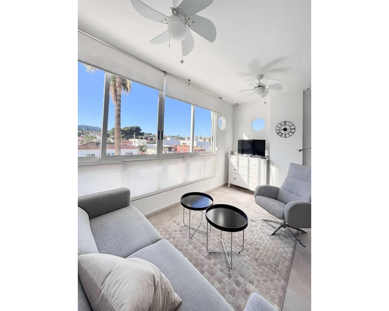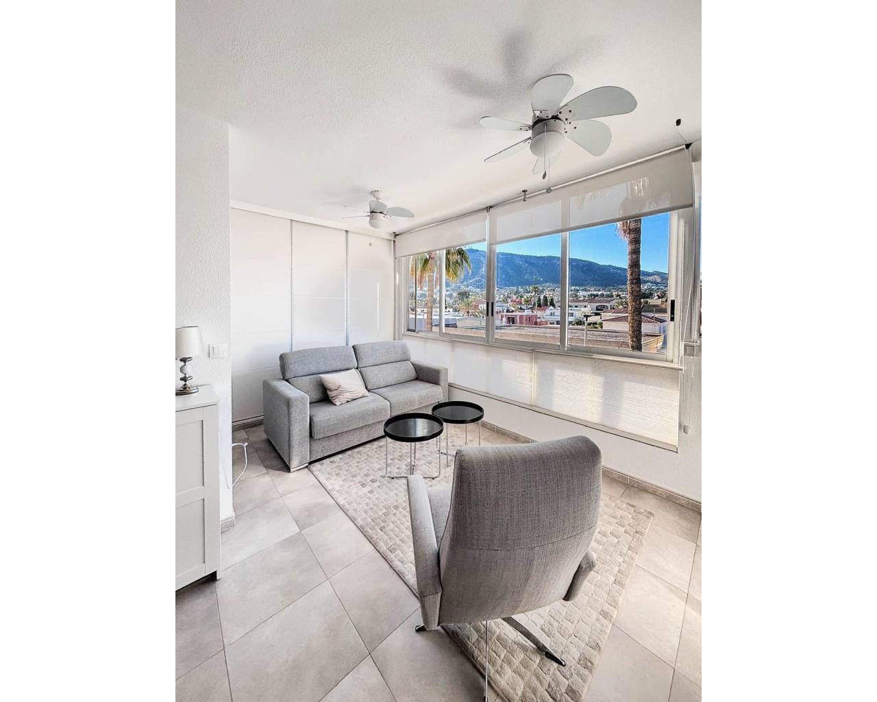 Apartamento de 1 dormitorio ubicado en el centro del Albir, a tan solo 850m de la playa. Completamente reformado, destaca por sus vistas y grandes ventanales con orientación Sur, lo que garantiza buena iluminación y sol durante todo el día. Cuenta con cocina americana, aire acondicionado y armarios empotrados.~Segunda planta con ascensor, cerca de todos los servicios, con mucha variedad en restaurantes y comercios.~Urbanización con zonas comunes muy cuidadas y piscina.~Plaza de garaje incluida en el precio.