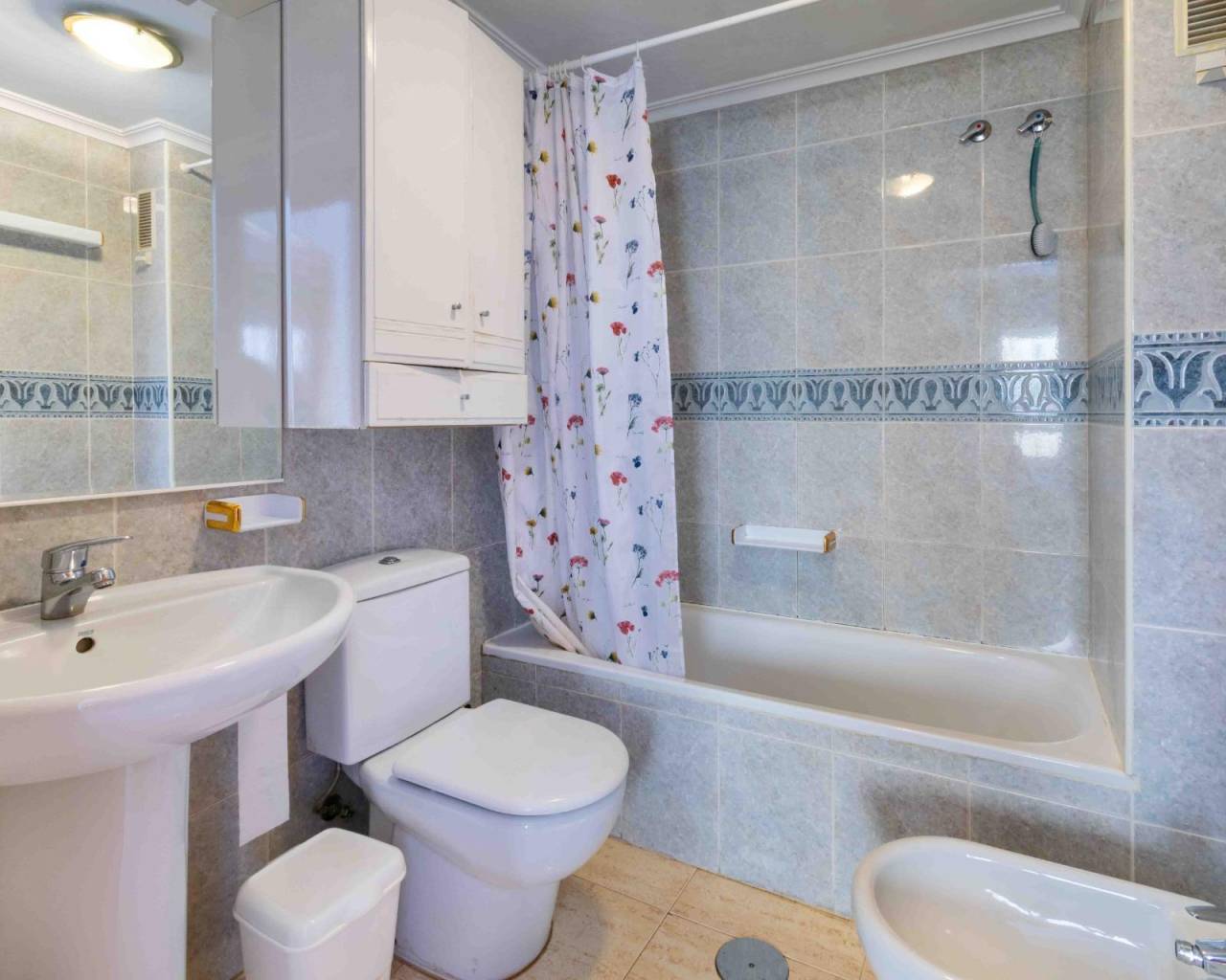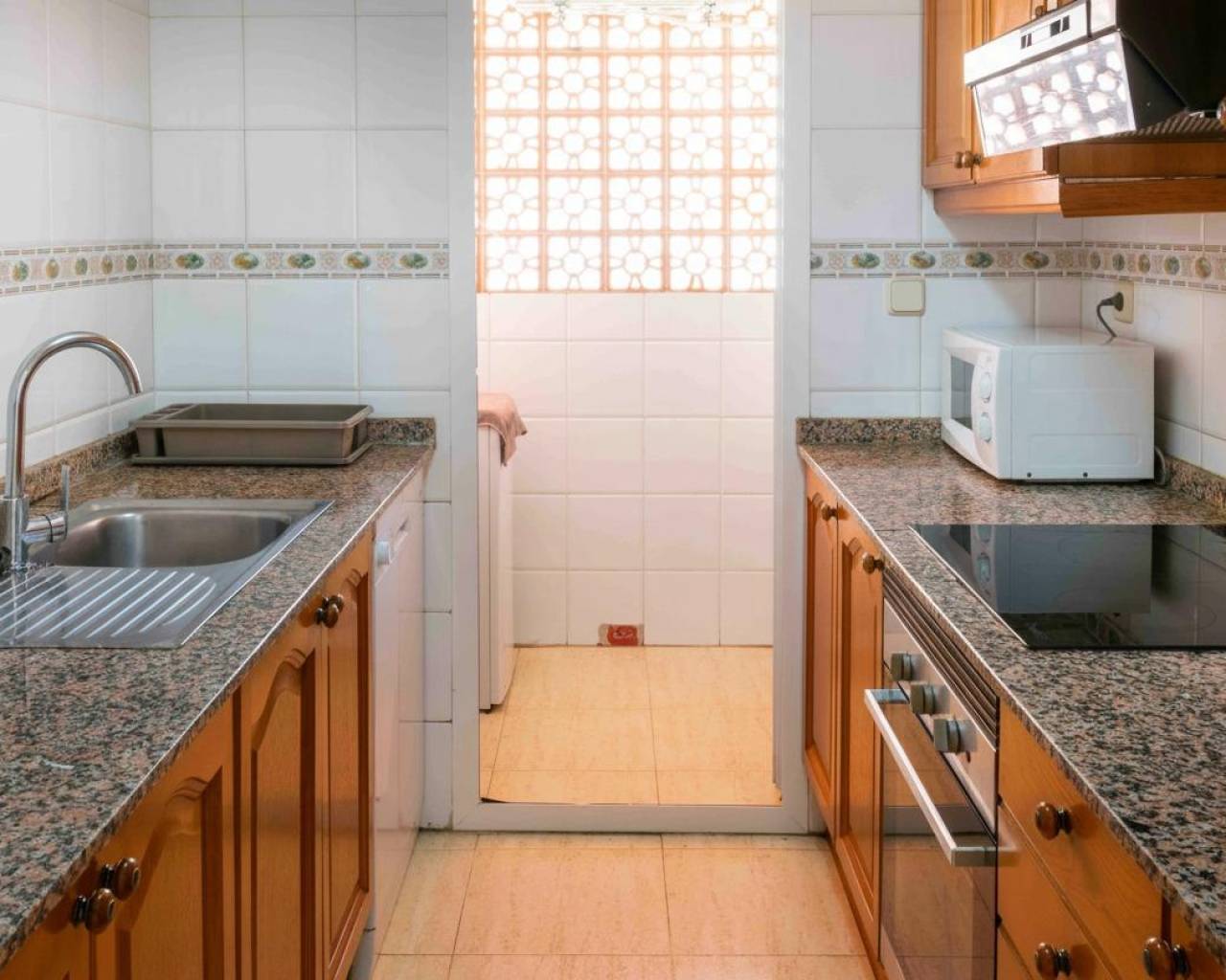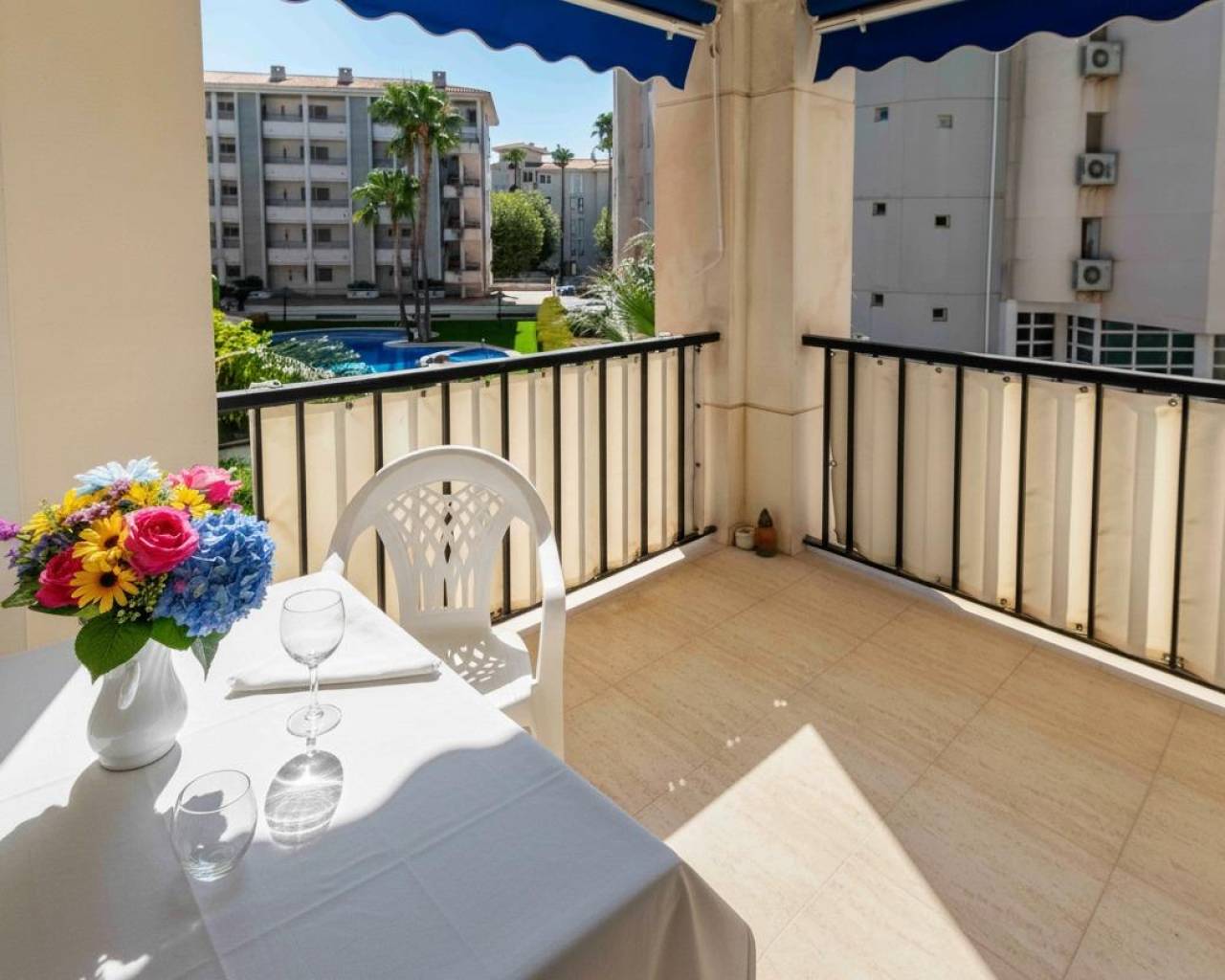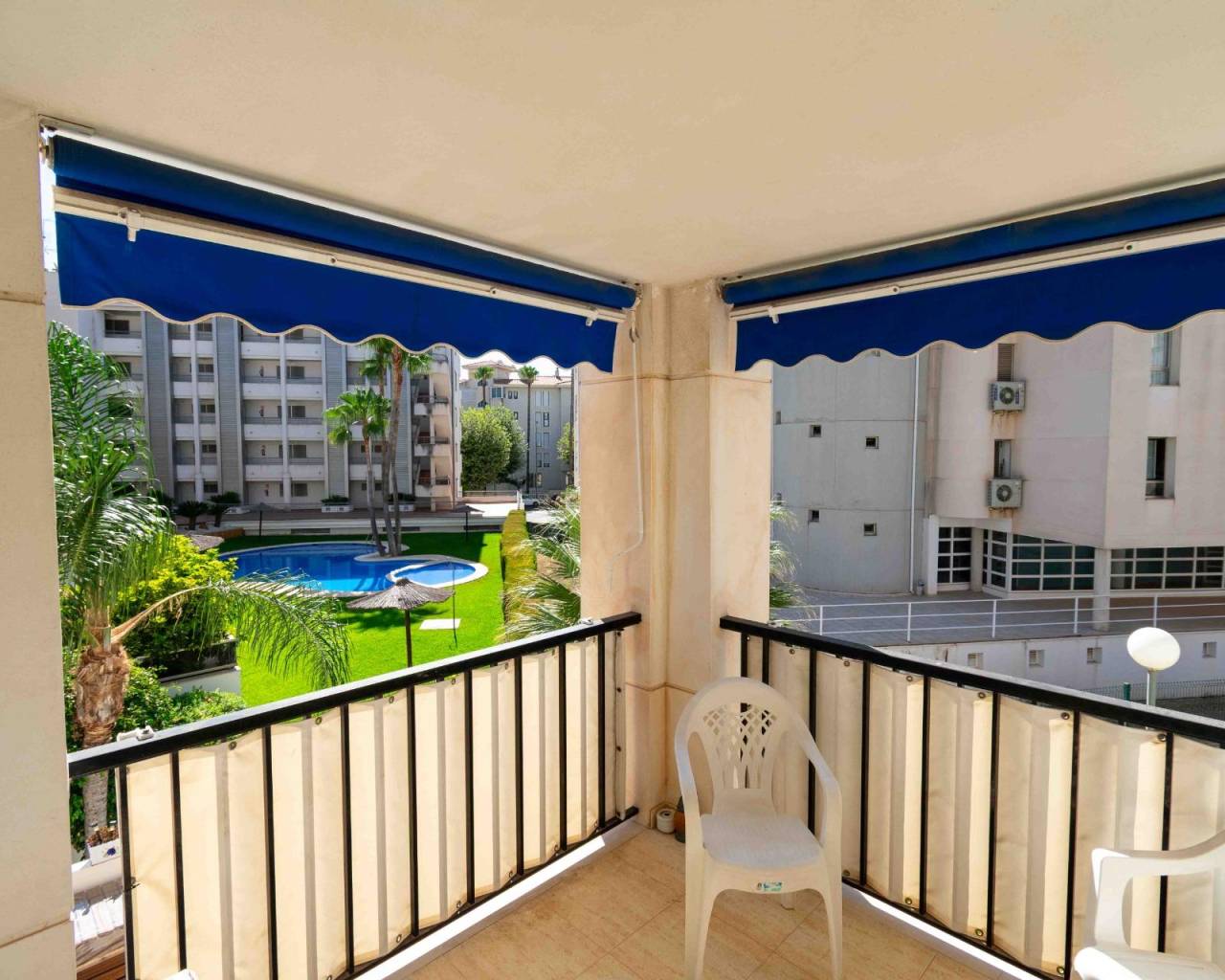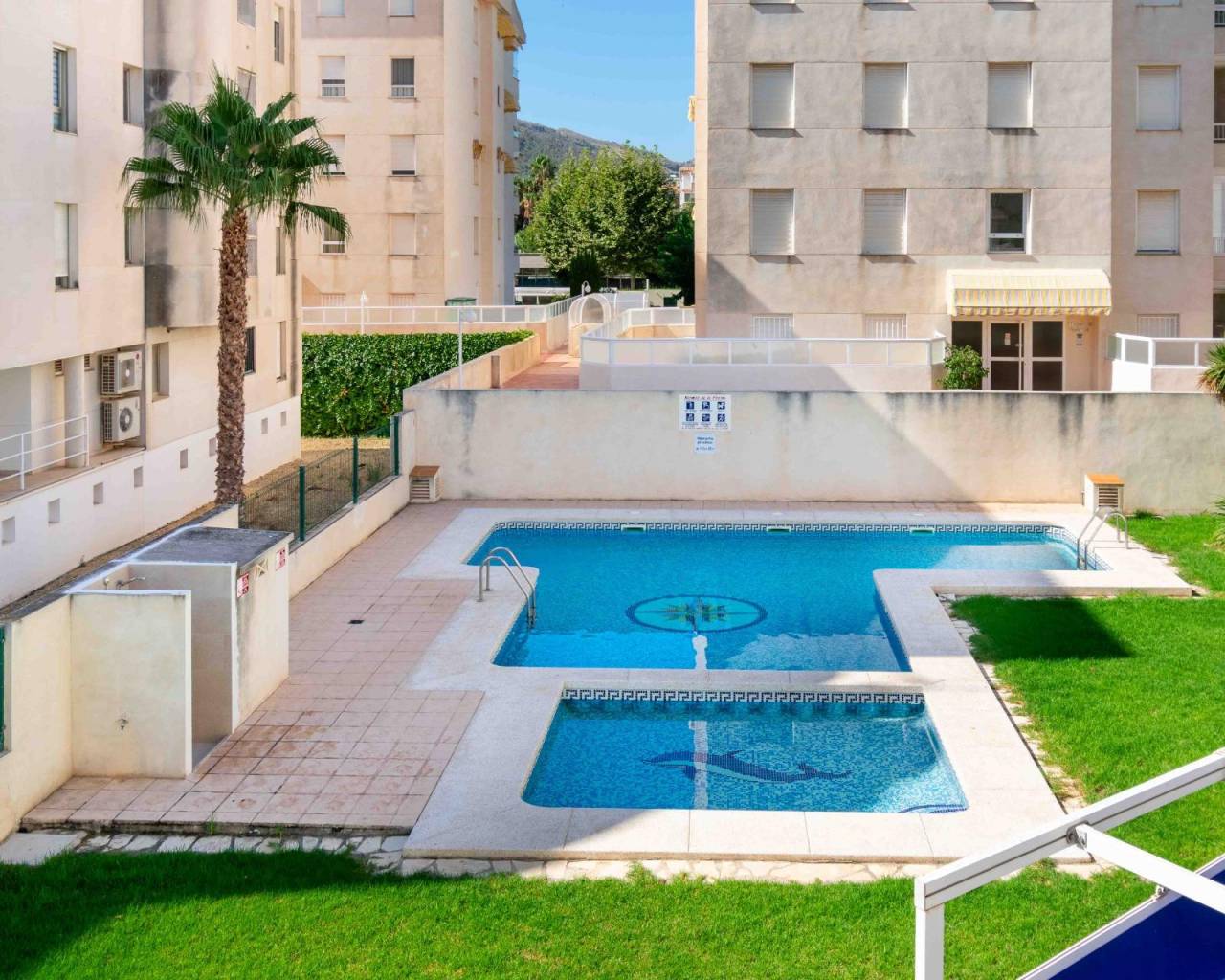Apartamento de tres dormitorios, dos baño, cocina independiente con plaza de garaje incluido en el precio en finca bien cuidada con piscina comunitaria y zona verde a sólo 500m de la playa del Albir.~Este céntrico apartamento se vende amueblado y para entrar a vivir. Dispone de un salón comedor amplio con salida directa a la terraza que da a la zona de la piscina. Tenemos una cocina independiente y totalmente equipada con galería/lavandería.~El dormitorio principal tiene luz natural y vistas tambien a la piscina, armario empotrado y un baño competo en suite. Los otros dos dormitorios tambien tienen luz natural y armarios empotrados. Además tenemos otro baño completo con bañera. ~El precio incluye una plaza de garaje de 18m2 donde se puede aprovechar una zona como trastero. El acceso a la mismo es ancho desde la calle.~La finca está bien cuidada y tiene una preciosa piscina comunitaria y zona de césped alrededor.~En solo cinco minutos llegamos andando a la playa del Albir, además de tener muy cerca restaurantes, comercios, supermercados y servicios como transporte publico, colegio y parques públicos.~~~~