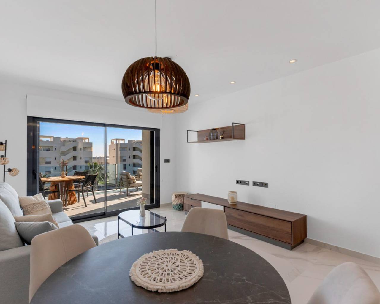 El Raso: Un apartamento para vivir despacio las horas buenas del día ☀️ En este apartamento de El Raso, Guardamar del Segura, hay algo que se percibe enseguida: la sensación de bienestar. La luz entra bien, la distribución es cómoda y la terraza orientada al sur acaba siendo uno de esos rincones que más se disfrutan: aquí está garantizado solecito durante todo el dia. Desayunar fuera, leer un rato al sol, alargar una conversación sin mirar la hora… pequeñas escenas que aquí salen solas. La vivienda tiene 2 dormitorios dobles y 2 baños completos, con espacios pensados para resultar cómodos de verdad. Además, desde la amplísima terraza se disfruta de vistas a la espectacular piscina de la urbanización, aportando esa sensación de respiro que tanto se valora. La urbanización cerrada nos garantiza seguridad para nosotros y nuestros peques, y además cuenta con piscina, gimnasio, spa... todo en un entorno muy cuidado. De esos sitios donde no todo pasa dentro de casa, porque también apetece bajar, pasear, estar. Incluye también una cómoda plaza de parking y el plus de un amplio trastero, imprescindibles para que la vivienda sea bonita, sí, pero también práctica. Y todo esto en una zona como El Raso, tranquila, cuidada y a pocos minutos de las playas de Guardamar, una de las mejores de la Costa Blanca. Una propiedad que transmite una forma de vivir más ligera, más cómoda y más amable ????