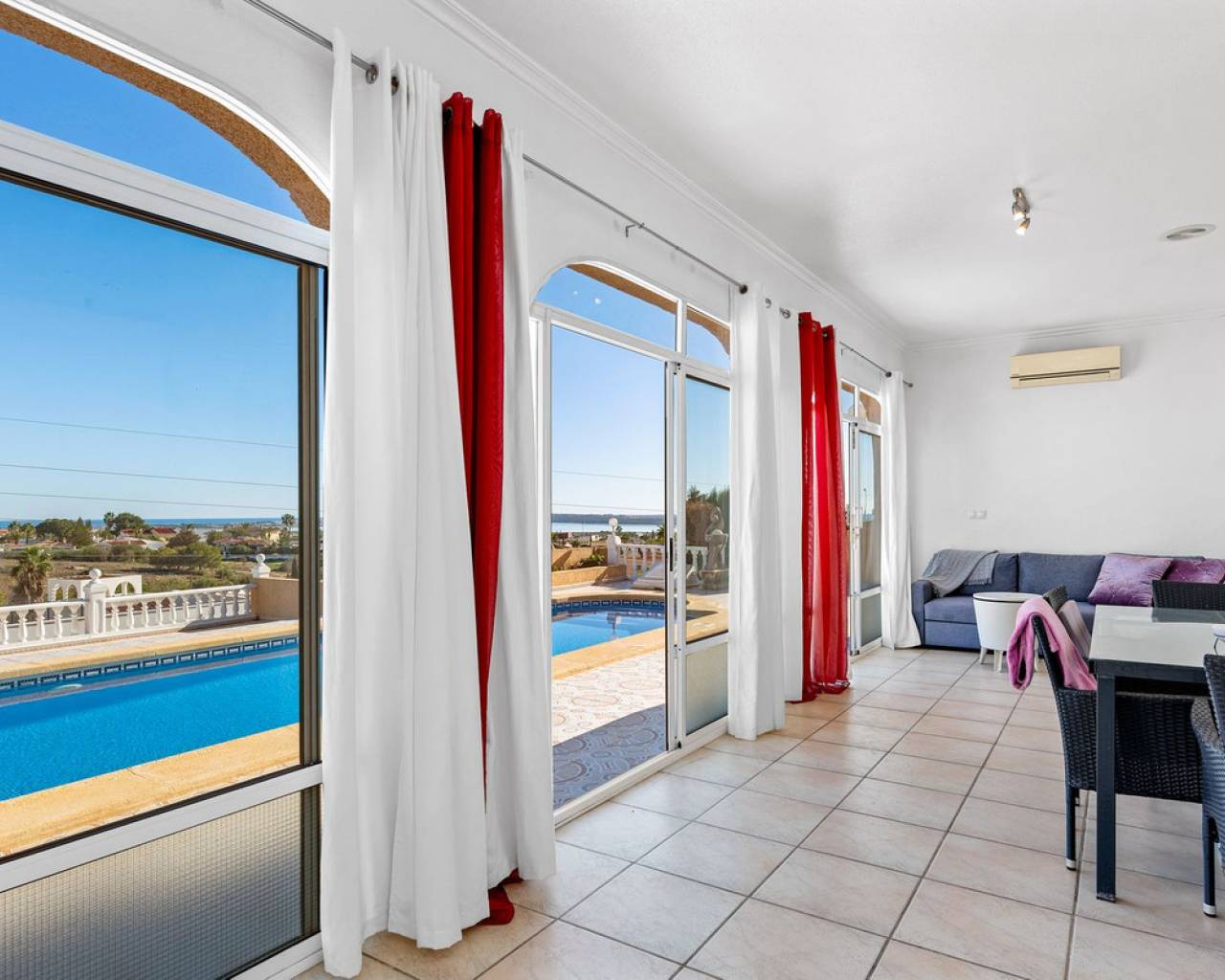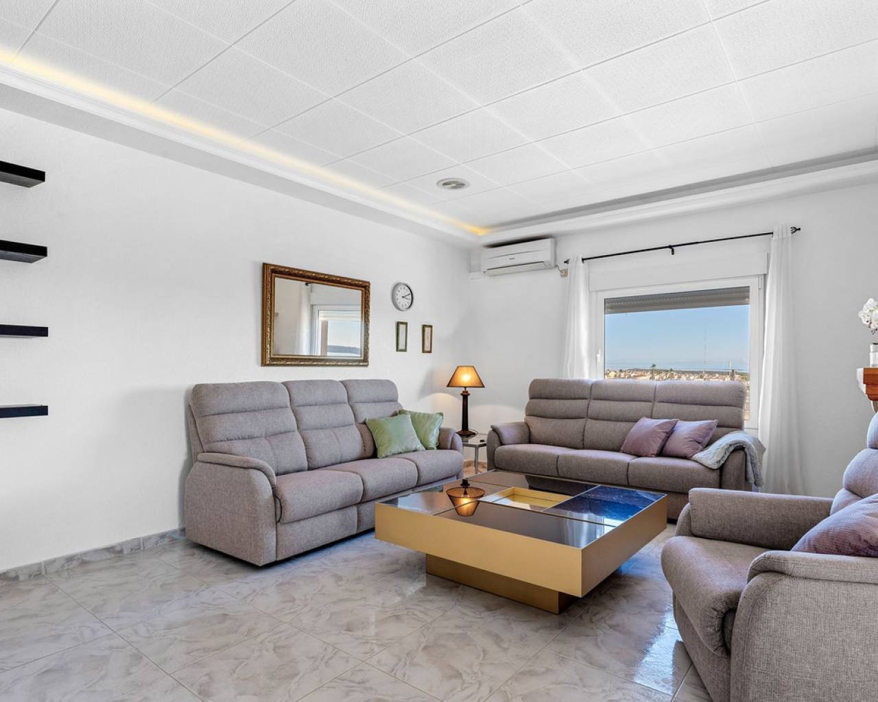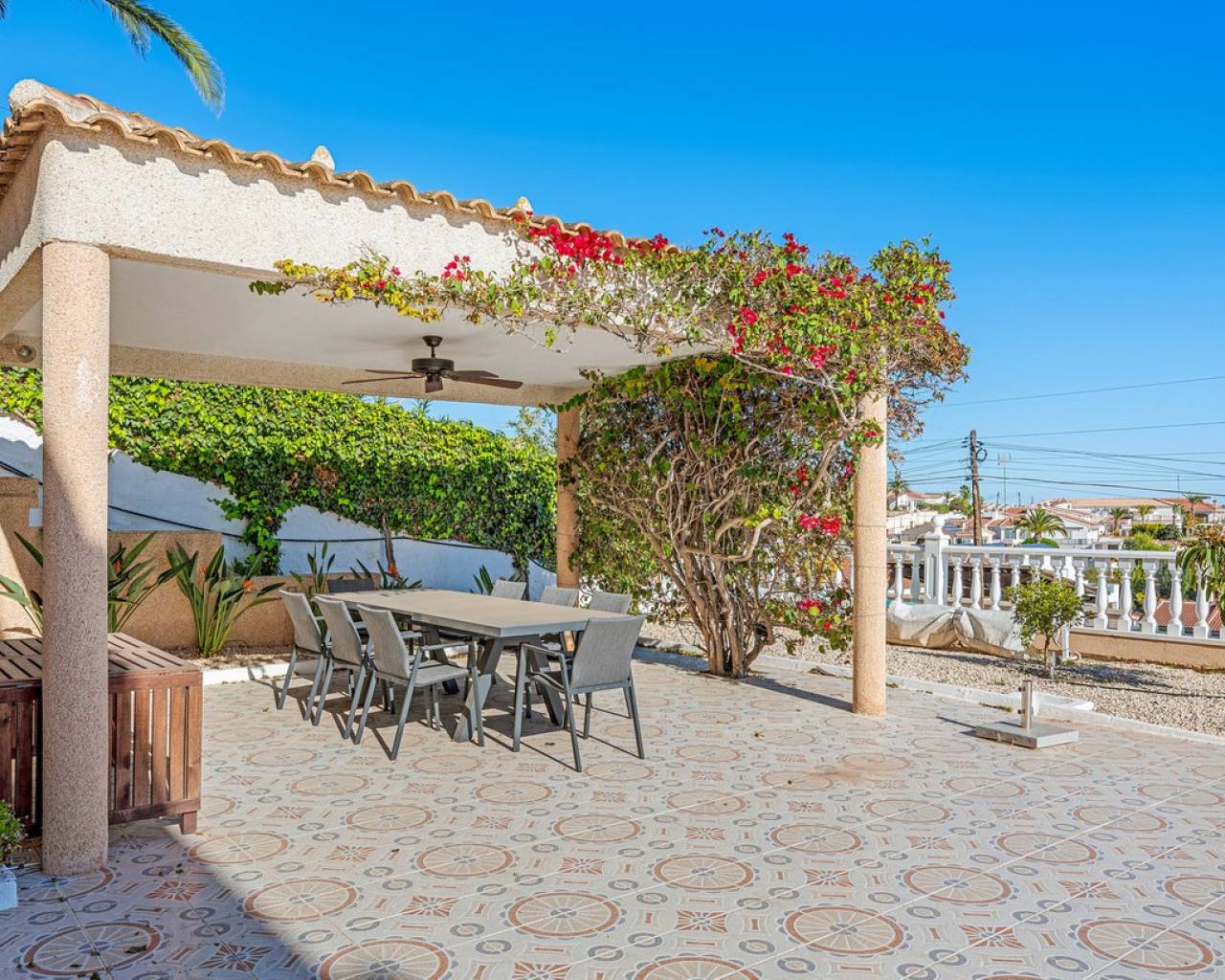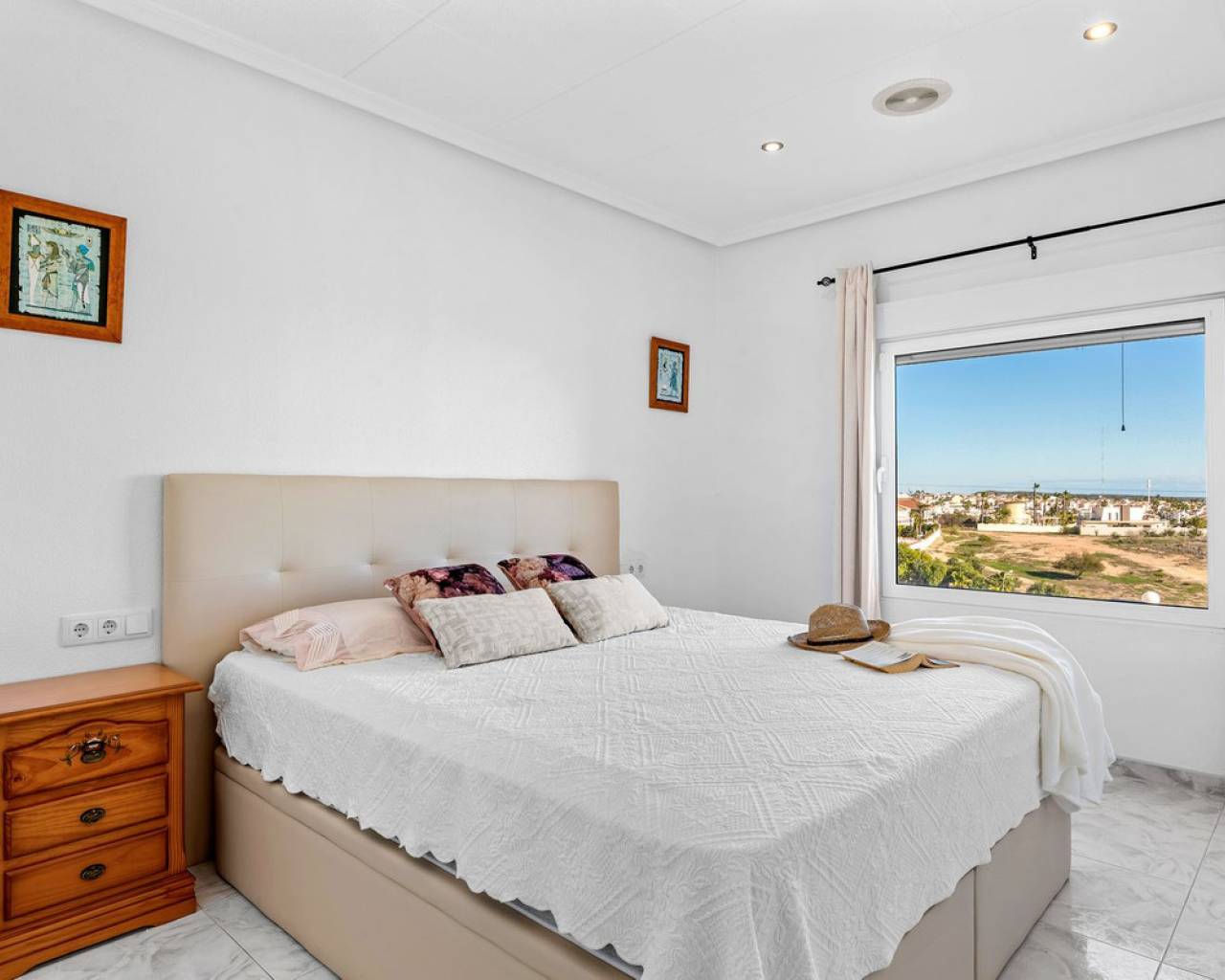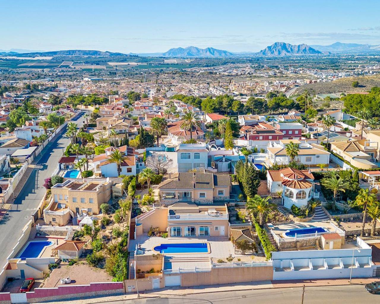 Bienvenido a lo que podría ser la vista más impresionante de Ciudad Quesada. Esta elegante y espaciosa villa con orientación sureste ofrece vistas panorámicas que se extienden desde el resplandeciente mar Mediterráneo hasta las famosas Salinas Rosadas y la exuberante vegetación de la Laguna de La Mata. Ubicada en una generosa parcela de 925 metros cuadrados, esta casa de hermoso diseño combina comodidad y espacio, con múltiples terrazas, un apartamento privado para invitados y una gran piscina para disfrutar plenamente del estilo de vida al aire libre que caracteriza a España. Se accede a la propiedad directamente desde el nivel de la calle a un amplio garaje privado con espacio suficiente para aparcar cómodamente dos vehículos. Desde aquí, una escalera conduce a la zona de la piscina, donde se encuentra el apartamento de invitados independiente. El apartamento es totalmente independiente y cuenta con una cocina y sala de estar de planta abierta, un baño privado con ducha y varias grandes puertas de cristal que dan a la terraza y la piscina. Este espacio es perfecto para recibir visitas o como oportunidad de alquiler. Justo al lado del apartamento, también hay un práctico trastero ideal para guardar cojines, muebles de exterior o accesorios de piscina. La zona exterior de esta planta es espectacular. Una preciosa piscina de diez por cinco metros está rodeada por una amplia terraza abierta, ideal para tomar el sol o disfrutar del entretenimiento. Un acogedor comedor a la sombra, decorado con coloridas buganvillas, crea un rincón tranquilo y privado para comer al aire libre mientras se disfruta de vistas panorámicas al mar. Desde esta terraza, se puede acceder a la casa principal, que se abre a otra amplia terraza con vistas panorámicas aún mejores: esta vez a las Salinas Rosadas, los pueblos cercanos de Guardamar del Segura y Rojales, y las lejanas aguas azules del Mediterráneo. Se accede a la parte principal de la casa a través de un salón-terraza totalmente acristalado. Este solárium es el lugar perfecto para disfrutar del café de la mañana mientras se contempla el amanecer. Gracias a los toldos instalados para mayor sombra durante los meses más cálidos, este espacio se puede disfrutar cómodamente durante todo el año. Desde el solárium, se puede acceder al pasillo, donde se encuentra un aseo de invitados, o directamente al corazón de la casa: el luminoso y abierto comedor. Justo delante hay un despacho privado, que podría convertirse fácilmente en un cuarto dormitorio si lo desea. A la izquierda del comedor se encuentra una cocina moderna y bien equipada con un elegante acabado blanco y un gran frigorífico de dos puertas. Conectado a la cocina hay un amplio lavadero, que también conduce a un espacio de almacenamiento adicional situado a pocos pasos. Junto al lavadero hay un despacho que es el cuarto dormitorio. Al otro lado del comedor se encuentra una amplia sala de estar, con una acogedora chimenea, perfecta para las noches más frescas. Aquí encontrará un amplio espacio para relajarse con la familia o los amigos, incluyendo espacio para un sofá grande y un sistema de entretenimiento. Más allá del salón se encuentra el ala de los dormitorios. Hay tres amplios dormitorios en total, cada uno con armarios empotrados y luz natural. El dormitorio principal cuenta con su propio baño en suite, mientras que los dos dormitorios restantes comparten un segundo baño elegante y funcional. Cada detalle de esta casa se ha mantenido con esmero y se ha decorado con buen gusto. La propiedad se vende completamente amueblada, lo que significa que puede mudarse de inmediato y comenzar a disfrutar de la vida bajo el sol español sin tener que mover un dedo. En el exterior, la parcela está ingeniosamente diseñada en varios niveles para maximizar el sol y la sombra durante todo el día. Ya sea que esté descansando junto a la piscina, leyendo en la terraza superior o disfrutando de una cena tranquila bajo las estrellas, siempre encontrará el lugar perfecto. El jardín está bellamente embaldosado y cuidadosamente plantado, con un paisajismo de bajo mantenimiento que añade encanto y color durante todo el año. Ubicada en una zona tranquila y consolidada, la villa está a un corto paseo de tiendas, bares y restaurantes, con el centro de Ciudad Quesada a menos de quince minutos a pie. Las galardonadas playas de Guardamar del Segura y La Mata están a un corto trayecto en coche, y varios pueblos con encanto como Benijófar, Benimar y Rojales están a poca distancia. Esta es realmente una de las propiedades con mejores vistas en Ciudad Quesada, que combina elegancia, funcionalidad y algunos de los mejores paisajes de la Costa Blanca. Ya sea que busque una residencia permanente, una escapada vacacional o una inversión con un excelente potencial de alquiler, esta propiedad lo tiene todo. Para apreciar plenamente todo lo que esta casa ofrece, le recomendamos encarecidamente visitarla.