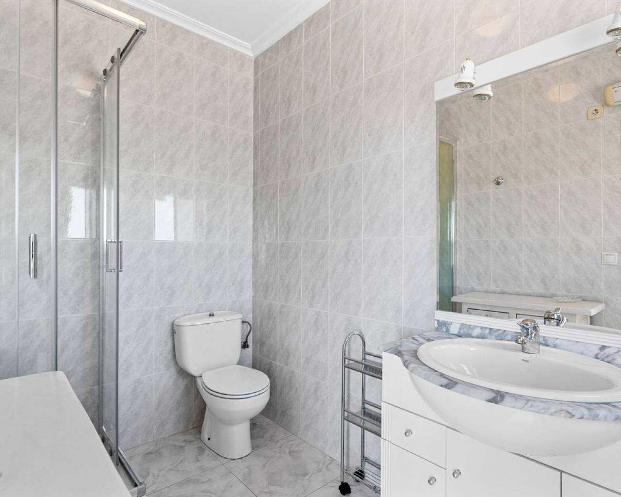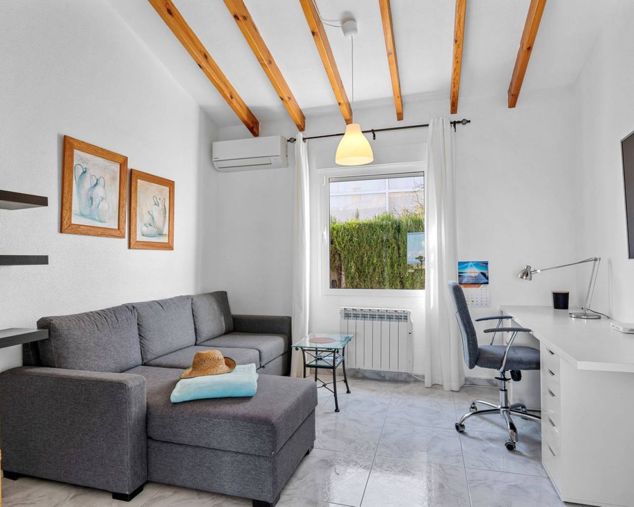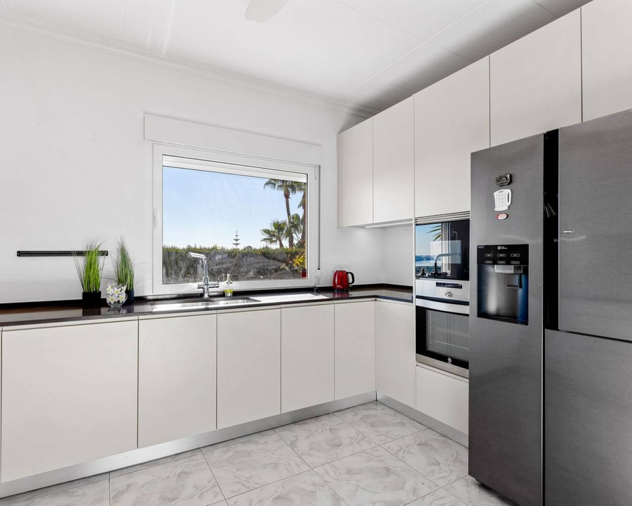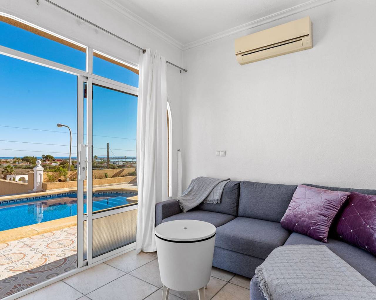 Bienvenido a lo que podría ser la vista más impresionante de Ciudad Quesada. Esta elegante y espaciosa villa con orientación sureste ofrece vistas panorámicas que se extienden desde el resplandeciente mar Mediterráneo hasta las famosas Salinas Rosadas y la exuberante vegetación de la Laguna de La Mata. Ubicada en una generosa parcela de 925 metros cuadrados, esta casa de hermoso diseño combina comodidad y espacio, con múltiples terrazas, un apartamento privado para invitados y una gran piscina para disfrutar plenamente del estilo de vida al aire libre que caracteriza a España. Se accede a la propiedad directamente desde el nivel de la calle a un amplio garaje privado con espacio suficiente para aparcar cómodamente dos vehículos. Desde aquí, una escalera conduce a la zona de la piscina, donde se encuentra el apartamento de invitados independiente. El apartamento es totalmente independiente y cuenta con una cocina y sala de estar de planta abierta, un baño privado con ducha y varias grandes puertas de cristal que dan a la terraza y la piscina. Este espacio es perfecto para recibir visitas o como oportunidad de alquiler. Justo al lado del apartamento, también hay un práctico trastero ideal para guardar cojines, muebles de exterior o accesorios de piscina. La zona exterior de esta planta es espectacular. Una preciosa piscina de diez por cinco metros está rodeada por una amplia terraza abierta, ideal para tomar el sol o disfrutar del entretenimiento. Un acogedor comedor a la sombra, decorado con coloridas buganvillas, crea un rincón tranquilo y privado para comer al aire libre mientras se disfruta de vistas panorámicas al mar. Desde esta terraza, se puede acceder a la casa principal, que se abre a otra amplia terraza con vistas panorámicas aún mejores: esta vez a las Salinas Rosadas, los pueblos cercanos de Guardamar del Segura y Rojales, y las lejanas aguas azules del Mediterráneo. Se accede a la parte principal de la casa a través de un salón-terraza totalmente acristalado. Este solárium es el lugar perfecto para disfrutar del café de la mañana mientras se contempla el amanecer. Gracias a los toldos instalados para mayor sombra durante los meses más cálidos, este espacio se puede disfrutar cómodamente durante todo el año. Desde el solárium, se puede acceder al pasillo, donde se encuentra un aseo de invitados, o directamente al corazón de la casa: el luminoso y abierto comedor. Justo delante hay un despacho privado, que podría convertirse fácilmente en un cuarto dormitorio si lo desea. A la izquierda del comedor se encuentra una cocina moderna y bien equipada con un elegante acabado blanco y un gran frigorífico de dos puertas. Conectado a la cocina hay un amplio lavadero, que también conduce a un espacio de almacenamiento adicional situado a pocos pasos. Junto al lavadero hay un despacho que es el cuarto dormitorio. Al otro lado del comedor se encuentra una amplia sala de estar, con una acogedora chimenea, perfecta para las noches más frescas. Aquí encontrará un amplio espacio para relajarse con la familia o los amigos, incluyendo espacio para un sofá grande y un sistema de entretenimiento. Más allá del salón se encuentra el ala de los dormitorios. Hay tres amplios dormitorios en total, cada uno con armarios empotrados y luz natural. El dormitorio principal cuenta con su propio baño en suite, mientras que los dos dormitorios restantes comparten un segundo baño elegante y funcional. Cada detalle de esta casa se ha mantenido con esmero y se ha decorado con buen gusto. La propiedad se vende completamente amueblada, lo que significa que puede mudarse de inmediato y comenzar a disfrutar de la vida bajo el sol español sin tener que mover un dedo. En el exterior, la parcela está ingeniosamente diseñada en varios niveles para maximizar el sol y la sombra durante todo el día. Ya sea que esté descansando junto a la piscina, leyendo en la terraza superior o disfrutando de una cena tranquila bajo las estrellas, siempre encontrará el lugar perfecto. El jardín está bellamente embaldosado y cuidadosamente plantado, con un paisajismo de bajo mantenimiento que añade encanto y color durante todo el año. Ubicada en una zona tranquila y consolidada, la villa está a un corto paseo de tiendas, bares y restaurantes, con el centro de Ciudad Quesada a menos de quince minutos a pie. Las galardonadas playas de Guardamar del Segura y La Mata están a un corto trayecto en coche, y varios pueblos con encanto como Benijófar, Benimar y Rojales están a poca distancia. Esta es realmente una de las propiedades con mejores vistas en Ciudad Quesada, que combina elegancia, funcionalidad y algunos de los mejores paisajes de la Costa Blanca. Ya sea que busque una residencia permanente, una escapada vacacional o una inversión con un excelente potencial de alquiler, esta propiedad lo tiene todo. Para apreciar plenamente todo lo que esta casa ofrece, le recomendamos encarecidamente visitarla.