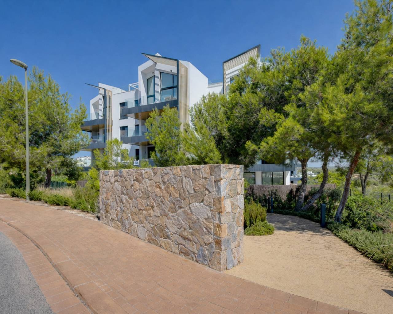 Este apartamento de dos dormitorios en planta baja, con orientación sureste, se encuentra en Las Colinas Golf Resort, uno de los complejos turísticos más prestigiosos de la Costa Blanca Sur, rodeado de un entorno tranquilo y cerca de la casa club, el club de raqueta, el gimnasio y los restaurantes de primera categoría. San Miguel de Salinas está a tan solo 10 minutos en coche, las playas de la costa y Villamartín a 15 minutos, y Orihuela Costa, junto con el centro comercial La Zenia Boulevard, a unos 20 minutos. Ubicado en un edificio de exquisito diseño, construido por una constructora de renombre, este impresionante apartamento de 88 m² disfruta de unas vistas tranquilas y despejadas, rodeadas de árboles. La propiedad ofrece un luminoso espacio diáfano, con un salón que cuenta con grandes puertas correderas acristaladas que dan al jardín. La moderna cocina blanca, totalmente equipada, también es diáfana, ofreciendo un amplio espacio para comer y otras grandes puertas correderas acristaladas que dan al exterior, creando una perfecta integración entre el interior y el exterior. Dispone de dos dormitorios dobles con armarios empotrados, incluyendo un dormitorio principal con vestidor y baño privado con ducha, además de un baño familiar adicional con ducha. El jardín de esquina de 30 m² está pavimentado con baldosas y césped artificial, ofreciendo un espacio exterior elegante y de bajo mantenimiento. Otras comodidades incluyen aire acondicionado centralizado, ascensor, plaza de aparcamiento subterráneo y trastero. Los residentes también pueden disfrutar de una preciosa piscina comunitaria rodeada de césped, que complementa a la perfección el entorno tranquilo y natural de este exclusivo complejo. Una magnífica oportunidad para adquirir una vivienda moderna y de alta calidad en una de las zonas más cotizadas de la Costa Blanca Sur.