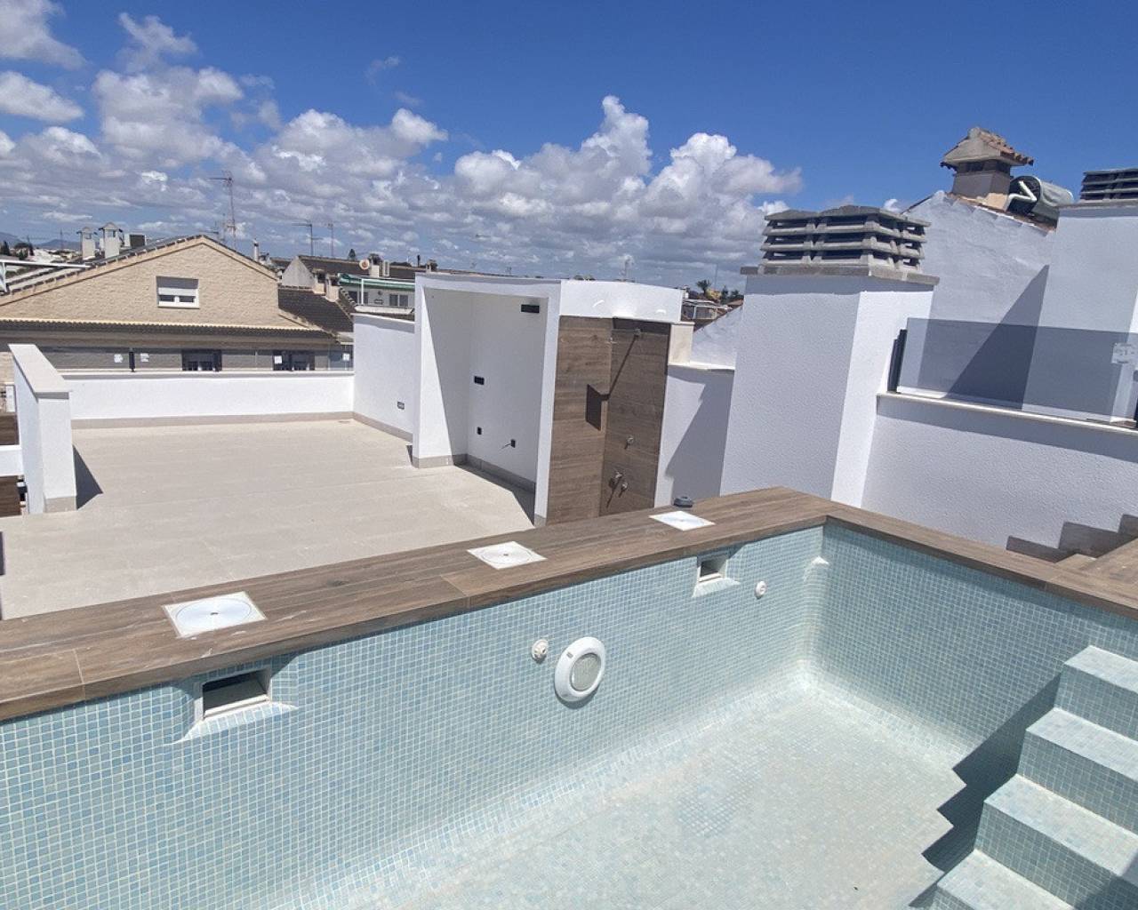 Bungalows de Nueva Construcción en San Pedro del Pinatar: Vida Moderna Cerca de la Playa Ubicación Prime en San Pedro del Pinatar Este nuevo proyecto en San Pedro del Pinatar, Murcia, se encuentra a solo unos minutos de la playa. Ofrece bungalows totalmente equipados con 2 dormitorios, amplias terrazas y jardines privados. El desarrollo está ubicado en una zona con todos los servicios necesarios, incluidos restaurantes, tiendas y supermercados. Los bungalows son luminosos y presentan un diseño de inspiración moderna. Situados junto a un parque y a solo 2 km de la playa, se encuentran en una de las mejores zonas residenciales de San Pedro del Pinatar. El complejo residencial consta de 12 bungalows con 2 dormitorios y 2 baños: 6 en planta baja y 6 en planta alta, cada uno con su solárium privado y piscina para disfrutar del espacio exterior con total lujo. Cada bungalow incluye salón-comedor, cocina, dos dormitorios y dos baños (uno en suite). Los bungalows de planta baja cuentan con jardines y un patio interior, mientras que los bungalows de planta alta están conectados a grandes soláriums con piscina privada, accesibles mediante escaleras privadas. Los soláriums de la planta superior son amplios y están diseñados para la vida al aire libre. Incluyen piscina privada, ducha exterior, zona de comedor, preinstalación para cocina exterior y zona de solárium. Los bungalows de planta baja tienen grandes terrazas para disfrutar del maravilloso clima de la zona, con opción de añadir piscina privada (extra opcional). San Pedro del Pinatar es una de las ciudades más importantes de la costa mediterránea. Situada entre el Mar Menor y el Mar Mediterráneo, es conocida por su gastronomía basada en la tradición pesquera, el barro terapéutico de las salinas y sus hermosos bancos de arena. Es un lugar ideal para vivir todo el año o disfrutar de unas vacaciones inolvidables en la costa.