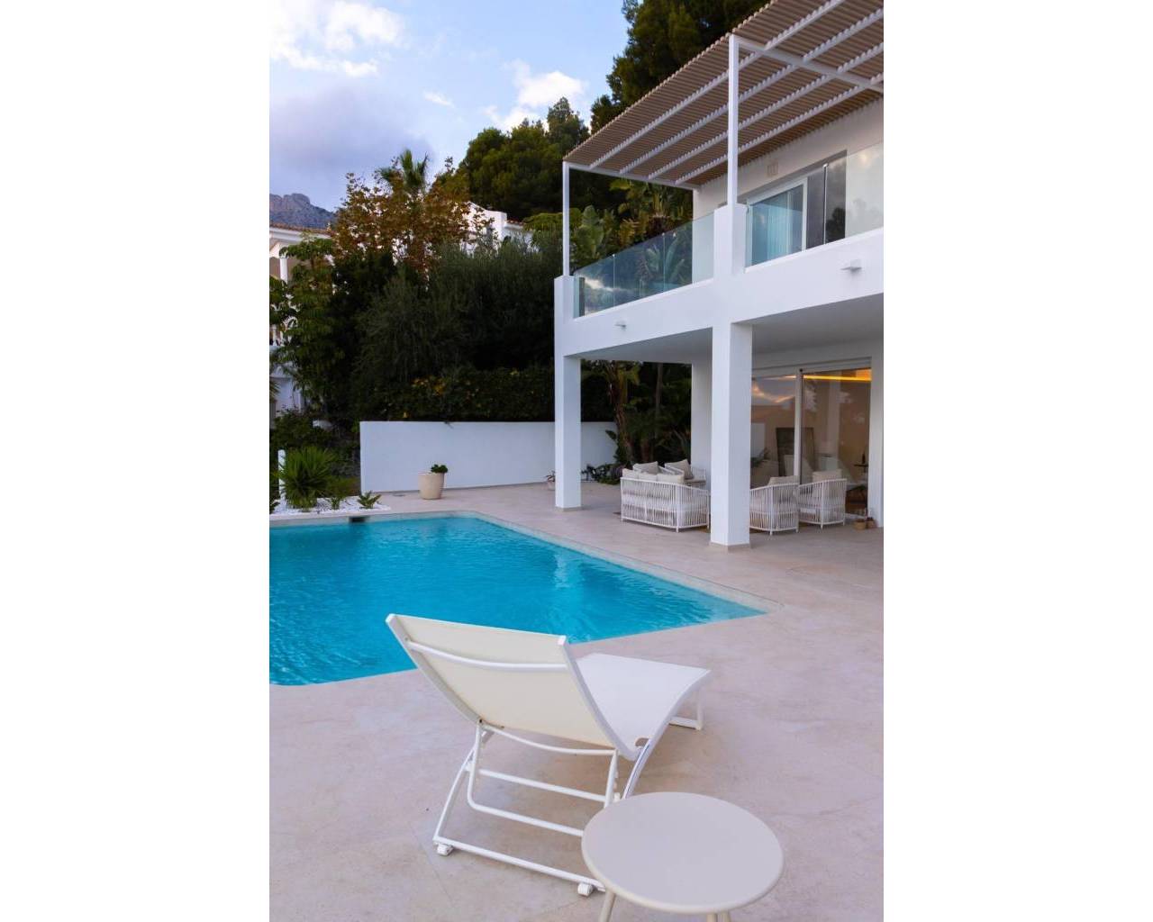 Diseñada en estilo mediterráneo contemporáneo, esta vivienda destaca por sus líneas limpias, su luminosidad y unas espectaculares vistas abiertas al mar.???? Distribución???? Planta principal• Salón-comedor amplio y luminoso• Cocina totalmente equipada• 1 baño de cortesía• Salida directa a terraza y piscina???? Planta superior• 3 dormitorios con vistas al mar• 1 dormitorio principal en suite con terraza• 1 dormitorio con baño propio y balcón• 1 dormitorio con acceso a terraza• 1 baño completo adicional???? Exterior y parcela• Piscina privada (7,5 x 3,5 m)• Amplias terrazas• Zona de barbacoa cubierta• Jardín con palmeras, árboles frutales y riego automático• Parking privado con pérgola• Parcela vallada con acceso automático✨ Calidades y acabados• Suelos porcelánicos de gran formato• Terrazas con pavimento antideslizante• Fachada en acabado blanco mediterráneo• Carpintería exterior de aluminio con doble acristalamiento• Persianas eléctricas en dormitorios• Puerta de entrada blindada• Armarios empotrados????️ Cocina equipada• Mobiliario de alta calidad (marca DICA o similar)• Electrodomésticos integrados (marca AEG o similar):• Placa de cocción• Horno• Microondas• Lavavajillas• Frigorífico integrado???? Baños• 3 baños completos + 1 aseo• Sanitarios suspendidos (Villeroy & Boch)• Platos de ducha antideslizantes con mampara• Muebles de baño con lavabo de porcelana• Espejos retroiluminados❄️ Confort y eficiencia• Sistema de aerotermia• Aire acondicionado frío/calor por conductos• Suelo radiante en toda la vivienda• Iluminación LED interior y exterior• Preinstalación para placas solares???? Ubicación privilegiada• Entre mar y montaña• Vistas panorámicas al mar• Entorno natural exclusivo• Excelente orientación y luminosidad✨ Una vivienda única que combina diseño, confort y entorno natural en una de las zonas más exclusivas de la Costa Blanca