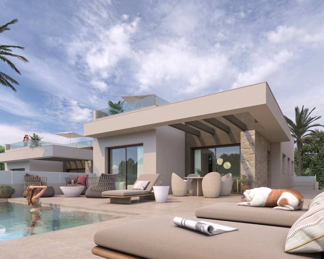 Experimente la combinación perfecta de diseño moderno y vida funcional en el nuevo residencial de villas. Esta colección de residencias contemporáneas ofrece un estilo de vida sofisticado adaptado a quienes buscan confort y elegancia en una comunidad cuidadosamente planificada. Cada vivienda está distribuida de manera inteligente en varios niveles para maximizar el espacio y la luz natural. La planta principal actúa como el corazón del hogar, con una amplia zona de concepto abierto que integra perfectamente la cocina, el comedor y la sala de estar—perfecta tanto para el descanso diario como para recibir invitados. Grandes ventanales y acceso directo a una terraza privada crean una conexión fluida entre el interior y el exterior. Las zonas privadas están diseñadas como espacios de tranquilidad, con amplios dormitorios y baños bien equipados. Para una mayor versatilidad, las propiedades incluyen un amplio nivel de sótano que ofrece un garaje seguro y estancias adicionales multifuncionales, ideales para oficina en casa, gimnasio o sala de ocio. El elemento más destacado de estas viviendas es el espectacular solárium en la azotea. Este espacio privado ofrece un área dedicada para comer al aire libre y relajarse, permitiendo disfrutar del clima mediterráneo con total privacidad. Rodeado de jardines cuidadosamente diseñados y con una refrescante piscina privada.