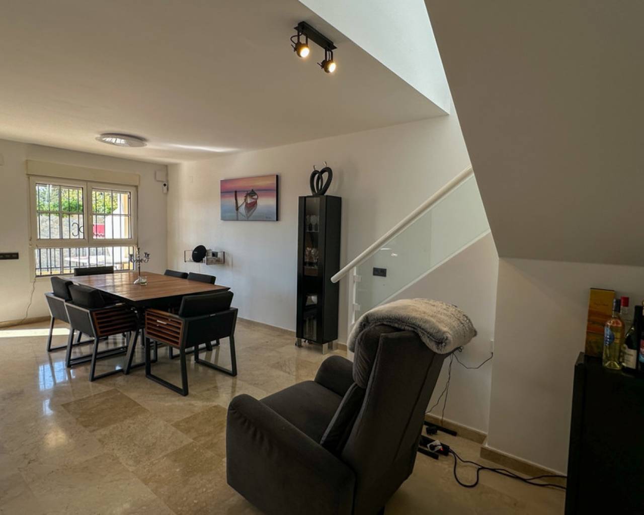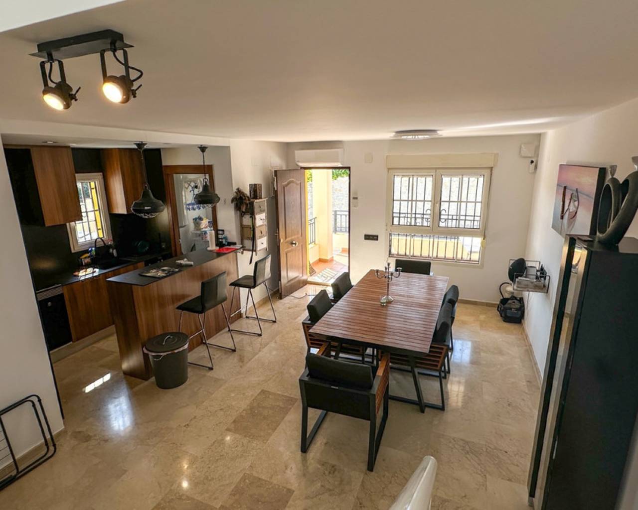 Ubicado en el corazón de Villamartín, este precioso adosado recientemente reformado ofrece una ubicación inmejorable a solo 2 minutos a pie de la animada plaza y del prestigioso campo de golf. La propiedad cuenta con 3 amplios dormitorios y 2 modernos baños, todos acabados con un alto nivel tras su reciente renovación. Luminoso y espacioso, el hogar disfruta de impresionantes vistas al campo de golf y al mar Mediterráneo, creando un entorno verdaderamente relajante. En el exterior, dispone de aparcamiento privado fuera de la carretera y un garaje. También cuenta con un amplio sótano (underbuild) que ofrece 2 dormitorios adicionales, ideal para invitados, familia o incluso como oficina o zona de ocio. Los residentes tienen acceso a una piscina comunitaria bien cuidada, perfecta para disfrutar del sol durante todo el año.