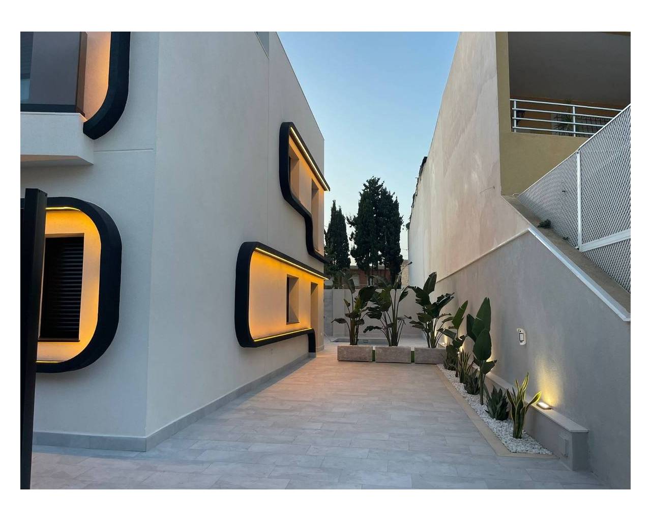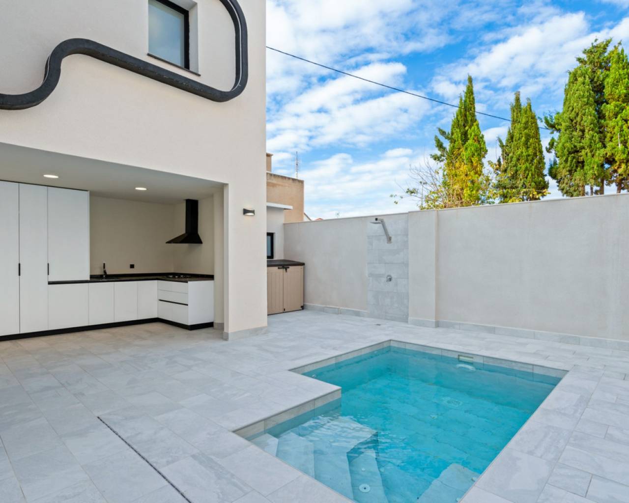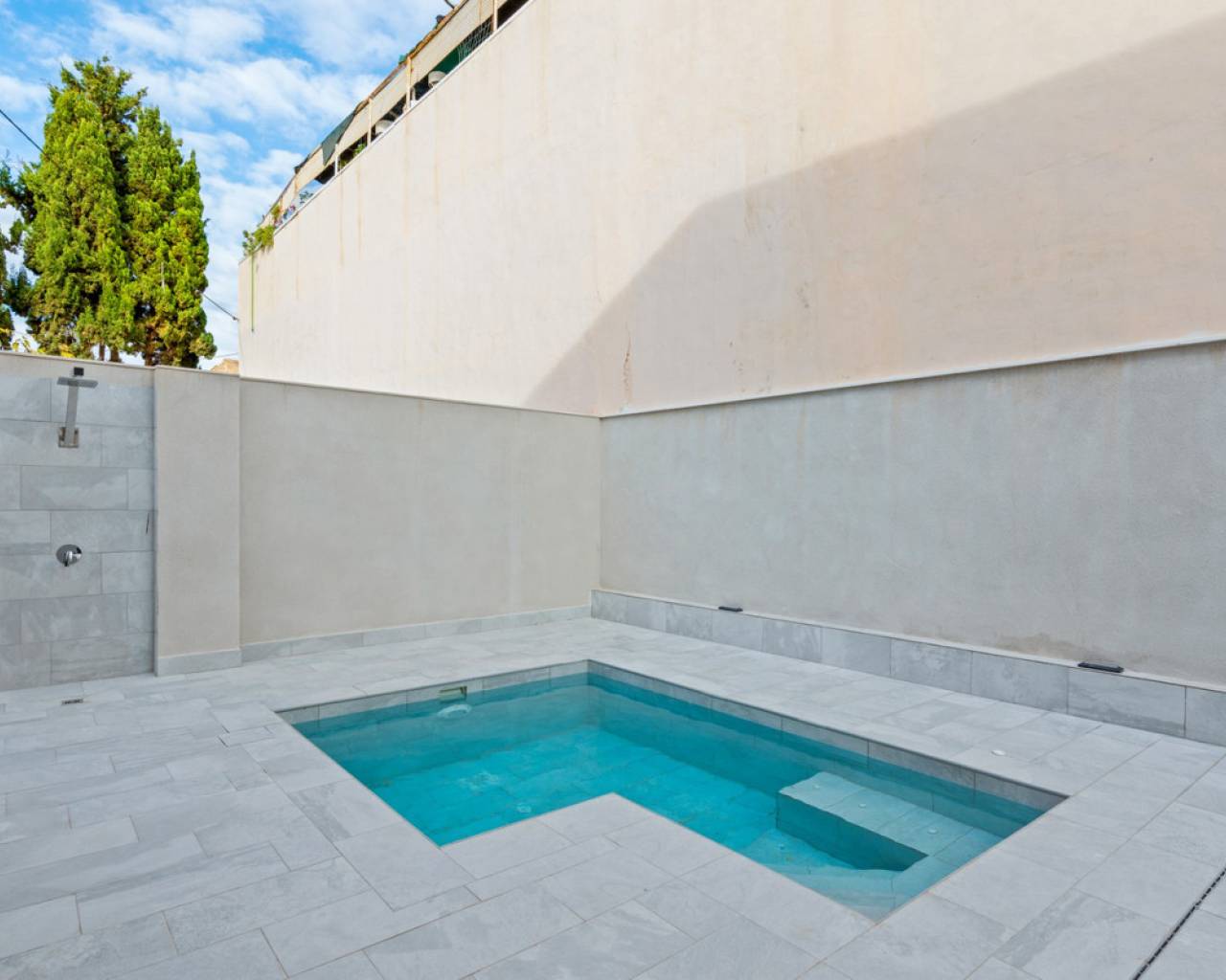 Esta villa adosada reformada de cuatro dormitorios y orientación este en Torre de la Horadada se encuentra a tan solo 3 minutos a pie de la playa, a una calle del paseo marítimo que lleva al puerto deportivo y a una extensa franja de costa arenosa. Torre de la Horadada es un típico pueblo costero español que ofrece una gran variedad de restaurantes y cafeterías, mientras que Pilar de la Horadada está a solo un par de minutos en coche. Orihuela Costa, el centro comercial La Zenia Boulevard y varios campos de golf se encuentran a unos 15 minutos. Recientemente reformada con un alto nivel de calidad y un diseño único y elegante, esta impresionante villa de 121 m² se distribuye en dos plantas y disfruta de vistas al mar. La propiedad ofrece un luminoso espacio diáfano que se integra a la perfección con el exterior, junto con una moderna cocina totalmente equipada. Un recibidor conduce a la escalera que lleva a la primera planta, mientras que la planta baja también cuenta con un dormitorio doble con puertas correderas acristaladas que dan al jardín y un moderno cuarto de baño con ducha. En la primera planta, hay tres dormitorios dobles más, incluyendo un espacioso dormitorio principal con vestidor y baño privado con ducha y lavabo doble. El cuarto dormitorio cuenta con su propia terraza privada, y también hay un moderno baño familiar con ducha. El solárium privado de 45 m² está cubierto de césped artificial e incluye una zona de ladrillo con fregadero, ideal para disfrutar al aire libre. El jardín está embaldosado y parcialmente cubierto de césped artificial, y ofrece aparcamiento, piscina privada, ducha exterior y una amplia cocina/zona de trabajo cubierta. Otros extras incluyen aire acondicionado centralizado, sistema de riego y trastero. Una villa excepcional, totalmente renovada, en una ubicación costera privilegiada, perfecta para disfrutar de la vida mediterránea moderna en la Costa Blanca Sur.
