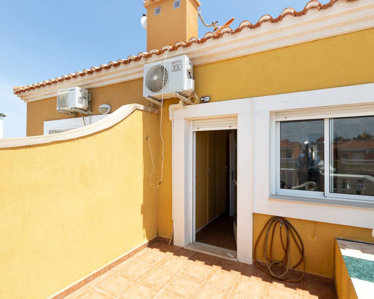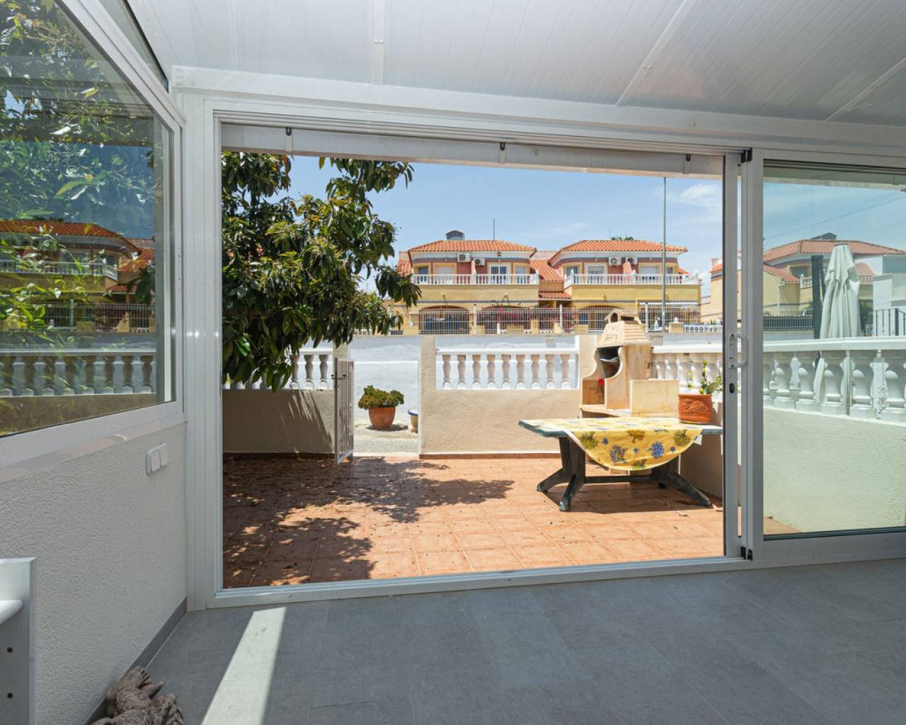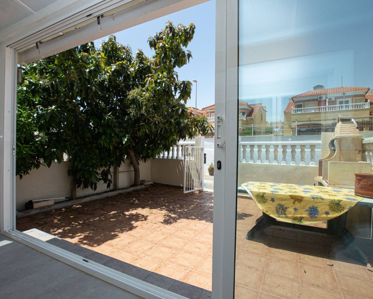 Les presentamos esta encantadora vivienda ubicada en el centro de La Zenia, ideal tanto para familias como para alquileres. Se trata de una casa adosada con un total de 3 dormitorios, lo cual la convierte en un espacio perfecto para albergar a toda la familia. La casa cuenta con un diseño bien distribuido y funcional. En la planta baja, encontrarás un acogedor salón-comedor, perfecto para relajarte o compartir momentos especiales con tus seres queridos. Además, posee una cocina abierta, que te permitirá disfrutar de una sensación de amplitud y conexión mientras preparas deliciosas comidas. También encontrarás un aseo en esta planta, lo cual brinda comodidad y practicidad adicional. En la planta superior, podrás descubrir dos baños con ducha, uno en cada planta, lo que asegura la comodidad y privacidad de todos los residentes. El dormitorio principal se destaca por tener una terraza privada, donde podrás disfrutar de agradables momentos al aire libre y deleitarte con las vistas del entorno. Además, la vivienda cuenta con una terraza acristalada, que podrás utilizar durante todo el año sin importar las condiciones climáticas. El jardín delantero y lateral brinda un espacio al aire libre adicional, perfecto para disfrutar de momentos al aire libre, organizar reuniones familiares o simplemente relajarte en un entorno tranquilo. También se incluye un trastero, que te brinda espacio extra para almacenar tus pertenencias. Esta encantadora vivienda viene completamente amueblada, lo que significa que no tendrás que preocuparte por invertir en muebles adicionales. Además, se incluyen electrodomésticos, lo que facilita la vida cotidiana y te permite comenzar a disfrutar de tu nuevo hogar de inmediato. Su ubicación es realmente excelente, ya que se encuentra en el centro de La Zenia. A solo 900 metros de distancia, tendrás la playa de La Zenia, donde podrás disfrutar del sol y el mar en cualquier momento que desees. Además, el popular centro comercial La Zenia Boulevard se encuentra a solo 5 minutos a pie, brindándote acceso a una amplia gama de tiendas, restaurantes y opciones de entretenimiento. No pierdas la oportunidad de visitar esta maravillosa vivienda. ¡Contáctanos hoy mismo para programar una cita y descubrir todo lo que esta casa tiene para ofrecerte!