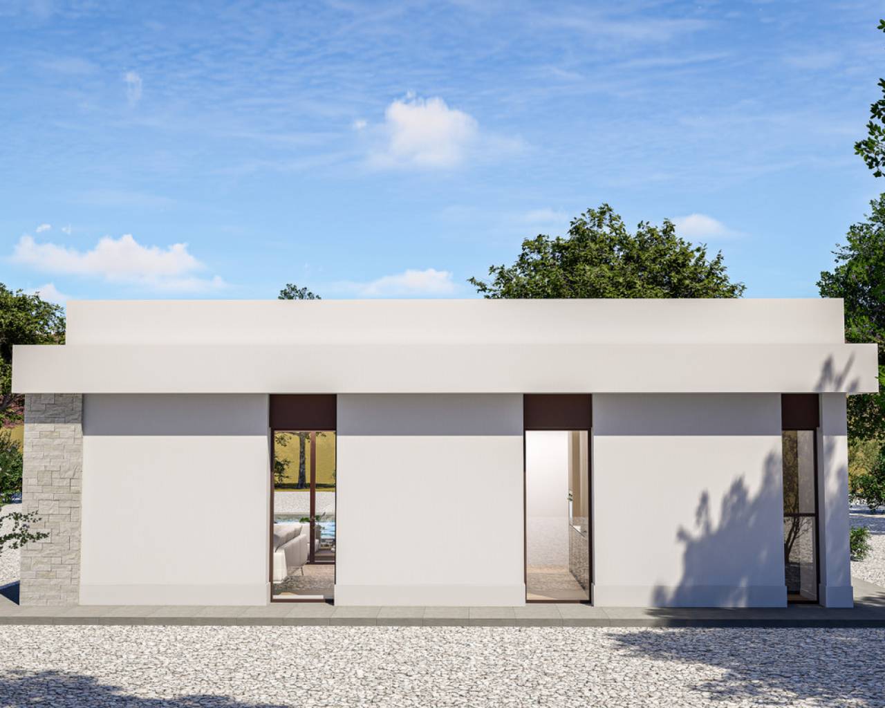 Experimente lo más alto del estilo de vida mediterráneo con esta exclusiva finca contemporánea ubicada en el corazón de Aspe. Perfectamente situada en una amplia parcela rústica, esta vivienda ofrece impresionantes y únicas vistas que se extienden hasta el mar en la distancia. Diseñada para quienes valoran tanto la privacidad como la accesibilidad, la propiedad ofrece un refugio sereno a pocos minutos en coche del centro del pueblo y con fácil acceso a la costa bañada por el sol. La residencia en sí es una obra maestra del diseño moderno, con una distribución cuidadosamente diseñada que integra a la perfección los espacios interiores y exteriores. Un amplio porche invita a disfrutar del clima templado, mientras que la piscina privada y la ducha exterior actúan como el centro de relajación durante el verano. Los terrenos que rodean la propiedad están cuidadosamente acabados con elegante grava blanca y vallado seguro, accesibles a través de una puerta corredera motorizada que garantiza comodidad y tranquilidad. En el interior, la vivienda está equipada con acabados de alta calidad y prestaciones de gama alta. La cocina se entrega completamente equipada con mobiliario moderno y electrodomésticos, integrándose de forma natural con los espacios de vida definidos por el confort y la sofisticación. El control climático moderno y las persianas motorizadas permiten ajustar el ambiente a medida, complementados por un sistema dedicado de purificación de agua que garantiza agua potable de máxima calidad en toda la vivienda. La sostenibilidad es un elemento clave en la infraestructura de esta propiedad. Un sofisticado sistema energético que utiliza numerosos paneles solares y almacenamiento en baterías de alta capacidad garantiza una eficiencia energética excepcional. Este sistema está perfectamente integrado en un amplio carport que ofrece generoso aparcamiento cubierto, convirtiendo esta villa en un refugio innovador que combina lujo, naturaleza e innovación tecnológica. *Nota: Desde la reserva hasta la entrega de llaves el proceso dura aproximadamente entre 12 y 14 meses.