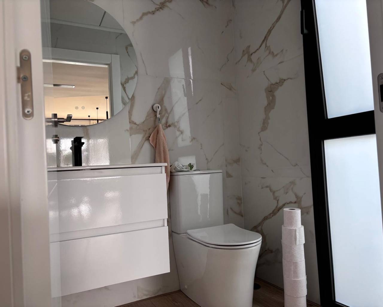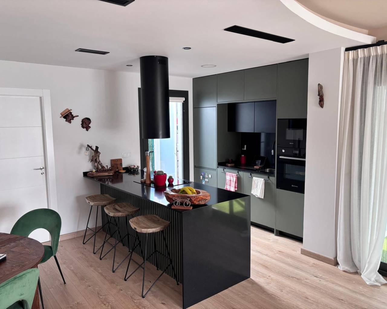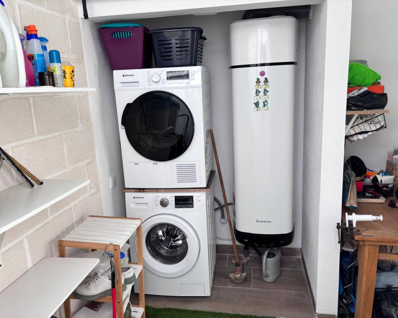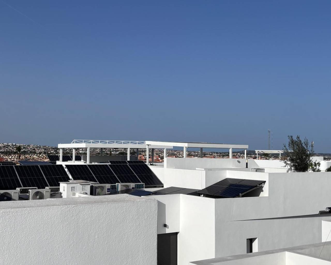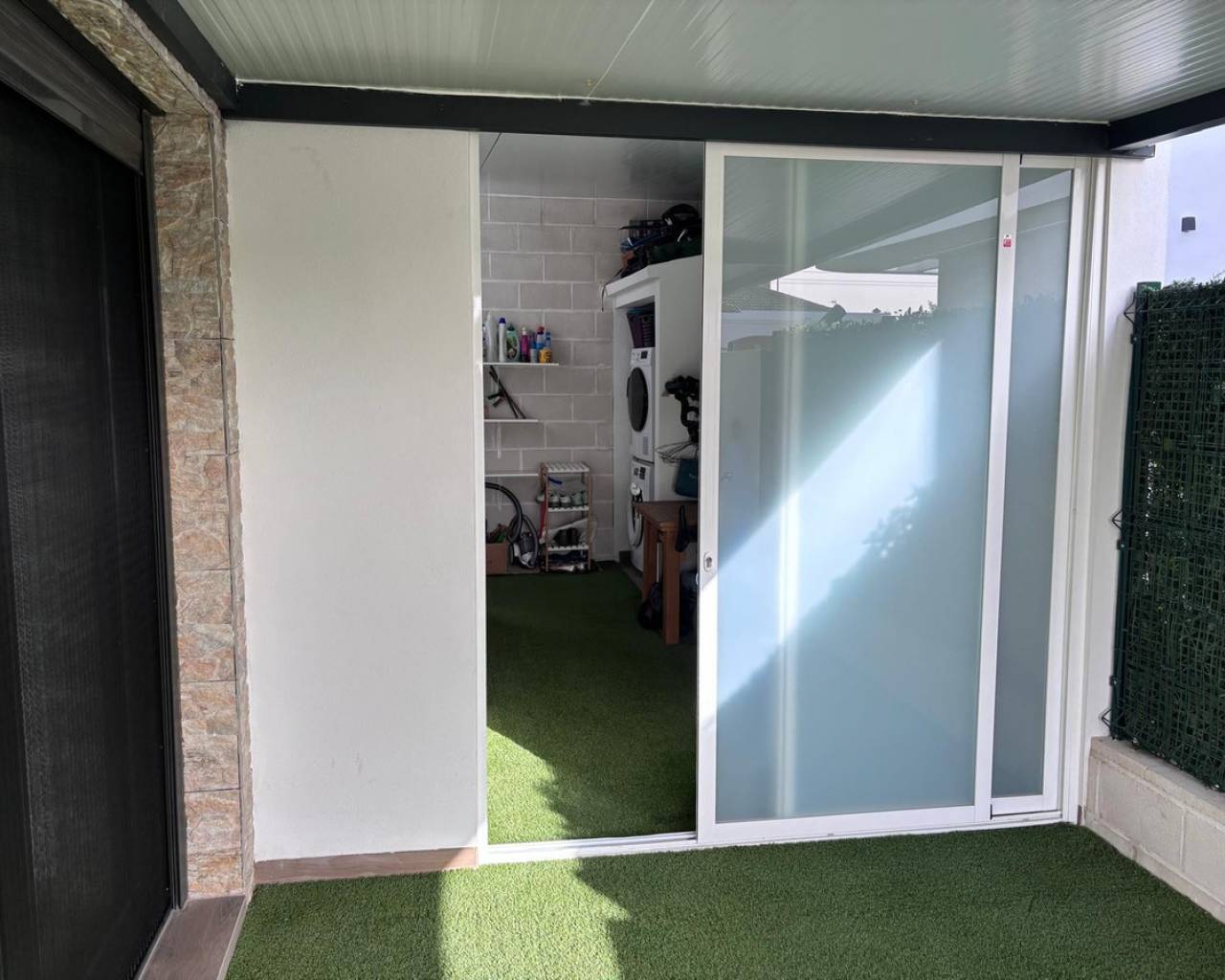 Adéntrese en esta encantadora villa cuádruple con orientación suroeste, donde la comodidad, la luminosidad y la vida práctica se combinan en perfecta armonía. Con dos dormitorios de buen tamaño, dos baños y un aseo adicional para invitados, esta casa ha sido cuidadosamente diseñada para ser ideal tanto para residencia permanente como para escapadas vacacionales relajantes. En el corazón de la propiedad, un amplio y luminoso salón invita a la relajación, con una fluida conexión con la cocina de planta abierta, totalmente equipada con electrodomésticos, creando un espacio sociable y acogedor, ideal para recibir a familiares y amigos. Los grandes ventanales permiten la entrada de luz natural durante todo el día, realzando el ambiente cálido y acogedor. En el exterior, la villa sigue impresionando. La parcela privada cuenta con un cómodo aparcamiento exterior con cochera, además de un práctico trastero y un cuarto de servicio/lavadero independiente, garantizando funcionalidad sin renunciar al estilo. El espacio exterior ofrece un excelente potencial, con amplio espacio para construir su propia piscina privada, perfecta para disfrutar al máximo del clima soleado. Se ha tenido en cuenta la comodidad, con mosquiteras en todas las ventanas y puertas de la terraza, así como persianas eléctricas que aportan un toque moderno y practicidad diaria. Esta casa, que se vende parcialmente amueblada, ofrece una fantástica oportunidad para entrar a vivir de inmediato, dejando espacio para personalizarla a su gusto. Tanto si busca una residencia permanente, una casa de vacaciones o una inversión, esta encantadora villa lo tiene todo.