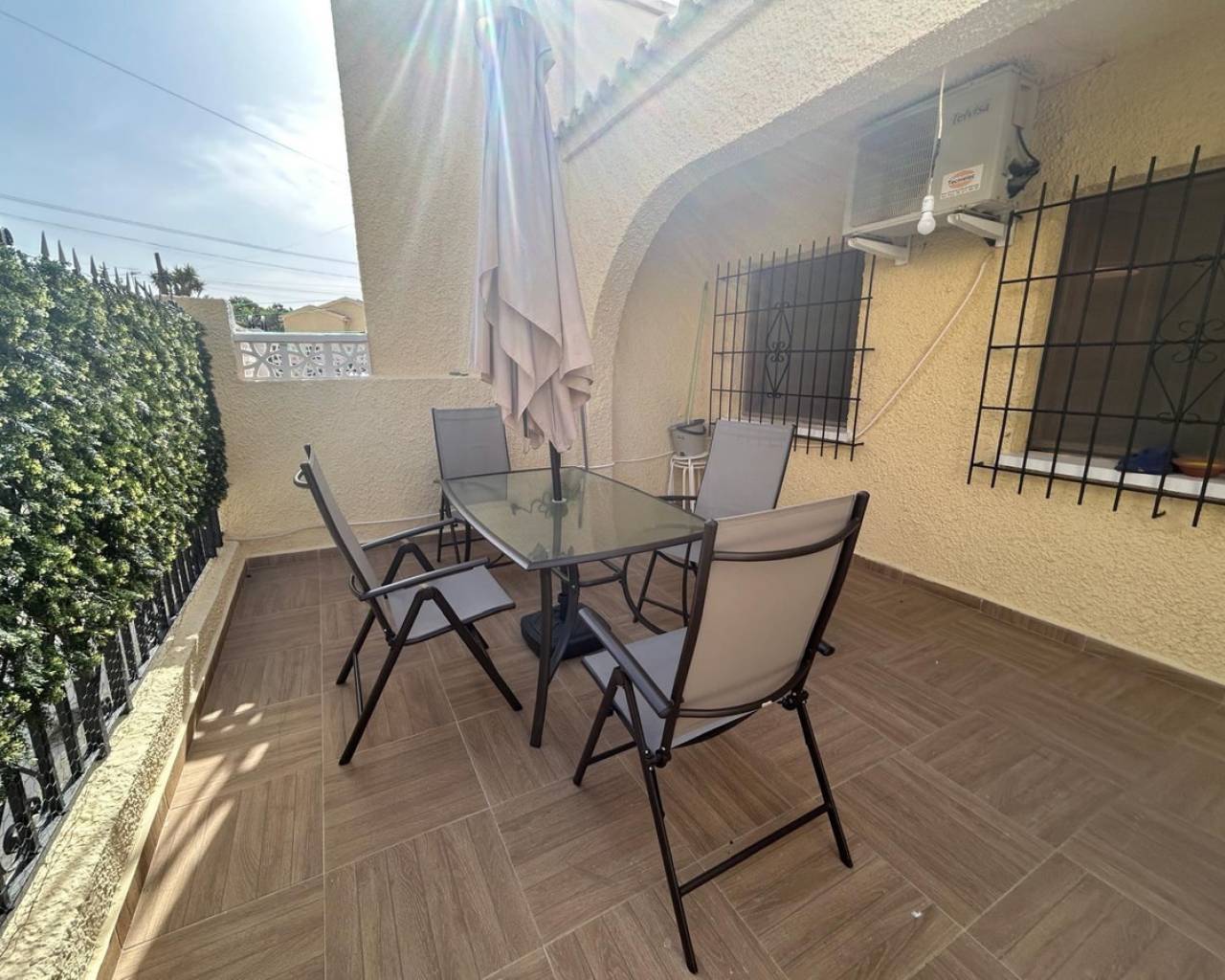 Encantadora casa adosada en planta baja con terraza y potencial de desarrollo. En una zona tranquila y agradable, encontrará esta acogedora casa adosada de una sola planta, ideal para quienes buscan una vivienda de fácil mantenimiento, asequible y con muchas posibilidades. Con una superficie construida de aproximadamente 40 m² y una superficie habitable de aproximadamente 30 m², la casa ofrece todo lo necesario para una vida cotidiana cómoda, con la posibilidad de ampliarla y crear más espacio según sus preferencias. La vivienda consta de un dormitorio acogedor y un baño moderno, y gracias a su distribución bien pensada, resulta práctica y confortable a la vez. Además, cuenta con aire acondicionado para garantizar un clima interior agradable durante todo el año. Frente a la casa, le espera una agradable terraza orientada al norte: el lugar perfecto para disfrutar del café matutino a la sombra, relajarse durante los meses más cálidos o pasar una velada con amigos en un clima agradable. Gracias a su ubicación, evitará las horas de más calor y disfrutará de un hogar sumamente confortable incluso en pleno verano. Una de las mayores ventajas de la vivienda es la posibilidad de construir una segunda planta. Se trata de una oportunidad única para crear más espacio habitable, añadir dormitorios adicionales o quizás un solárium privado: una inversión que mejora tanto la calidad de vida como el valor futuro de la propiedad. Esta pequeña casa adosada es una solución encantadora e inteligente para quienes buscan un alojamiento sencillo con gran potencial, en una zona donde se puede disfrutar de la vida durante todo el año. Perfecta como casa de vacaciones, primera vivienda o como proyecto de reforma para adaptarla a sus necesidades. Póngase en contacto con nosotros para obtener más información o para concertar una visita. Si no puede asistir en persona, también realizaremos visitas virtuales.