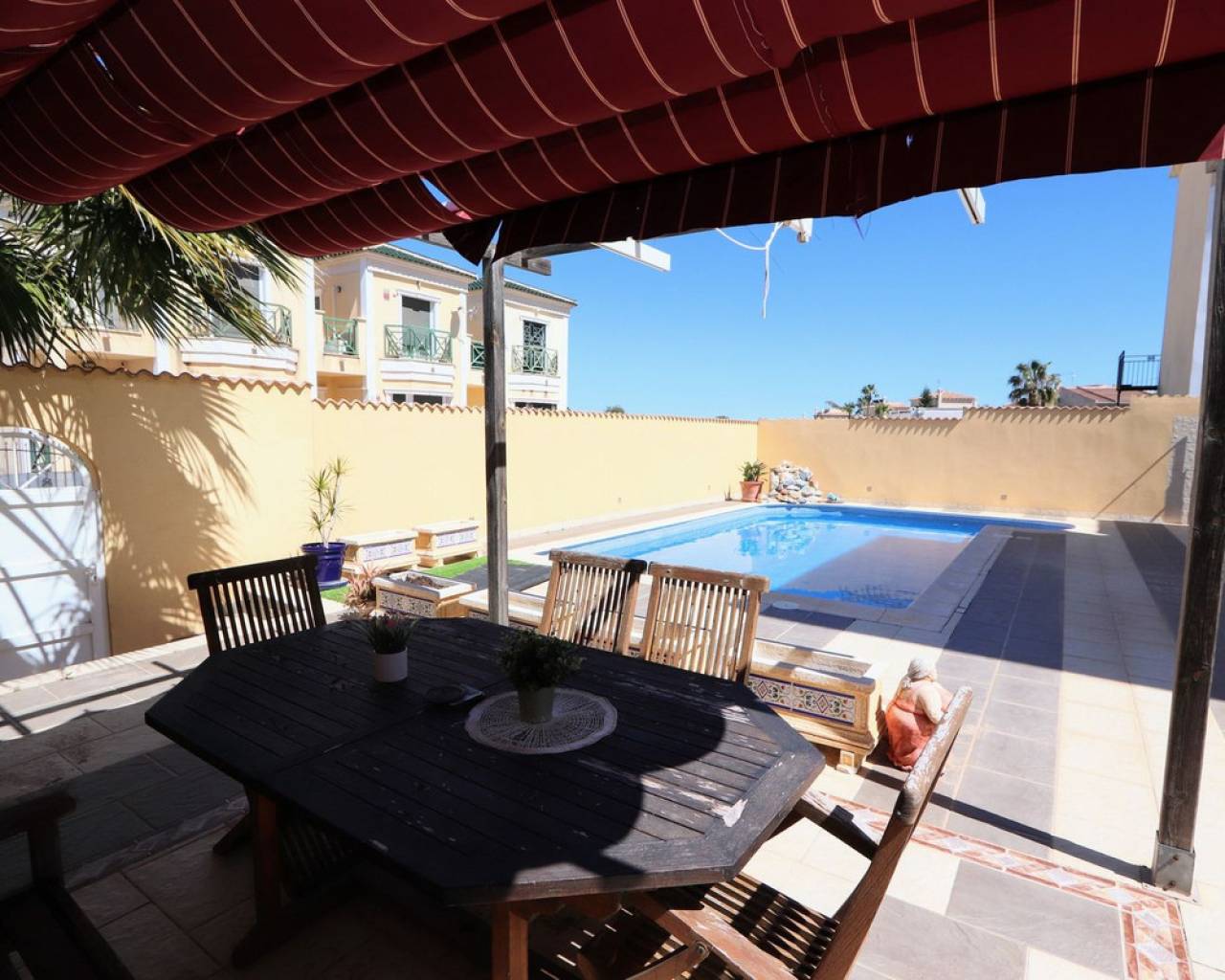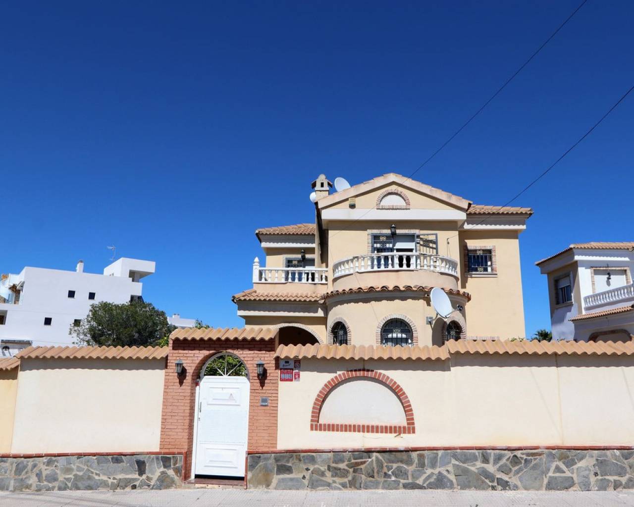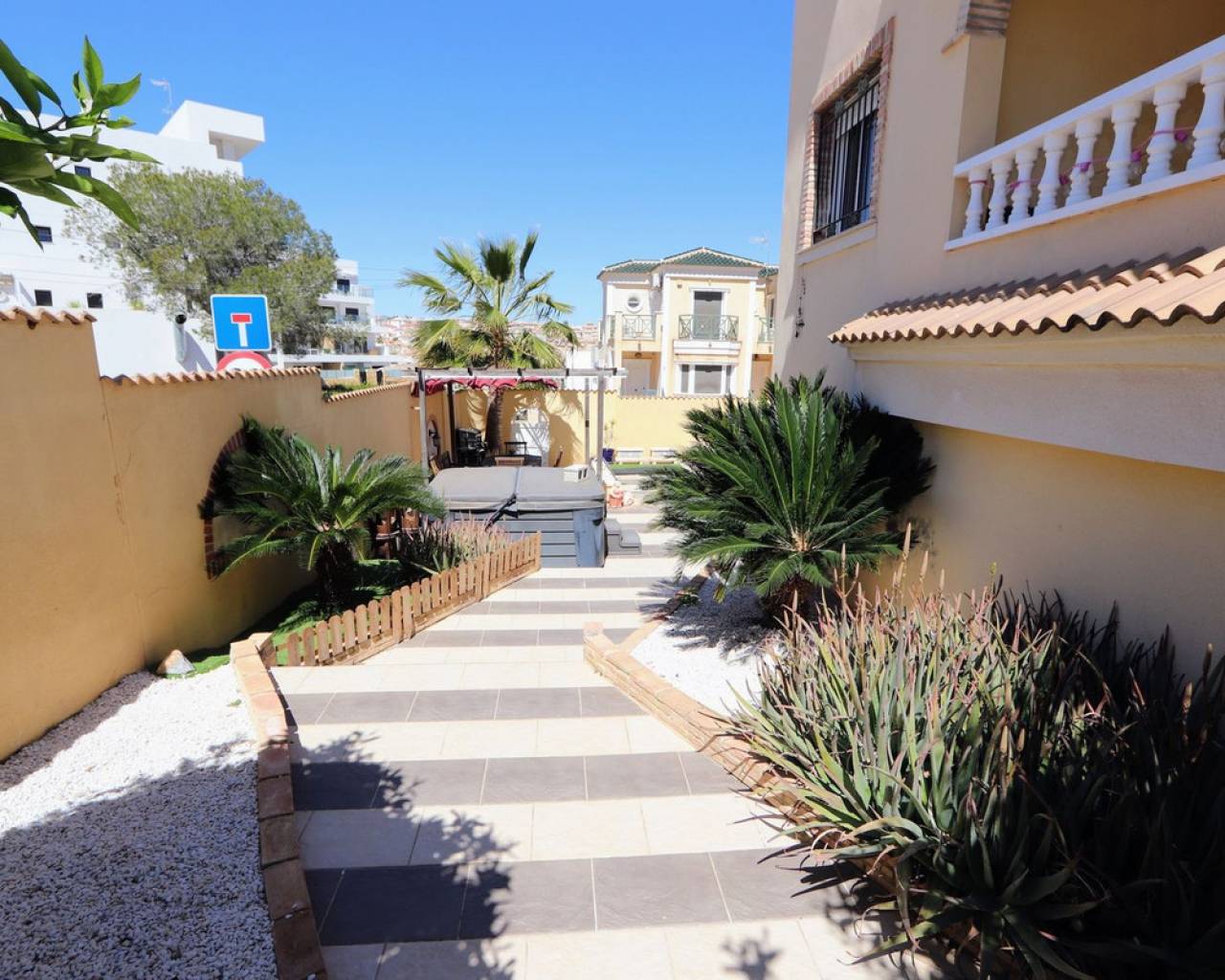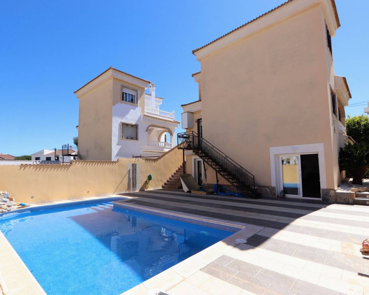 Esta impresionante villa independiente de 3 dormitorios se encuentra en una zona tranquila de Las Filipinas, Villamartín. La propiedad consta de 3 dormitorios, 2 de ellos con terraza privada, 2 baños, salón-comedor y cocina totalmente equipada. Dispone de aire acondicionado, soleadas terrazas que rodean la propiedad, jardín, sótano y piscina y jacuzzi privados. Se vende amueblada. Las Filipinas es una de las zonas más bonitas de Orihuela Costa, muy cerca de Playa Flamenca, La Zenia, Cabo Roig, Campoamor, Villamartín, Los Dolses, Punta Prima y La Regia. Además, se encuentra a pocos minutos del Centro Comercial La Zenia Boulevard, que cuenta con 150 locales comerciales en una superficie de 160.000 m² y 5.000 plazas de aparcamiento gratuitas para sus visitantes. Todo ello lo convierte en el mayor centro comercial de toda la provincia de Alicante. Asimismo, en el Boulevard se celebran eventos para toda la familia (conciertos, actividades infantiles, etc.). Los puertos deportivos y marinas de Las Filipinas organizan diversas actividades náuticas y cuentan con varias escuelas de vela. Hay cinco campos de golf en Las Filipinas que satisfacen las necesidades de los jugadores más experimentados y ofrecen la oportunidad de disfrutar de condiciones de nivel profesional. Las Filipinas cuenta con diversas rutas turísticas y paseos marítimos que ofrecen belleza natural, paisajes espectaculares y un entorno perfecto para toda la familia. Además, existen 6 km de carriles bici que permiten un recorrido tranquilo desde Dehesa de Campoamor, Cabo Roig y La Zenia. También hay una red de carriles bici que conecta las playas y paseos marítimos de Orihuela Costa.