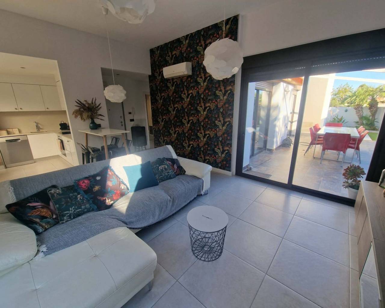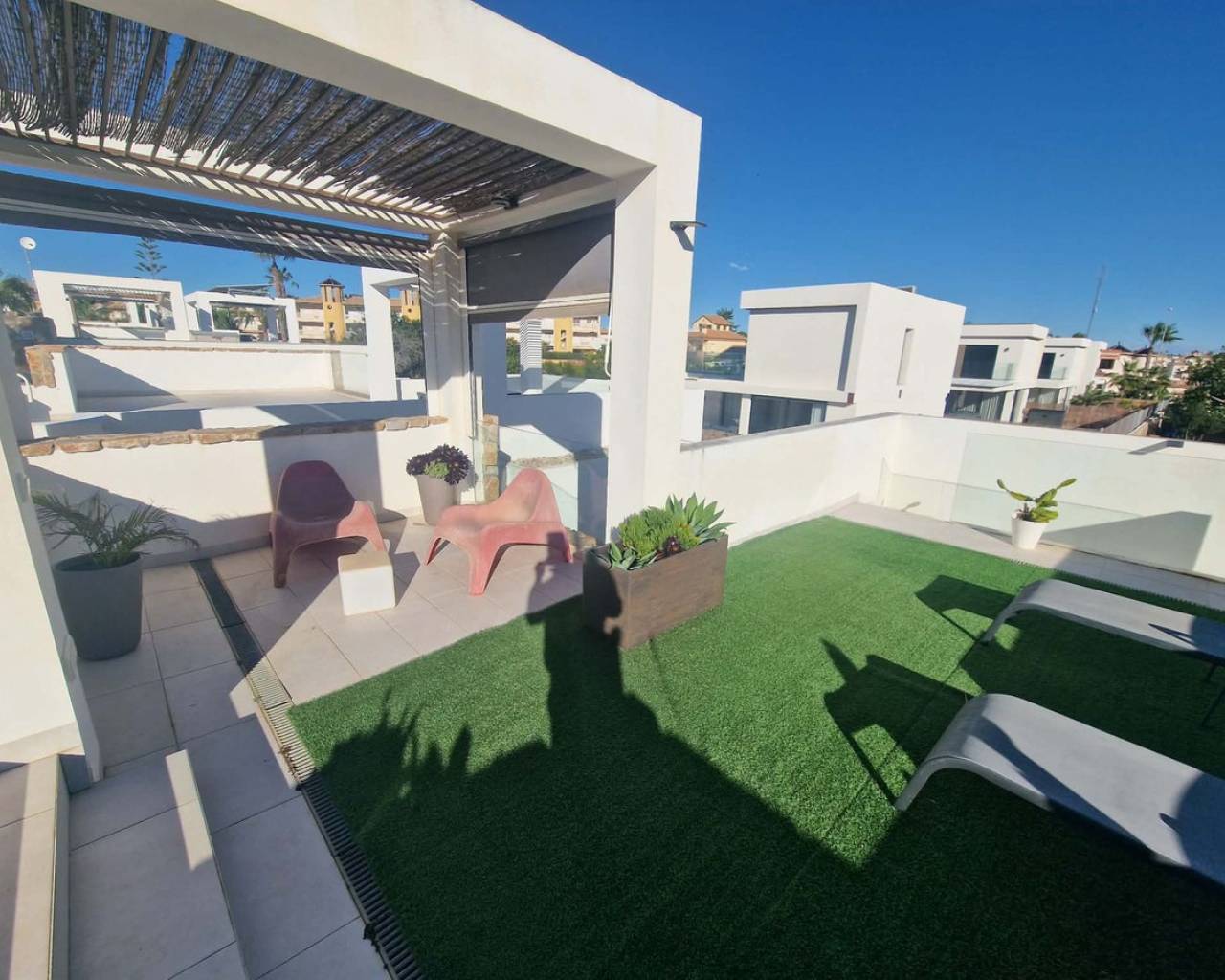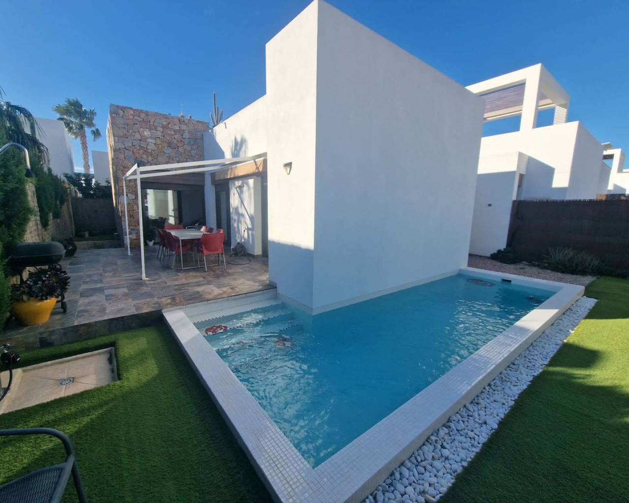 Bienvenidos a Orihuela Costa. Les presentamos una villa llena de encanto que se vende como nueva. 2 dormitorios, 2 baños, cocina abierta, comedor luminoso, salón con acceso directo al jardín con piscina privada. Solárium privado con sol durante todo el día. Aire acondicionado reversible en todas las habitaciones. Estufa de pellets. Se vende amueblada. Alarma. Pintada hace 2 meses. Plaza de aparcamiento delante de la casa. El barrio de Lomas de Cabo Roig es una zona tranquila, a solo 2,5 km del paseo marítimo y de las playas. Bares y restaurantes a 400 metros. Minigolf en el barrio. A 5 minutos en coche de los mejores campos de golf de la región. A 60 km de los aeropuertos de Murcia y Alicante. Traducción realizada con la versión gratuita del traductor DeepL.com