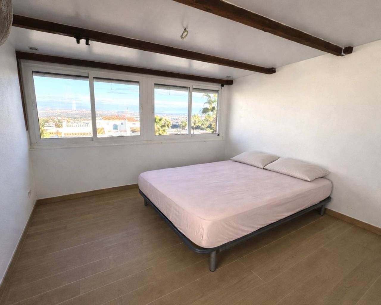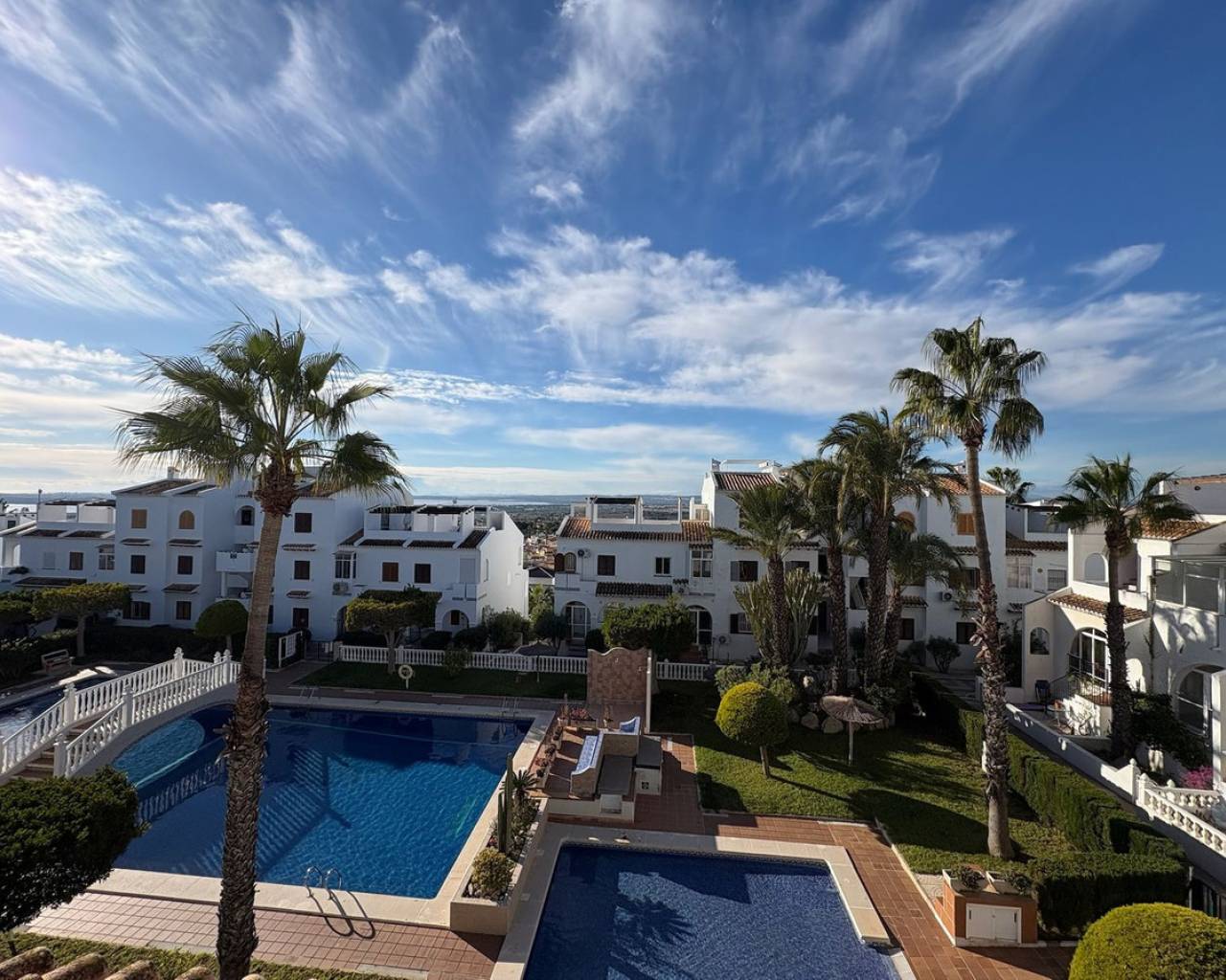 Vivienda en la exclusiva urbanización Bravo Hills Club Una oportunidad única de adquirir una vivienda en una de las urbanizaciones más demandadas de Ciudad Quesada – Bravo Hills Club. El complejo está situado en la parte más alta de la colina, lo que ofrece amplias vistas abiertas que alcanzan el mar, dos lagunas y las montañas circundantes. Bravo Hills Club es una urbanización cerrada, tranquila y bien mantenida, sin la alta rotación de turistas típica de las zonas más cercanas a la costa. Esto la convierte en una excelente opción tanto para vivir todo el año como para disfrutarla como segunda residencia. Dentro de la urbanización encontrará una zona de aparcamiento privado (acceso con puerta automática), jardines cuidados, una gran piscina comunitaria junto con una piscina infantil independiente, así como una fuente y zonas de descanso. La urbanización se encuentra actualmente en proceso de renovación completa de fachadas. La vivienda ofrecida ya ha sido pintada, por lo que el nuevo propietario no tendrá que asumir costes adicionales relacionados con ello. La propiedad La vivienda dispone de dos entradas independientes: una desde la calle a través de un jardín privado y vallado, y otra desde la zona comunitaria y la piscina. Su doble orientación (noreste y suroeste) garantiza una excelente iluminación natural durante todo el día, así como una muy buena ventilación cruzada. Incluso en los periodos más calurosos, es posible vivir cómodamente sin necesidad de aire acondicionado, aunque la vivienda dispone de aire acondicionado con función de calefacción. Los grandes ventanales han sido sustituidos por carpintería moderna, silenciosa y eficiente energéticamente, con persianas, lo que mejora significativamente el confort. Distribución Planta baja: salón, cocina, aseo, dos terrazas, jardín Primera planta: dos dormitorios (uno con vistas al mar), baño con bañera, vestidor, terraza Solárium: parcialmente cerrado, con una estancia acristalada adicional que puede utilizarse como dormitorio o despacho, con vistas a Alicante y a las montañas cercanas Las tres terrazas tienen potencial para ser cerradas, lo que permite ampliar el espacio habitable. Estado y equipamiento La vivienda se vende completamente amueblada, con aproximadamente la mitad del mobiliario prácticamente nuevo. Algunos electrodomésticos también han sido sustituidos recientemente, incluyendo el frigorífico. La casa está lista para entrar a vivir, aunque los baños requieren modernización, lo que ofrece la posibilidad de adaptarlos a las preferencias del nuevo propietario. Ubicación Tiendas, restaurantes y servicio de alquiler de coches se encuentran a aproximadamente 10 minutos a pie. Playa de Guardamar del Segura – aproximadamente 15 minutos en coche Aeropuerto de Alicante – aproximadamente 35 minutos en coche La zona tiene un carácter internacional, lo que permite una vida diaria cómoda incluso sin conocimientos de español.