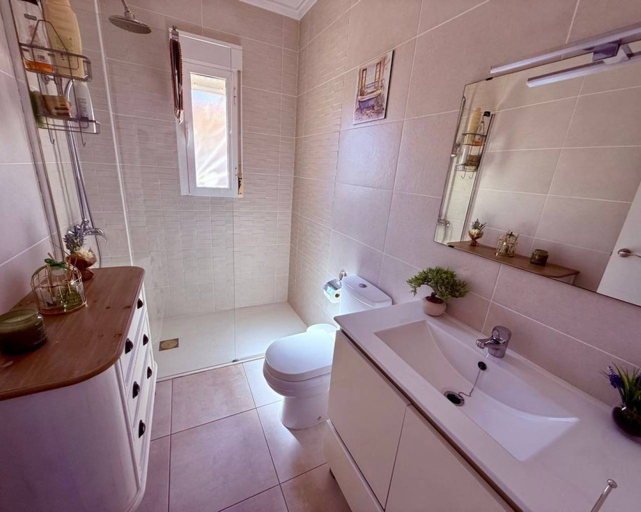 Esta preciosa villa independiente, completamente reformada en 2023, se encuentra en Ciudad Quesada, Rojales, en la codiciada Costa Blanca South, y ofrece un estilo de vida cómodo y elegante en excelentes condiciones. Ubicada en una parcela de 135 m² con 88 m² construidos, la vivienda tiene orientación este, disfrutando del sol de la mañana en la terraza delantera, que además cuenta con toldo para mayor sombra y privacidad. La terraza de la planta baja también es muy privada, creando un espacio exterior tranquilo y acogedor. La planta baja dispone de una cocina independiente totalmente equipada con electrodomésticos, incluyendo lavavajillas, lavadora, frigorífico-congelador, horno y vitrocerámica. La propiedad se vende sin amueblar. También cuenta con un comedor abierto y un luminoso salón con aire acondicionado y estufa de pellets, que calienta eficazmente toda la vivienda durante los meses de invierno. En esta planta se encuentran dos dormitorios dobles con armarios empotrados y un baño familiar moderno, todo diseñado para una vida práctica y confortable. En la planta superior, la vivienda ofrece una encantadora y acogedora zona de estar en el rellano, que da paso al dormitorio principal con armarios empotrados, aire acondicionado y un elegante baño en suite. Desde el dormitorio se accede a una amplia terraza privada donde se puede disfrutar del sol durante toda la tarde, ideal para relajarse o tomar el sol con total privacidad. La villa también dispone de aparcamiento dentro de la parcela y se encuentra a tan solo dos minutos a pie de una cuidada piscina comunitaria con amplias zonas para descansar y disfrutar del sol. Se trata de una excelente oportunidad para adquirir una vivienda reformada con mucho gusto en una ubicación muy demandada. Ciudad Quesada pertenece a pueblo de Rojales, ubicado aproximadamente a 8 kms de Guardamar del Segura. Los Aeropuertos del Alicante y Murcia están a 50 km. Las playas más cercanas están a 10 minutos en coche. El centro de Ciudad Quesada tiene todas las comodidades restaurantes, bares, tiendas, el club de Golf en La Marquesa y su propio Parque acuático. Hay muchos torneos de Golf en Villamartin, Las Ramblas, La Finca, Campoamor… Tiene flamencos y Lagunas saladas. Es área considerada de aire saludable. Tiene muchas playas de Bandera azul en Torrevieja, Guardamar del Segura, Santa Pola están tan solo 15 minutos.