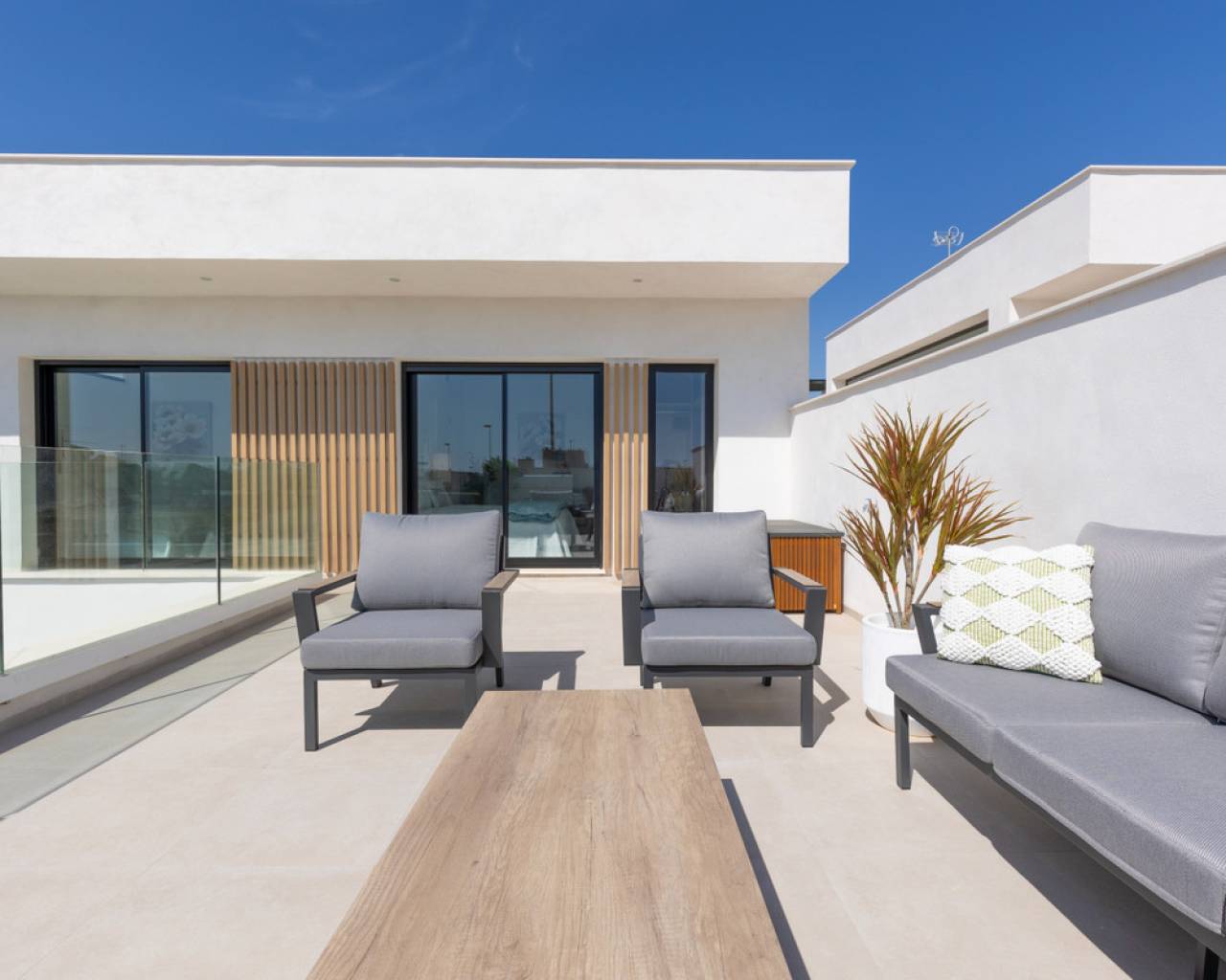 Casa Mediterránea Moderna en San Javier – 3 Dormitorios con Piscina Privada y Solárium Ubicada en la vibrante localidad de San Javier, esta elegante propiedad de 3 dormitorios ofrece el equilibrio perfecto entre comodidad, diseño y conveniencia. A solo 49 minutos del aeropuerto de Alicante y 26 minutos del aeropuerto de Murcia, con acceso rápido a centros comerciales y la autovía, esta casa está idealmente situada tanto para vivir a tiempo completo como para escapadas vacacionales. La residencia cuenta con una piscina privada, un solárium soleado y unos interiores luminosos realzados por aire acondicionado, iluminación moderna y electrodomésticos de calidad. Su diseño de planta abierta y acabados contemporáneos la hacen perfecta para relajarse, recibir invitados o disfrutar del clima mediterráneo durante todo el año. Una opción ideal para una residencia permanente, segunda vivienda o inversión inteligente en la Costa Cálida, que ofrece tranquilidad sin sacrificar la conectividad con las comodidades locales y los enlaces de transporte.