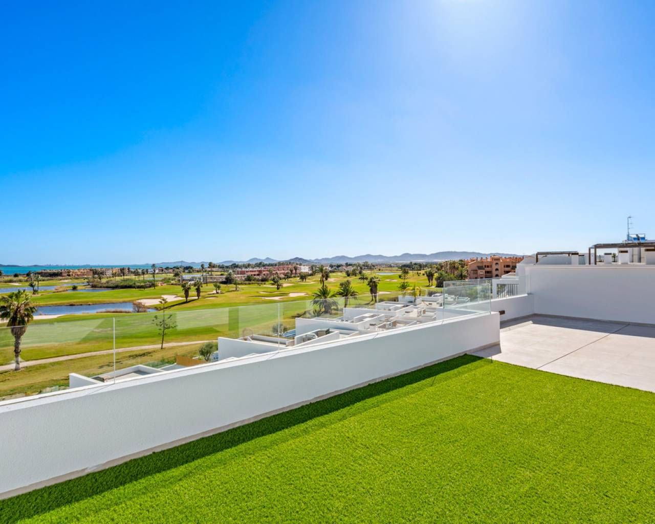 Estos apartamentos contemporáneos están ubicados en una zona privilegiada de Los Alcázares, ofreciendo un estilo de vida excepcional en la Costa Cálida. Situados en primera línea de un prestigioso campo de golf, reconocido por su exuberante vegetación y sus tranquilos lagos, las viviendas ofrecen impresionantes vistas tanto al campo como al Mar Menor. La ubicación es especialmente conveniente, ya que está conectada mediante caminos peatonales con el centro de la ciudad, permitiendo un fácil acceso a los servicios locales mientras se mantiene un ambiente tranquilo. Cada apartamento está diseñado con un enfoque en la calidad y la funcionalidad, con una arquitectura moderna y acabados interiores de alto nivel. Las cocinas están completamente equipadas con elegantes muebles, integrados perfectamente en el diseño de concepto abierto. Para el confort durante todo el año, las viviendas incluyen preinstalación de aire acondicionado por conductos y persianas motorizadas en los dormitorios. Los residentes pueden disfrutar de amplias zonas comunes, incluyendo una gran piscina con áreas dedicadas para la relajación y el juego infantil. La seguridad y la comodidad están garantizadas con un sistema de videoportero y acceso para vehículos con puerta cerrada, y cada unidad incluye acceso a una zona de aparcamiento comunitario y trasteros privados. Ya sea como residencia permanente o como casa de vacaciones, estas viviendas ofrecen una combinación perfecta de lujo y tranquilidad en Murcia.