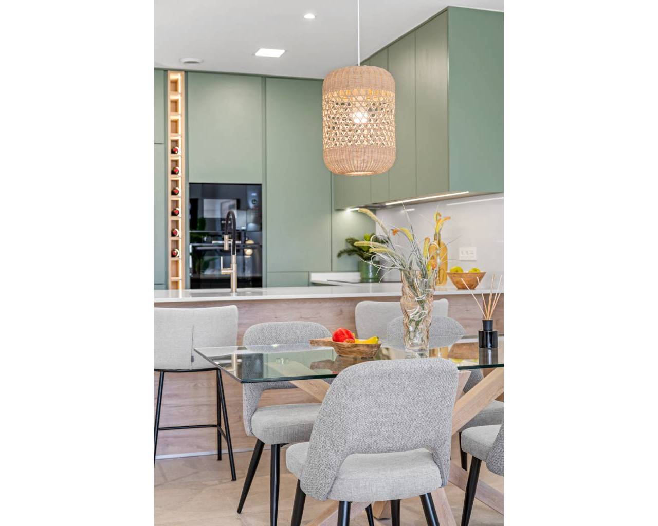 Estos apartamentos contemporáneos están ubicados en una zona privilegiada de Los Alcázares, ofreciendo un estilo de vida excepcional en la Costa Cálida. Situados en primera línea de un prestigioso campo de golf, reconocido por su exuberante vegetación y sus tranquilos lagos, las viviendas ofrecen impresionantes vistas tanto al campo como al Mar Menor. La ubicación es especialmente conveniente, ya que está conectada mediante caminos peatonales con el centro de la ciudad, permitiendo un fácil acceso a los servicios locales mientras se mantiene un ambiente tranquilo. Cada apartamento está diseñado con un enfoque en la calidad y la funcionalidad, con una arquitectura moderna y acabados interiores de alto nivel. Las cocinas están completamente equipadas con elegantes muebles, integrados perfectamente en el diseño de concepto abierto. Para el confort durante todo el año, las viviendas incluyen preinstalación de aire acondicionado por conductos y persianas motorizadas en los dormitorios. Los residentes pueden disfrutar de amplias zonas comunes, incluyendo una gran piscina con áreas dedicadas para la relajación y el juego infantil. La seguridad y la comodidad están garantizadas con un sistema de videoportero y acceso para vehículos con puerta cerrada, y cada unidad incluye acceso a una zona de aparcamiento comunitario y trasteros privados. Ya sea como residencia permanente o como casa de vacaciones, estas viviendas ofrecen una combinación perfecta de lujo y tranquilidad en Murcia.
