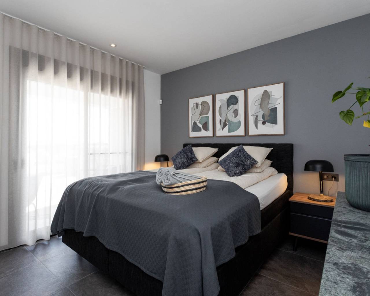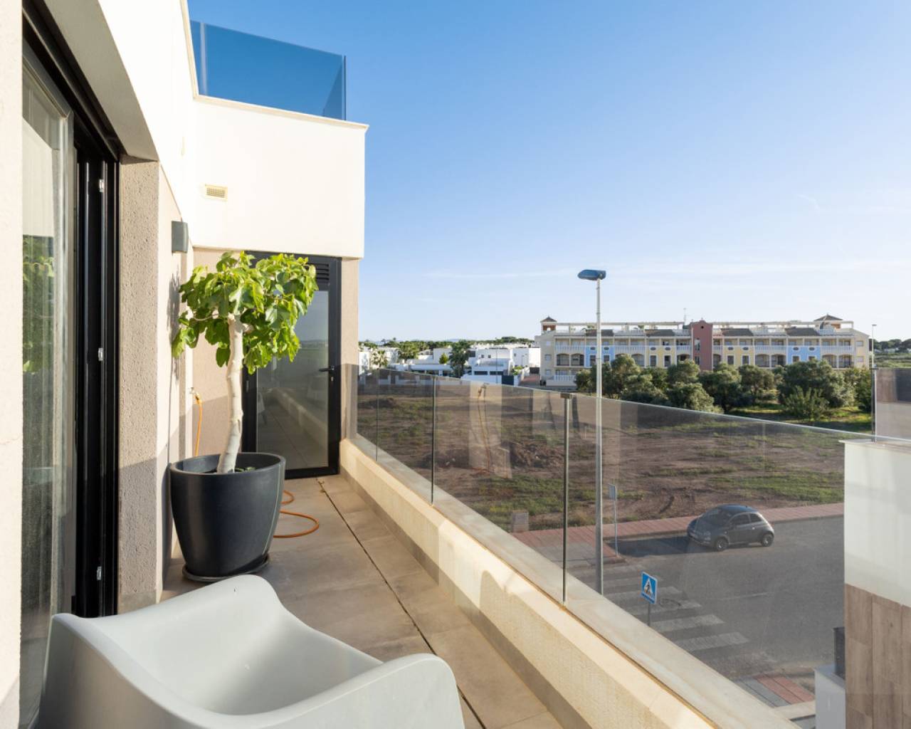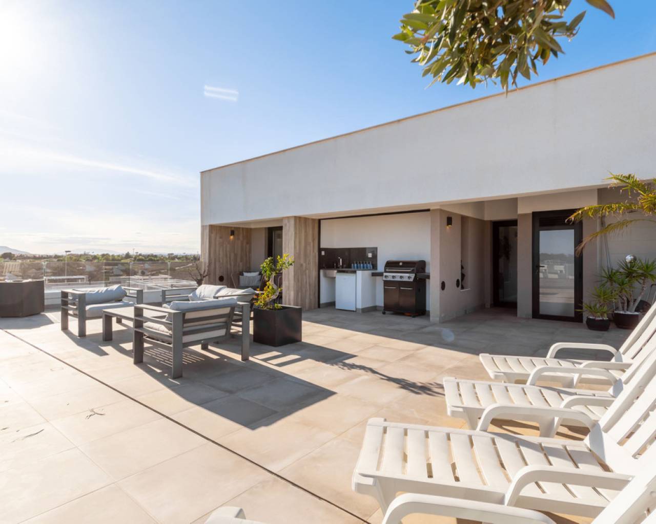 Exclusivo ático en dos niveles con piscina privada y vistas al mar. En un lugar donde la luz siempre se siente cerca y la presencia del mar se percibe en cada brisa, este magnífico ático se alza en dos niveles: un hogar donde la elegancia y la calidad de vida se fusionan en una armonía excepcional. Aquí vivirás en la cima, con vistas que se extienden hasta el horizonte y con una sensación de libertad que solo una azotea privada con piscina propia puede ofrecer. Desde el momento en que entras en la casa, te recibe un ambiente elegante y cuidado, donde la arquitectura y la comodidad se complementan a la perfección. Tres amplios dormitorios ofrecen amplio espacio tanto para la familia como para los invitados, y los cuatro elegantes baños, todos fabricados con materiales modernos y atemporales, le otorgan a la casa un carácter exclusivo que se percibe en cada detalle. Aquí, cada habitación está diseñada para brindar paz, espacio y una auténtica sensación de hogar. El salón y la cocina, de planta abierta, invitan a la vida social y a la convivencia. La cocina está totalmente equipada con electrodomésticos modernos, lista tanto para las comidas diarias como para las noches de verano, cuando la cena se cocina lentamente mientras el sol se pone afuera. La luz natural, la generosa altura del techo y la conexión con la terraza hacen que la frontera entre el interior y el exterior se difumine de una manera típica de la vida mediterránea. La terraza de la azotea es el alma de la casa: un lugar donde puedes empezar el día con un chapuzón en la piscina privada, disfrutar de largos almuerzos en la cocina exterior o relajarte en una tumbona mientras contemplas el entorno. Aquí te reciben vistas de 360 grados, destellos del mar y una atmósfera que crea una calma que perdura mucho después de la puesta del sol. Este es un lugar para vivir, no solo para vivir. La comodidad es tan tangible como la belleza. Desde el garaje subterráneo, el ascensor lleva directamente a la residencia: un lujo que facilita la vida diaria. Incluye dos plazas de garaje privadas, así como un amplio trastero junto a las plazas de aparcamiento, perfecto para equipo adicional, bicicletas, accesorios de playa o efectos personales. La zona que rodea la casa ofrece lo mejor de ambos mundos: una vida costera tranquila y segura, a la vez que está cerca del corazón de la ciudad y de sus servicios. Aquí encontrará paseos marítimos, playas de arena dorada, bares de tapas, restaurantes, instalaciones deportivas y zonas verdes. Para los amantes del golf, hay varios campos a poca distancia en coche, y se puede llegar tanto a La Zenia Boulevard como a Cartagena y al aeropuerto de Murcia en aproximadamente media hora. Este ático es un hogar para quienes buscan algo más que una residencia: es un lugar donde el lujo moderno se encuentra con el ritmo tranquilo del Mediterráneo, donde cada día se siente como una nueva oportunidad y donde el sol siempre juega el papel principal. No dude en contactarnos para obtener más información o reservar una visita. También ofrecemos visitas digitales para quienes no puedan desplazarse.