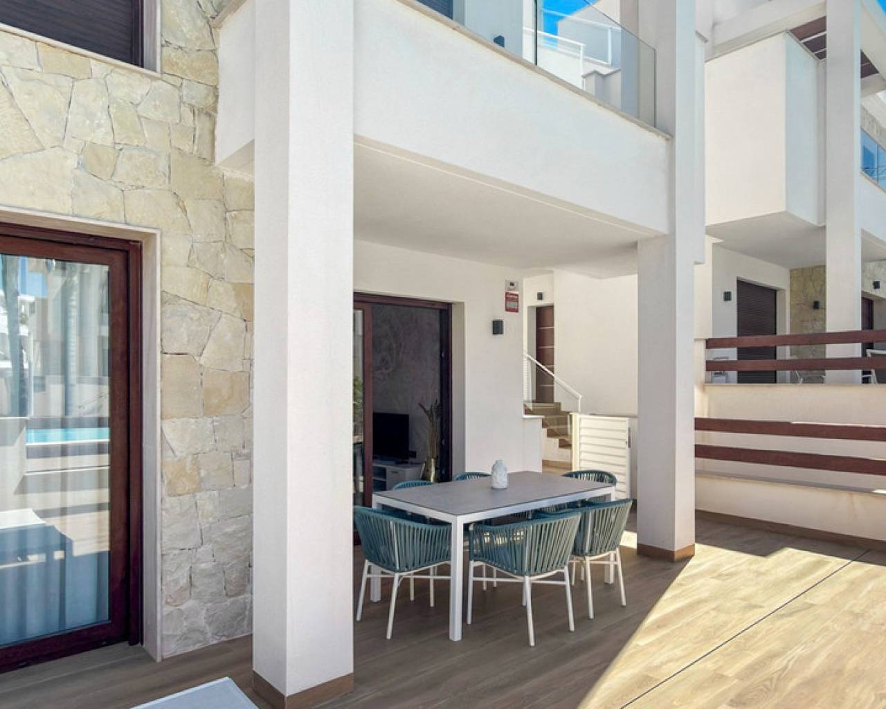 Descubre este apartamento de 2 dormitorios en planta baja, listo para entrar a vivir, en Los Balcones, con acceso directo a jardines y dos piscinas semiolímpicas. Vivienda luminosa y moderna con salón abierto, 2 baños con suelo radiante y totalmente amueblada con acabados de alta calidad. Dispone de dos terrazas privadas: una orientada al suroeste con acceso directo a la piscina y otra al sureste perfecta para las mañanas. Construido como vivienda piloto por Amay, incluye mejoras premium como cocina italiana de diseño, aire acondicionado, persianas eléctricas, alarma y parking subterráneo con trastero. Cerca de playas, campos de golf y La Zenia Boulevard, es ideal como vivienda habitual, inversión o casa vacacional. Listo para entrar a vivir.