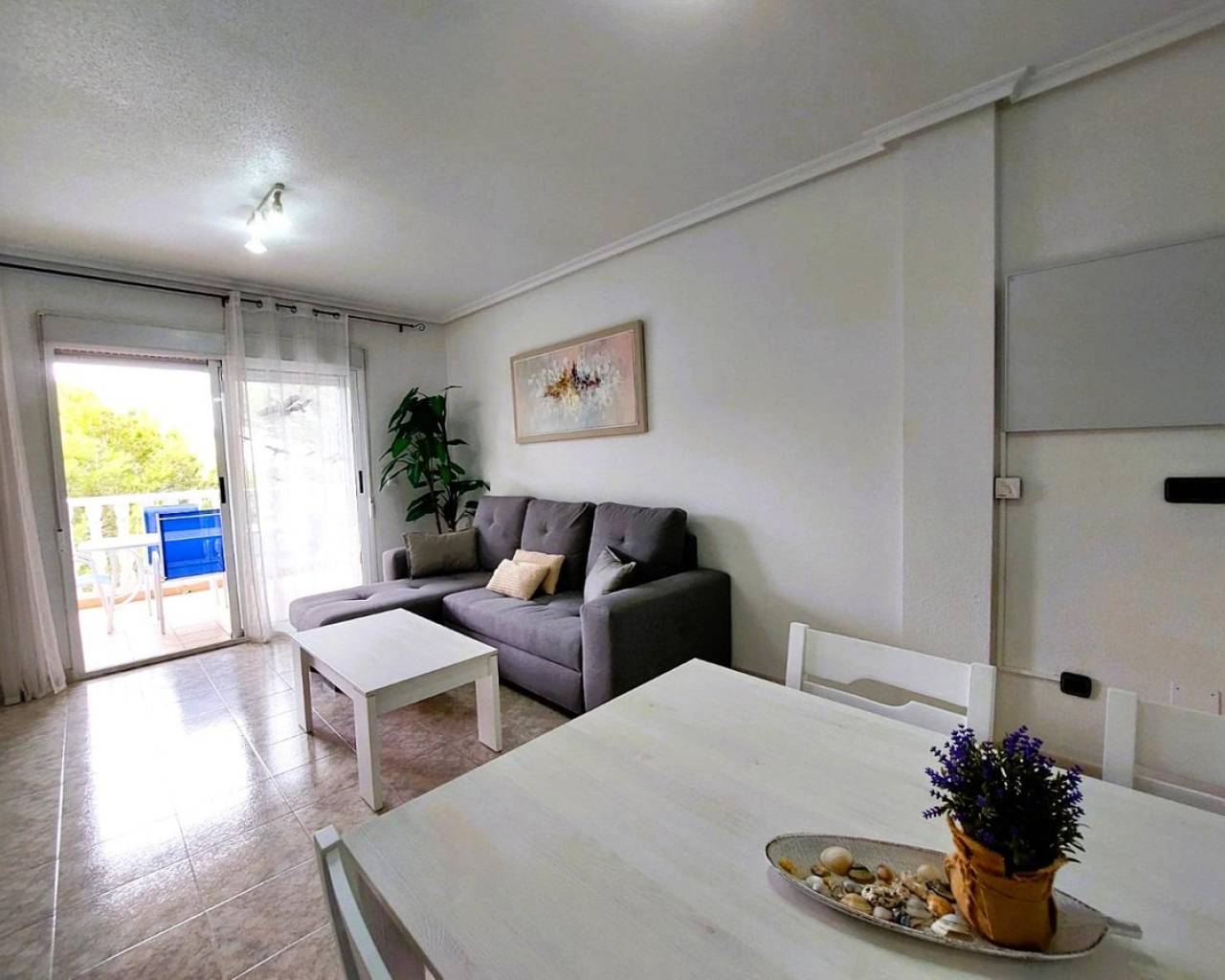 Bonito apartamento de 75 m2 con terraza de 6 m2 y vistas abiertas a zona de pinos, ideal para disfrutar de tranquilidad y luz natural. . . La vivienda ofrece 2 dormitorios dobles con armarios empotrados, 1 baño amplio y un espacioso salón-comedor con cocina abierta y salida a la terraza. Cuenta además con cuarto de lavandería/trastero. . . Se vende amueblado y en perfectas condiciones, listo para entrar a vivir o rentabilizar desde el primer día.. . Actualmente no hay ascensor, pero se ha pagado una derrama para instalarlo.. . Ubicado en una urbanización cerrada, con piscina comunitaria y zonas de aparcamiento, en Orihuela Costa. Su localización es especialmente práctica, entre Playa Flamenca, La Zenia y La Florida, a unos 10 minutos a pie del mar y del centro comercial Zenia Boulevard, con todos los servicios necesarios en el entorno.. . Contáctanos para visitar este apartamento, ideal para vivir, como segunda residencia o como inversión.