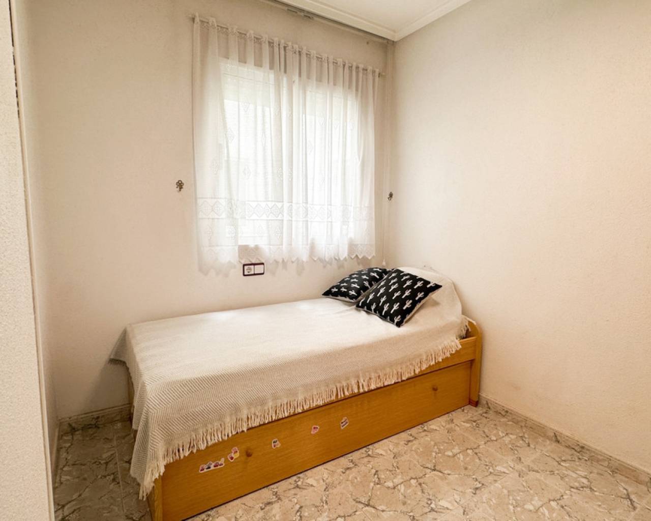 Este encantador apartamento de 2 dormitorios se encuentra en el corazón de la ciudad de Torrevieja, a solo 400 metros de la playa, ofreciendo una combinación ideal de comodidad y vida costera. La vivienda cuenta con dos amplios dormitorios y un baño, lo que la hace adecuada para parejas, familias pequeñas o como casa de vacaciones. El salón es luminoso y bien distribuido, creando un hogar cómodo y práctico. Un punto destacado es el balcón orientado al sur, que recibe sol durante todo el día, perfecto para relajarse, comer al aire libre o disfrutar del clima mediterráneo durante todo el año. El edificio está bien mantenido y dispone de ascensor, ofreciendo un acceso fácil y cómodo para todas las edades. Su ubicación céntrica permite ir a pie a tiendas, restaurantes, cafeterías y todos los servicios, mientras que la playa está a pocos minutos andando.