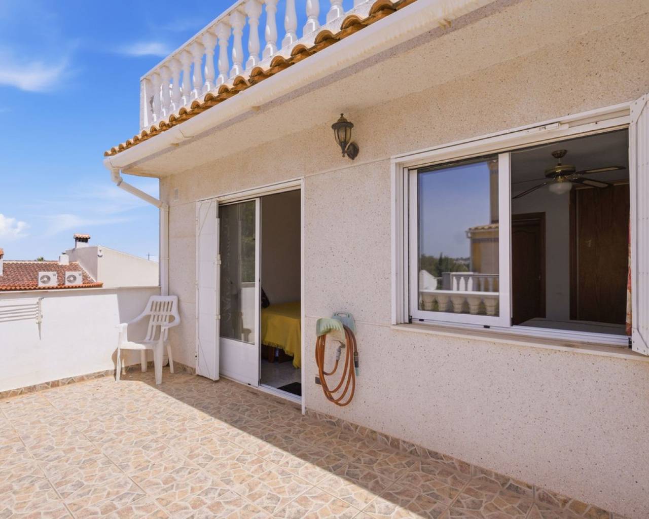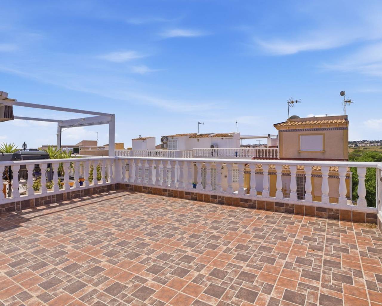Bienvenido a La Florida y a este amplio adosado con orientación suroeste, perfectamente diseñado para disfrutar del sol durante todo el día. La vivienda cuenta con tres dormitorios de generosas dimensiones y dos baños, además de una luminosa cocina de concepto abierto integrada con el salón, creando un ambiente cómodo y acogedor. Uno de los grandes atractivos de esta propiedad son sus excelentes espacios exteriores. En la planta baja encontrará un jardín enlosado, ideal para relajarse o disfrutar con familiares y amigos. En la planta superior, una amplia terraza ofrece un espacio adicional para descansar, mientras que la espaciosa terraza en la azotea brinda bonitas vistas tanto al mar como a la montaña, perfecta para disfrutar de los atardeceres y del estilo de vida mediterráneo. La ubicación es muy conveniente, con varios establecimientos cercanos que ofrecen acceso a piscina y entretenimiento en vivo. Un supermercado se encuentra a solo 150 metros y tanto el popular mercadillo de los sábados como el centro comercial Zenia Boulevard están a poca distancia a pie.