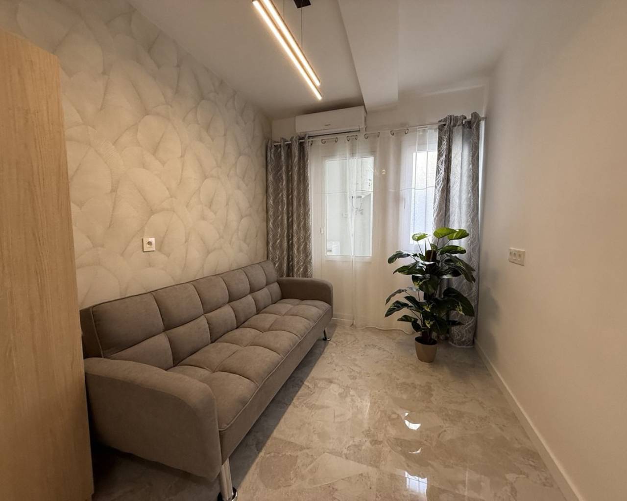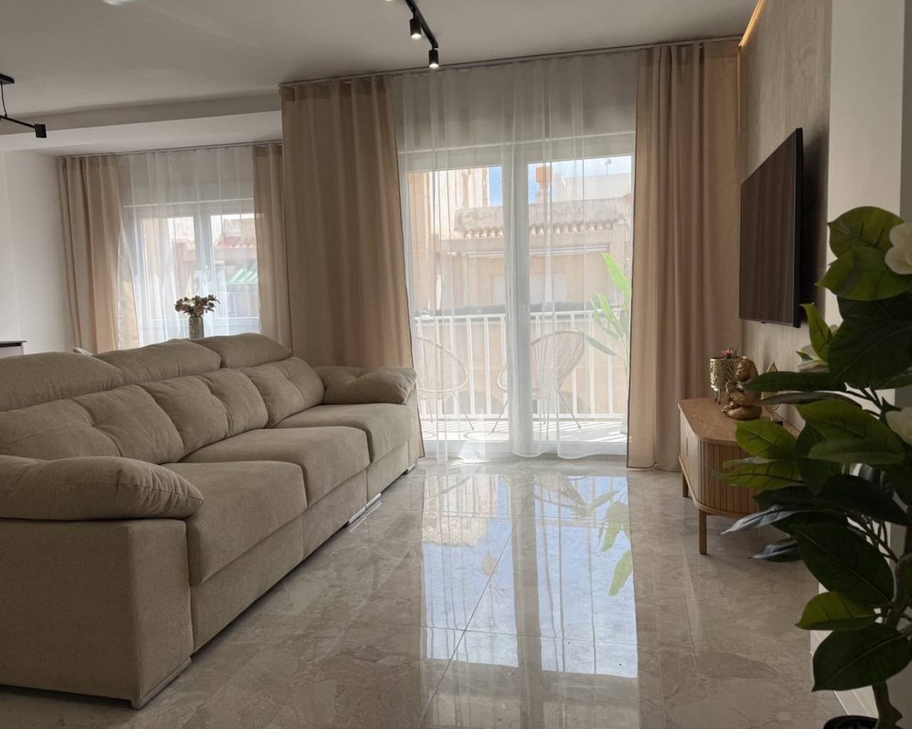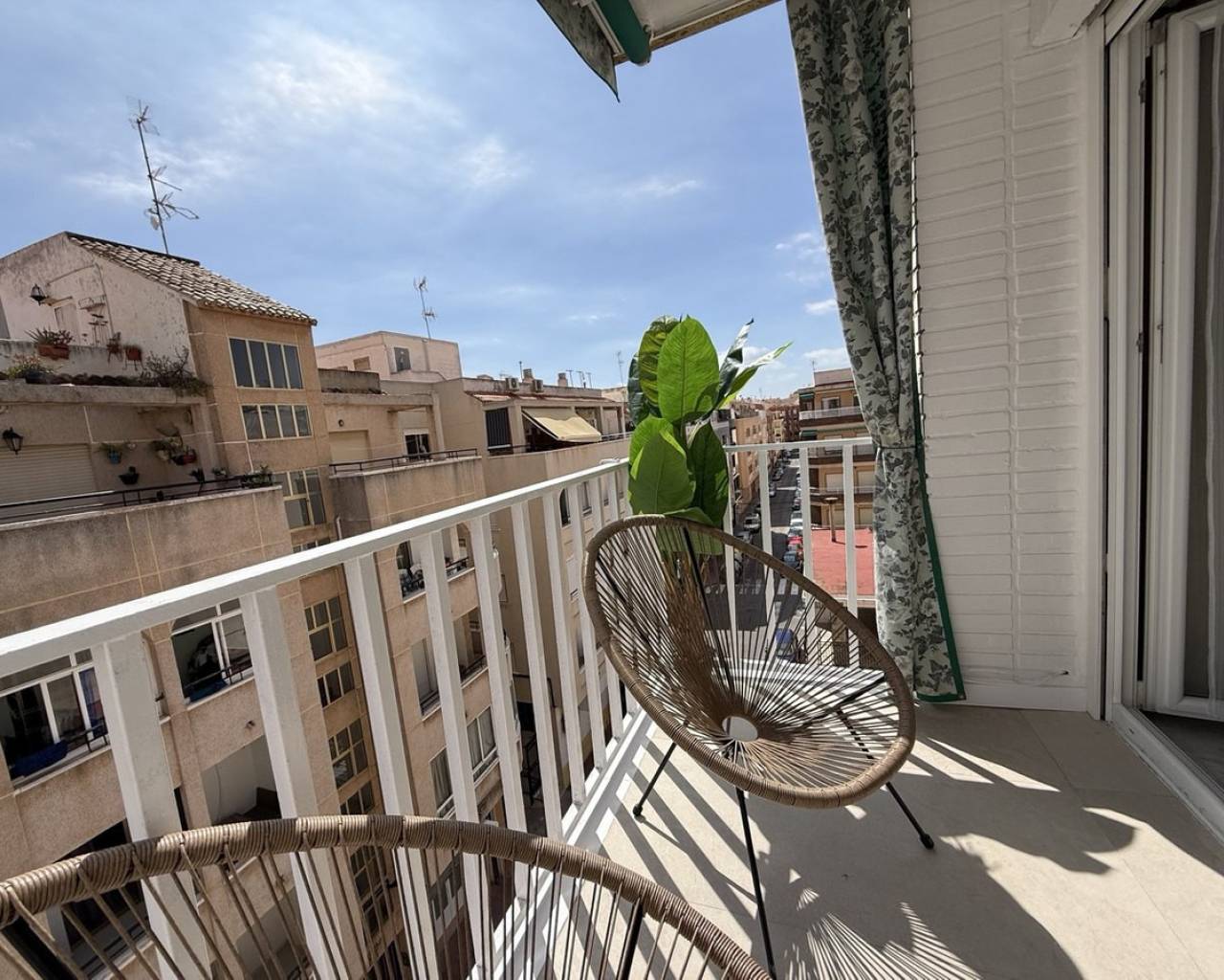 Descubra este excepcional ático en el corazón de Torrevieja, que ofrece una ubicación privilegiada y una renovación completa de alta calidad. Este apartamento luminoso y espacioso ha sido completamente reformado más allá de las actualizaciones cosméticas, incluyendo nueva fontanería y cableado eléctrico, garantizando comodidad y fiabilidad a largo plazo. La renovación cuenta con paredes lisas, nuevos suelos en toda la vivienda, así como puertas nuevas y ventanas de doble acristalamiento, todo acabado con un alto estándar. Ofrece tres dormitorios bien diseñados, combinando un espacio generoso con una sensación acogedora, y un baño moderno con ducha a ras de suelo y calefacción por suelo radiante.La amplia zona de estar llena de luz crea un espacio acogedor para relajarse o entretener, con aire acondicionado en la sala de estar y en un dormitorio. La cocina viene completamente equipada con electrodomésticos nuevos, y todos los muebles y la decoración están incluidos en el precio, convirtiéndolo en un hogar listo para entrar a vivir. Además, la propiedad incluye un trastero en el ático de 4 m² y acceso a un solárium comunitario, perfecto para disfrutar del sol. Un ático llave en mano ideal en una de las zonas más cotizadas de la Costa Blanca.