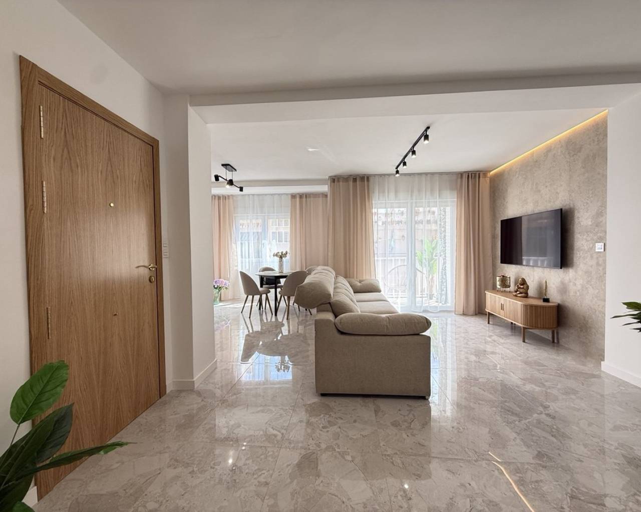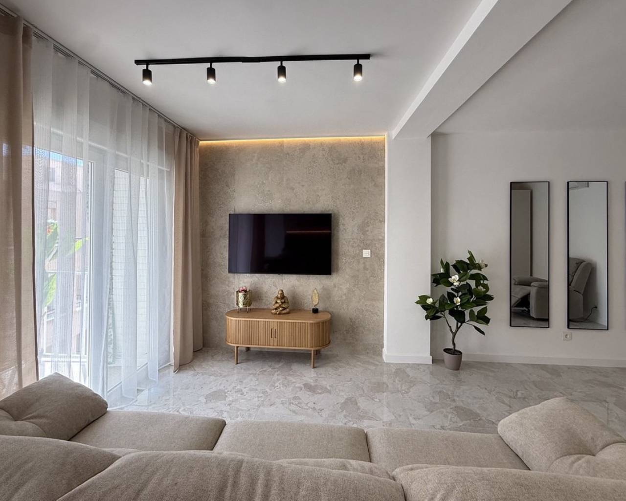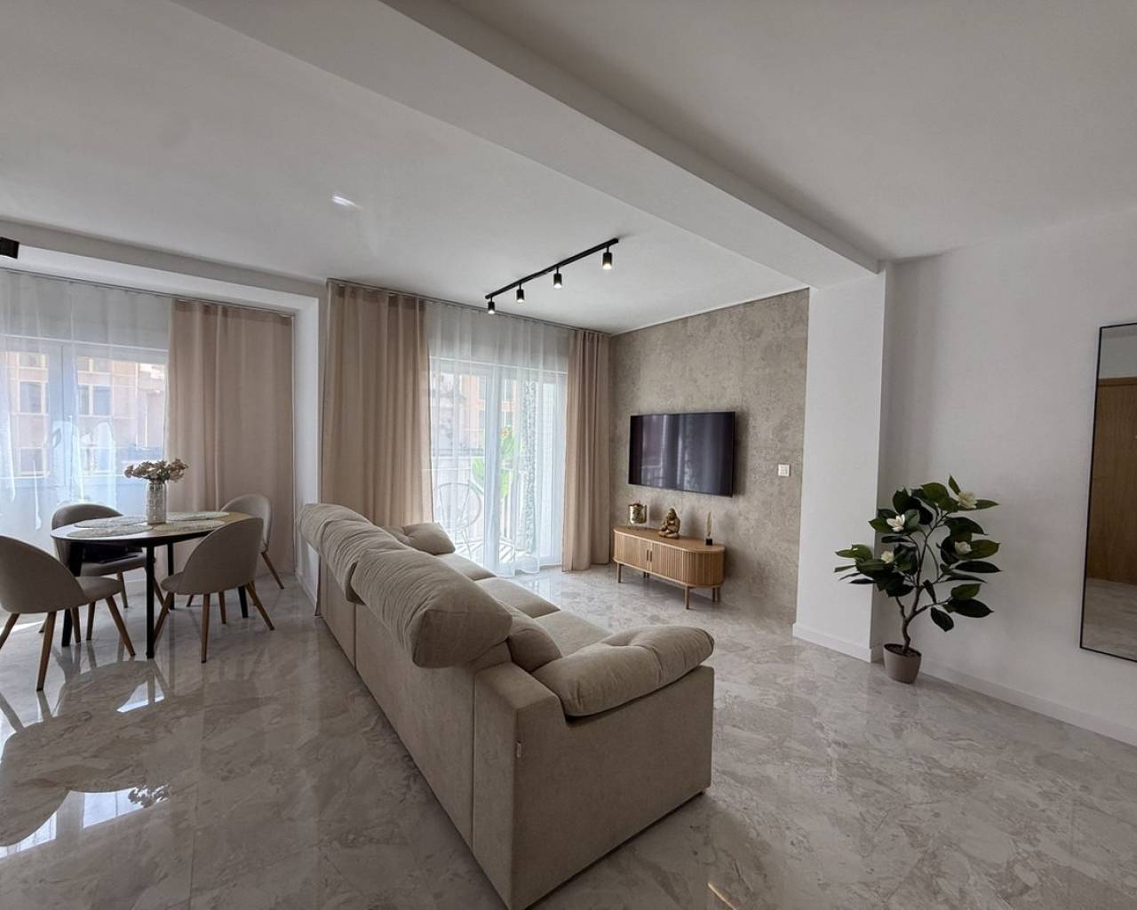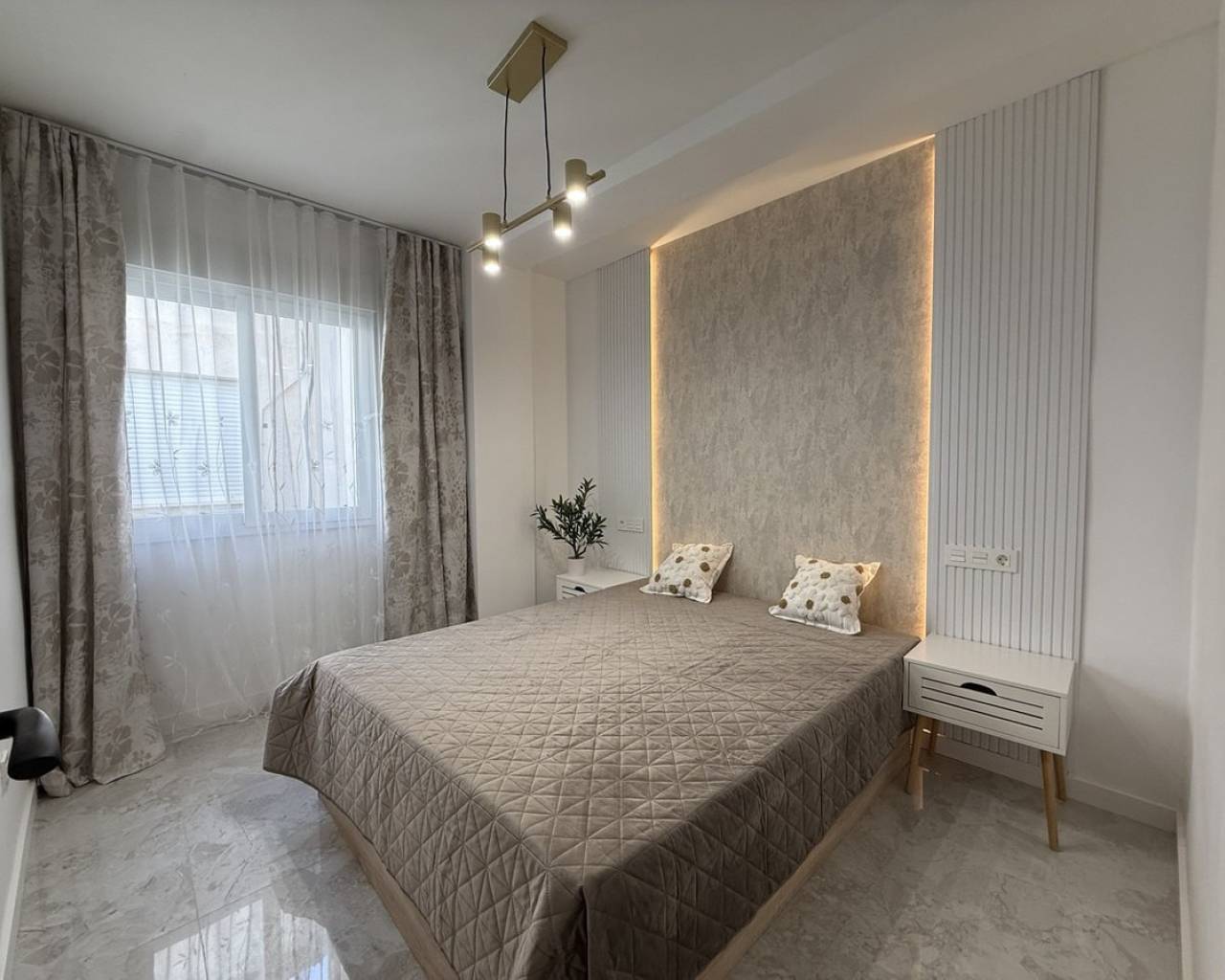 Descubra este excepcional ático en el corazón de Torrevieja, que ofrece una ubicación privilegiada y una renovación completa de alta calidad. Este apartamento luminoso y espacioso ha sido completamente reformado más allá de las actualizaciones cosméticas, incluyendo nueva fontanería y cableado eléctrico, garantizando comodidad y fiabilidad a largo plazo. La renovación cuenta con paredes lisas, nuevos suelos en toda la vivienda, así como puertas nuevas y ventanas de doble acristalamiento, todo acabado con un alto estándar. Ofrece tres dormitorios bien diseñados, combinando un espacio generoso con una sensación acogedora, y un baño moderno con ducha a ras de suelo y calefacción por suelo radiante.La amplia zona de estar llena de luz crea un espacio acogedor para relajarse o entretener, con aire acondicionado en la sala de estar y en un dormitorio. La cocina viene completamente equipada con electrodomésticos nuevos, y todos los muebles y la decoración están incluidos en el precio, convirtiéndolo en un hogar listo para entrar a vivir. Además, la propiedad incluye un trastero en el ático de 4 m² y acceso a un solárium comunitario, perfecto para disfrutar del sol. Un ático llave en mano ideal en una de las zonas más cotizadas de la Costa Blanca.