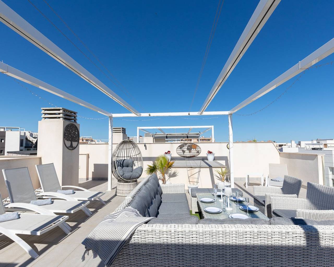 Hermoso ático en venta en Villamartín con amplio solárium. Descubra este magnífico ático orientado al sur en el codiciado Villamartín, idealmente ubicado a poca distancia de campos de golf, tiendas, restaurantes y todas las comodidades diarias. Esta propiedad combina confort, espacio y una excelente ubicación, perfecto tanto para residencia permanente como para vacaciones. El apartamento cuenta con un interior luminoso y espacioso con acceso directo a un gran solárium privado, donde puede disfrutar del sol, la relajación y momentos agradables con familia y amigos durante todo el año. Además, el solárium ofrece suficiente espacio para un salón, cocina exterior o jacuzzi. La propiedad incluye un amplio estacionamiento subterráneo, lo que proporciona comodidad y seguridad adicionales. Además, hay posibilidad de un trastero, ideal para guardar bicicletas, material de golf o pertenencias personales. En resumen, una oportunidad única para vivir en un entorno tranquilo y verde, con todas las instalaciones a mano y el mar Mediterráneo a poca distancia.