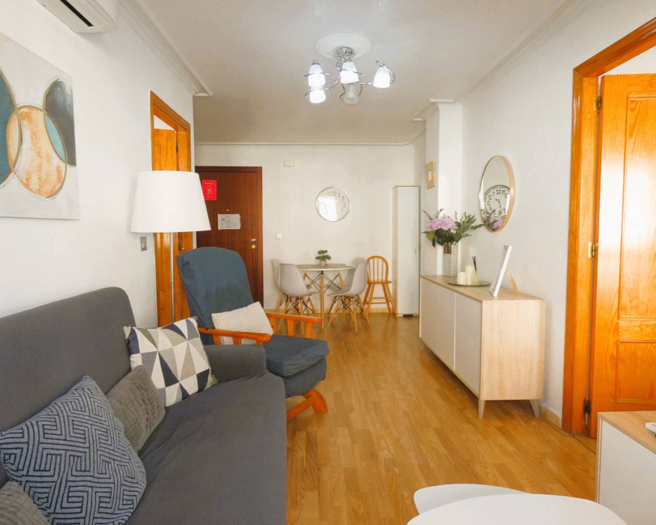 Este encantador apartamento representa una oportunidad excepcional tanto para quienes buscan un hogar junto al Mediterráneo como para inversores que deseen un activo con rentabilidad inmediata. Ubicado estratégicamente en la demandada zona de El Acequión en Torrevieja, la propiedad se encuentra a tan solo 200 metros de la orilla, permitiendo disfrutar de la brisa marina y del paseo marítimo en un breve paseo a pie. La vivienda se sitúa en una cuarta planta de un edificio perfectamente adaptado, contando con ascensor y rampa de acceso para personas con movilidad reducida, lo que garantiza una accesibilidad total. Al entrar, nos recibe un espacio armonioso y totalmente amueblado, donde destaca su salón-comedor equipado con aire acondicionado inverter para asegurar el máximo confort climático. Desde esta estancia se accede a un acogedor balcón de aproximadamente 4 m² con orientación oeste, un rincón ideal para relajarse y aprovechar el sol de la tarde. La distribución interior es sumamente funcional, ofreciendo dos amplios dormitorios con armarios empotrados, una cocina independiente totalmente equipada y un baño completo con plato de ducha. Un valor añadido indispensable es que la propiedad cuenta con licencia turística en vigor, lo que la convierte en una inversión segura en un entorno privilegiado. El apartamento se encuentra flanqueado por dos de las playas más emblemáticas de la ciudad. Por un lado, la Playa del Acequión, integrada en el entorno del puerto, destaca por sus aguas extraordinariamente tranquilas y seguras, casi sin oleaje, lo que la convierte en el lugar preferido para familias y para quienes buscan un baño relajado. Por otro lado, a escasos metros, se encuentra la Playa de los Náufragos, galardonada frecuentemente con Bandera Azul por la calidad de sus aguas y servicios. Esta playa es famosa por su ambiente animado, sus palmeras sobre la arena, sus zonas de juegos deportivos y un entorno natural inmejorable. Ambas playas están rodeadas de chiringuitos, restaurantes y un animado paseo marítimo, situando esta vivienda en el epicentro del ocio y el bienestar en Torrevieja, con todos los servicios necesarios abiertos durante todo el año. ¡Contáctanos hoy mismo para programar una visita!