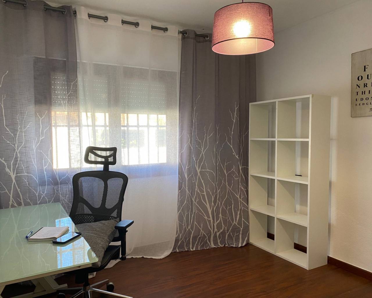 Impresionante villa independiente en la prestigiosa zona de Ciudad de Comunicaciones de San Miguel de Salinas, cuenta con dormitorio principal con baño con ducha, un dormitorio sin amueblar con armarios empotrados, el tercer dormitorio está actualmente vestido como un área de oficina con armarios empotrados.