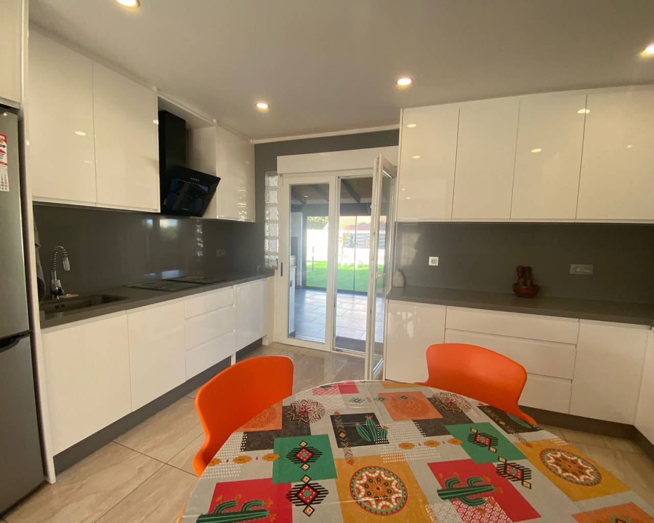 Al entrar por las puertas, verá el garaje privado con espacio de almacenamiento adicional, un agradable jardín con césped artificial y la entrada principal a la villa, aquí ingresamos a la sala de estar y la cocina moderna que nos lleva al jardín de invierno con una gran mesa de comedor y vidrio. Puertas que conducen al jardín de bajo mantenimiento y al área de la piscina, la piscina es de 8x4.