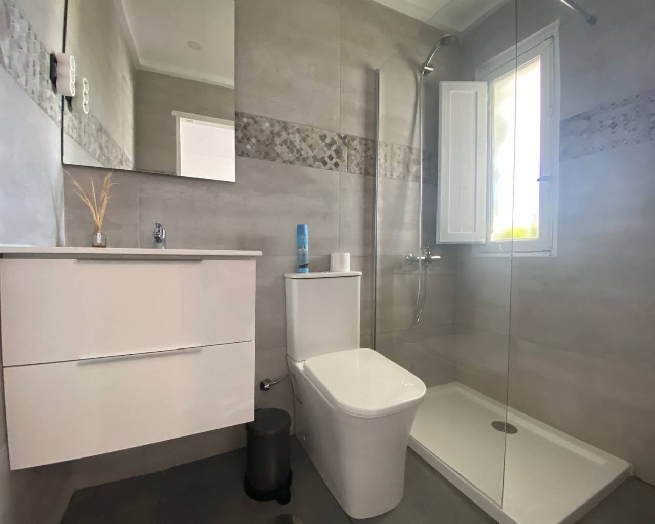 De vuelta en la villa, a través de la sala de estar, llegamos a un pasillo que conduce al baño familiar completo, 3 dormitorios y baño privado con ducha.