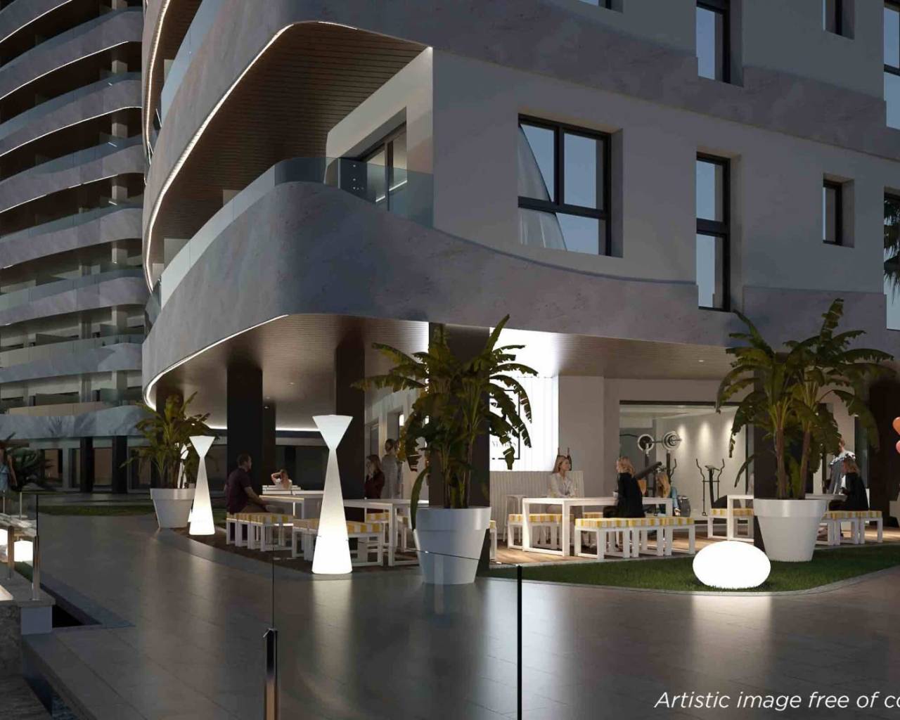 Situado en una ubicación inmejorable, en primera línea de playa, este exclusivo proyecto está compuesto por dos elegantes torres de 9 plantas, que albergan modernos apartamentos de 1, 2 y 3 dormitorios, todos con amplias terrazas y vistas directas al mar.