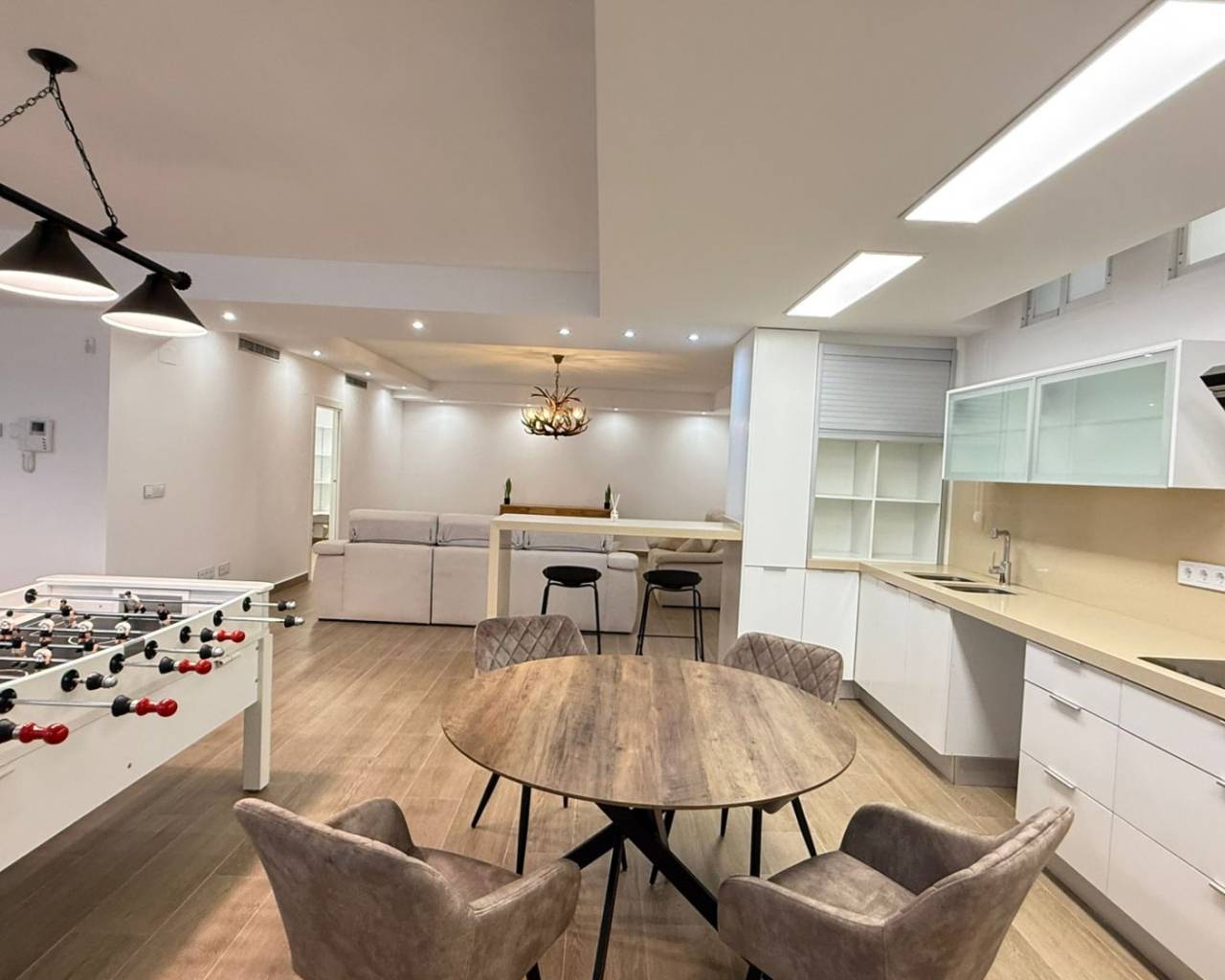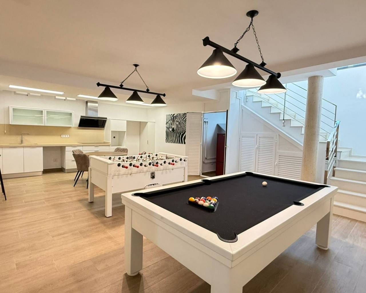 Bajando al sótano, descubrirás un auténtico espacio multifuncional. Hay una sala de juegos con billar y futbolín para los momentos de diversión, y un salón con cocina completa, perfecto para reuniones, celebraciones o incluso como apartamento de invitados. Esta planta también incluye dos dormitorios adicionales, un baño completo y dos trasteros, lo que aporta mucha versatilidad, ya sea para almacenamiento, despacho o zona de descanso extra.