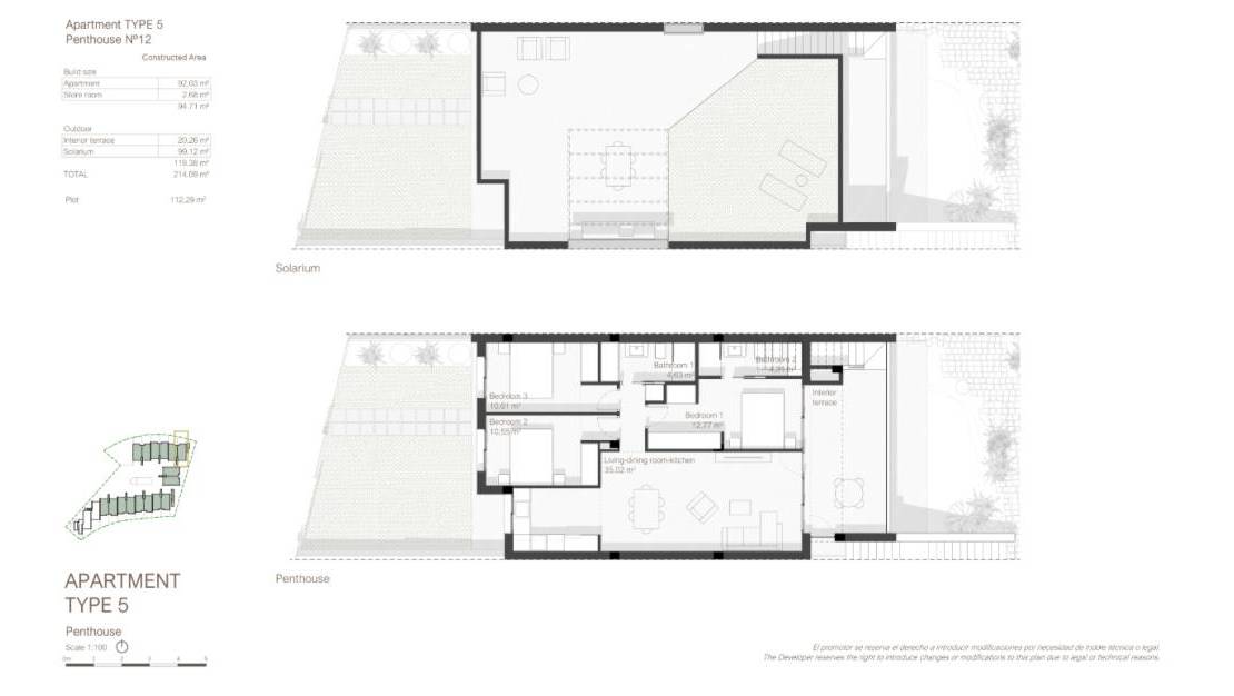 Áticos: Modernas viviendas de 3 dormitorios y 2 baños que incluyen un espectacular solárium privado de 90 m², ideal para tomar el sol, crear una zona chill-out o disfrutar de veladas con vistas panorámicas