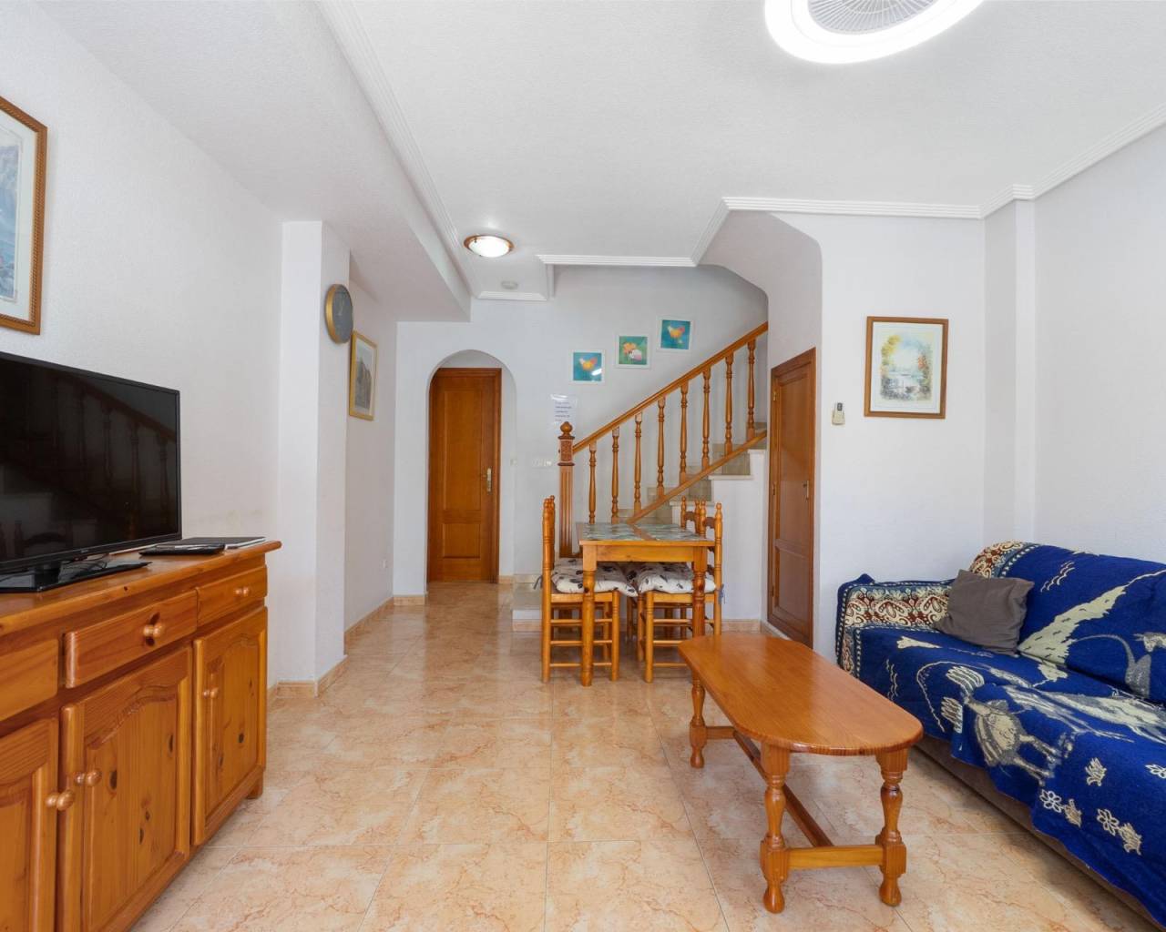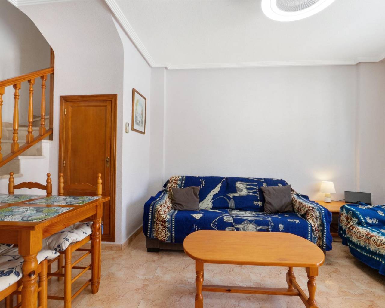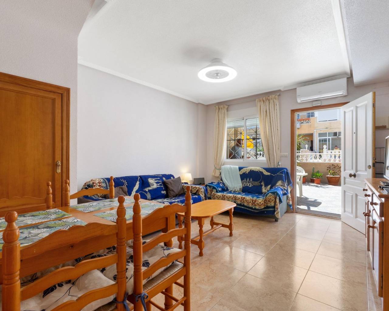 ???? Vivienda con encanto en residencial con piscina, a un paso del centro de Torrevieja~~Esta vivienda es ideal tanto para vivir todo el año como para disfrutar de tus vacaciones. Está situada en un residencial tranquilo con piscina comunitaria y zonas ajardinadas, en las afueras de Torrevieja pero muy cerca del centro y de todos los servicios.~~✨ Características principales:~???? Jardín enlosado privado de 25 m², perfecto para reuniones o tomar el sol~????️ Planta baja con salón, cocina equipada, patio trasero y aseo de cortesía~????️ Planta primera con 2 dormitorios y baño completo con bañera~☀️ Solárium privado donde disfrutar del clima mediterráneo todo el año~~Un hogar completo, cómodo y con espacios exteriores para disfrutar en familia o con amigos.~~???? Ubicación estratégica, tranquila pero bien conectada, cerca de supermercados, colegios, transporte público y a solo minutos de las playas de Torrevieja.~Si buscas una vivienda lista para entrar a vivir, en un entorno cuidado y con piscina, ¡esta es tu oportunidad!