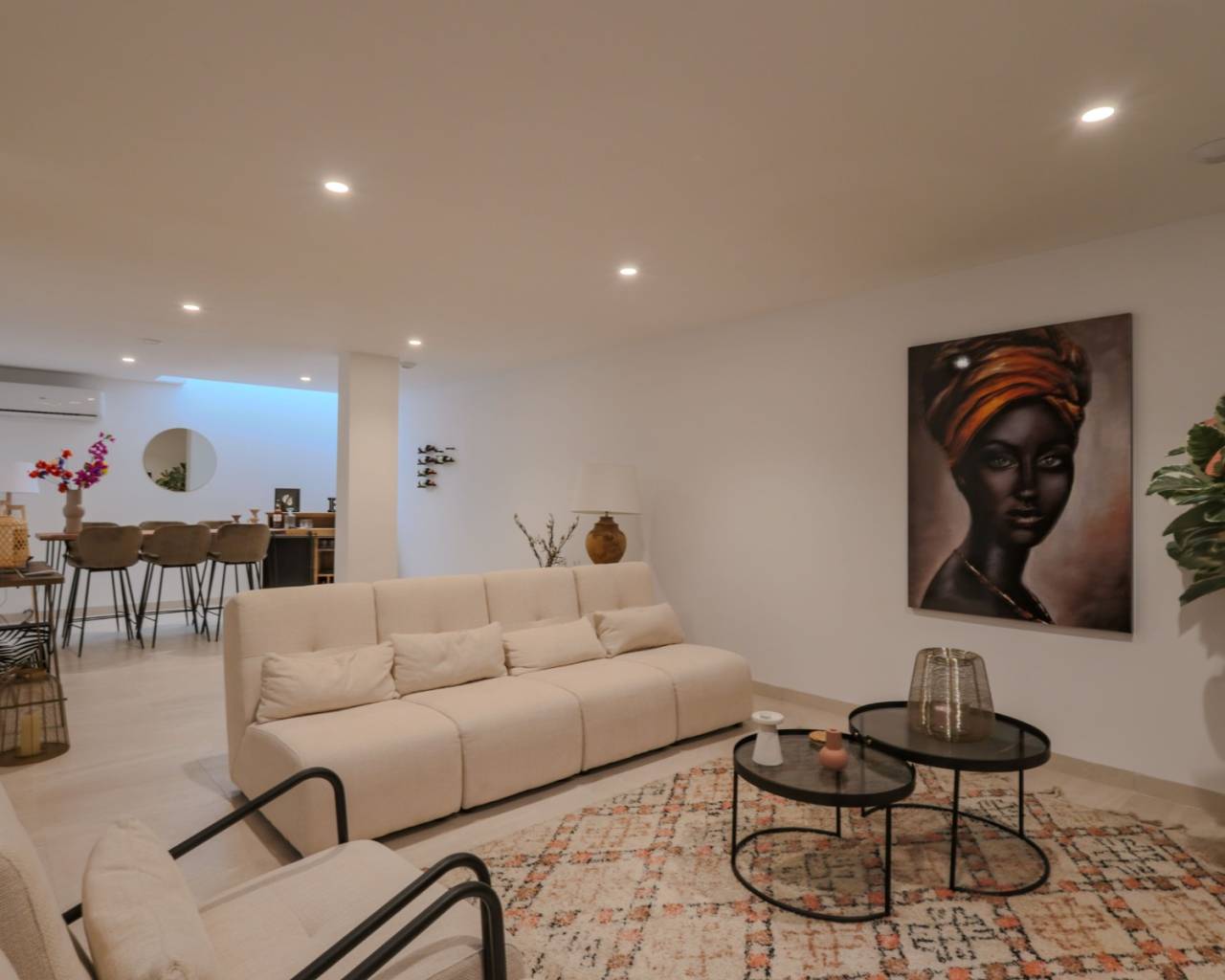 La planta baja ofrece un espacio abierto y luminoso que integra la sala de estar con la cocina de diseño, con acceso directo a la terraza y al jardín. También encontrará un dormitorio y un baño completo. En la planta superior se ubican dos dormitorios adicionales: el principal con baño en suite y acceso a una terraza soleada perfecta para disfrutar de la tranquilidad.