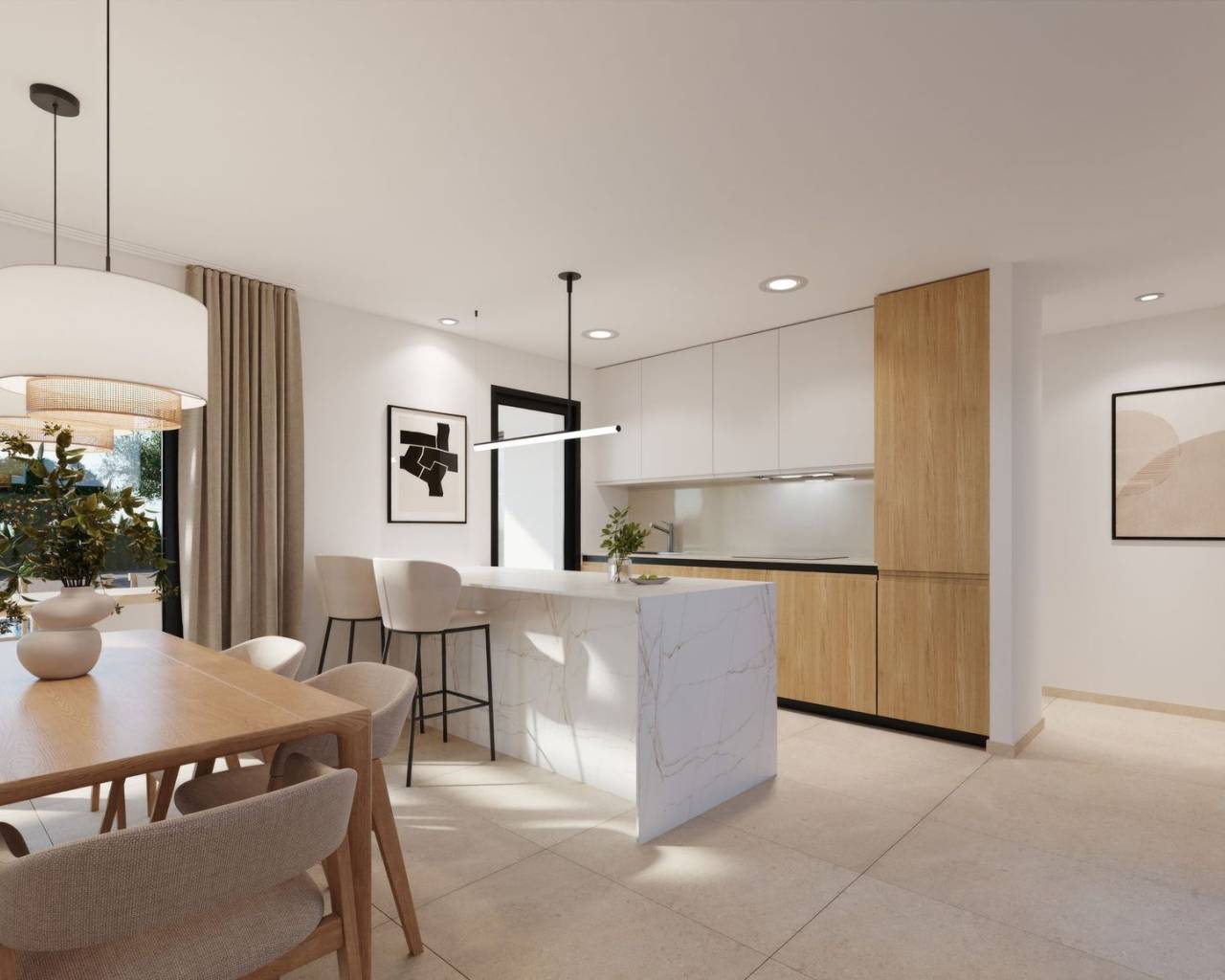 Persianas eléctricas, preinstalación de aire acondicionado y opciones de personalización de cocina y suelos.