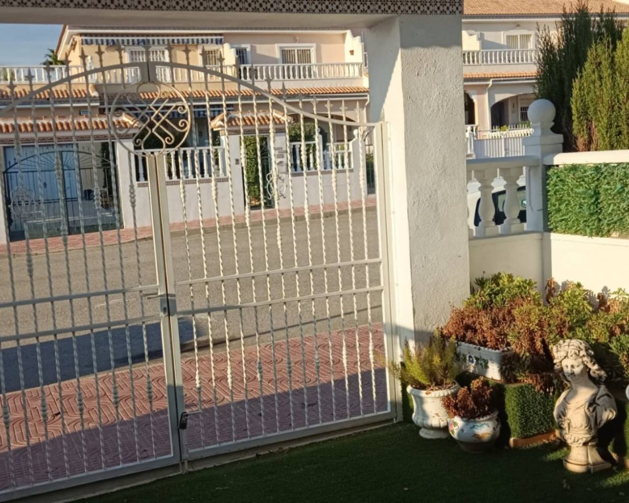 Aquí tenemos este magnífico bungalow en Doña Pepa. La propiedad cuenta con una entrada acristalada, salón con cocina abierta, dos dormitorios y dos baños, uno de ellos en suite. La parte delantera de la casa cuenta con una amplia terraza. En la parte trasera, hay otra terraza, desde la cual una escalera conduce a una gran azotea privada de 32 m², un lugar ideal para disfrutar del sol todo el día o de relajantes tardes con vistas a la zona. La propiedad se vende amueblada. Dispone de una impresionante piscina comunitaria a solo 1 minuto a pie. Se encuentra en la atractiva zona de Ciudad Quesada, conocida como Doña Pepa, en un barrio tranquilo y bien cuidado, con supermercados, cafeterías y restaurantes a poca distancia a pie.