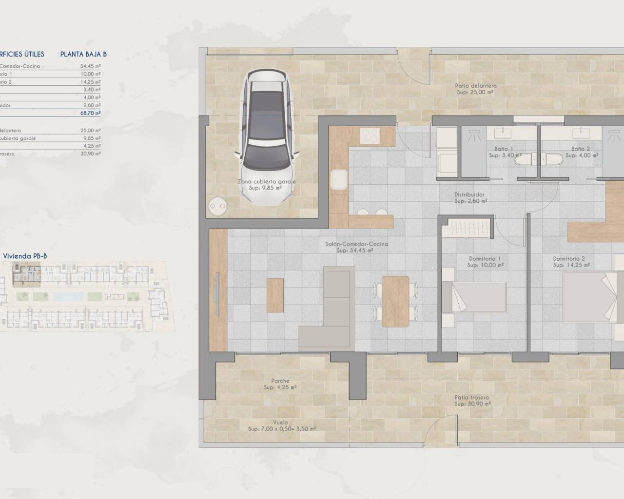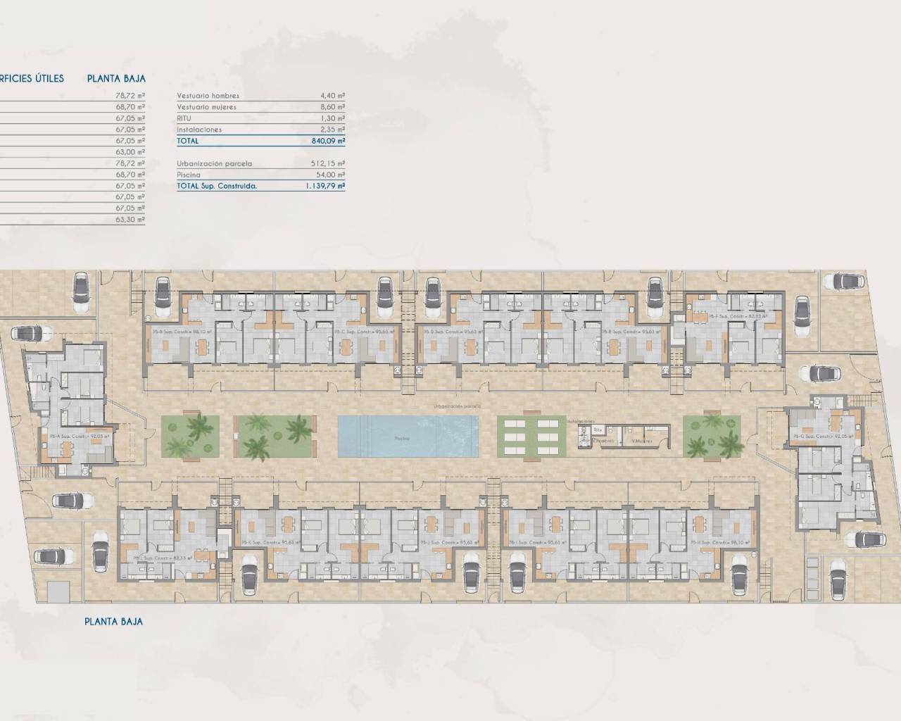 Viviendas de Obra Nueva en Torre-Pacheco, Costa Cálida Bungalows modernos con características excepcionales Descubra un nuevo complejo residencial en Torre-Pacheco, que ofrece 24 elegantes bungalows de 2 y 3 dormitorios. Elija entre viviendas en planta baja con amplias terrazas o unidades en primera planta con terrazas y solariums privados. Cada solarium incluye una pérgola, una zona de barbacoa y una cubierta reforzada, perfecta para instalar un jacuzzi. Todas las viviendas cuentan con una plaza de aparcamiento y aire acondicionado totalmente instalado, lo que garantiza el confort durante todo el año. Ubicación privilegiada en Torre-Pacheco Enclavada en el corazón de Torre-Pacheco, esta urbanización disfruta de la proximidad a los servicios esenciales, incluyendo supermercados, tiendas, bares y restaurantes. El vibrante centro de la ciudad, con su encantador ambiente español, está a poca distancia. Para los amantes de la playa, el impresionante Mar Menor está a sólo 10 minutos en coche, ofreciendo arenas doradas y aguas cristalinas. Disfrute de excelentes servicios comunitarios El complejo cuenta con una zona comunitaria bellamente ajardinada con exuberantes jardines y una piscina brillante, proporcionando un refugio sereno para relajarse y descansar. El clima soleado de la zona, con una media de 320 días de sol al año, complementa a la perfección estos espacios al aire libre. Rodeado de campos de golf galardonados Torre-Pacheco es un paraíso para los golfistas, rodeado de algunos de los campos de golf más renombrados de España. Estos campos se encuentran a poca distancia en coche, por lo que es un lugar ideal para los amantes del golf. Conexiones estratégicas con destinos clave Aeropuerto Internacional de Murcia: 20 km (aproximadamente 20 minutos en coche). Estación de tren: A sólo 700 metros, ofreciendo cómodas opciones de viaje. Centros Comerciales: Varios grandes complejos comerciales en un radio de 15 km. Playas: Las hermosas playas de la Costa Cálida se encuentran a escasos 10 km. Puertos y Puertos Deportivos: El puerto deportivo más cercano está a unos 12 km, perfecto para navegar y practicar deportes náuticos. Le espera un estilo de vida más saludable La Costa Cálida es famosa por su excepcional calidad de vida. Con baja humedad, aire limpio y un clima subtropical, esta zona es una de las más saludables de España. La perfecta combinación de belleza natural, brisa marina y abundante luz solar hacen de Torre-Pacheco un destino muy solicitado. Actúe ahora para asegurarse la casa de sus sueños No pierda esta oportunidad de poseer una casa moderna en una ubicación privilegiada. Póngase en contacto con nosotros hoy mismo para obtener más información sobre esta increíble promoción o para concertar una visita.