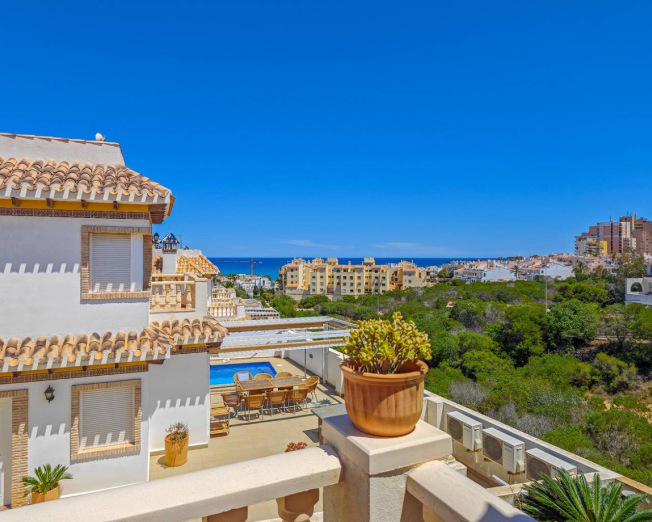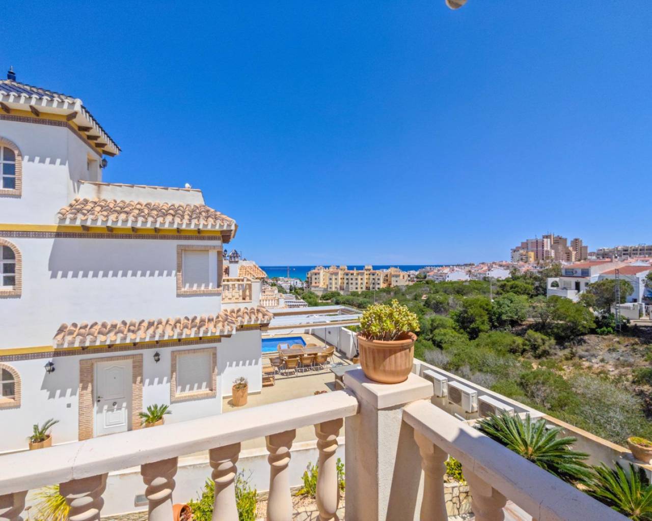 Os presento esta maravillosa Villa independiente en La Mata, una de las zonas más solicitadas de Costa Blanca. Se encuentra a tan solo 600m de la playa de La Mata, con unas preciosas vistas abiertas al mar mediterráneo. La propiedad ofrece una superficie construida de 97 m2 construidos, distribuida en dos plantas y un solárium en la tercera planta. Tiene un amplio salón amueblado. Una cocina independiente totalmente amueblada e equipada con electrodomésticos. Cuenta con 3 dormitorios , 2 baños y una terraza luminosa ,que aporta mucha luminosidad al interior de la casa. Cuenta con un sótano de 80m2 se podría hacer habitable. Además aparte tiene un garaje cerrado situado en el sótano de unos 60m2. La vivienda se entrega totalmente amueblada, lista para entrar a vivir. Tiene un jardín bien cuidado, de unos 225m2 , perfecto para momentos de ocio al aire libre. Gracias a su orientación sur, la villa disfruta de una excelente iluminación natural durante todo el día. La vivienda se encuentra en urbanización, en una zona estratégica: con todos los servicios a tu alcance: supermercados, colegios, tiendas, bancos y restaurantes. Todo lo que necesitas está a un paso. Todas las comodidades para ofrecerte una calidad de vida inigualable en una de las zonas más buscadas de la Costa Blanca. !No esperes mas ven a visitarlo!