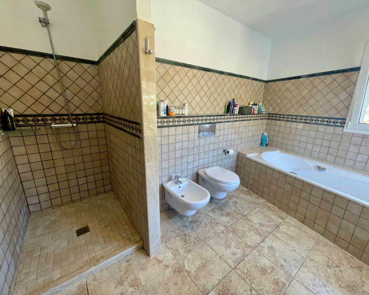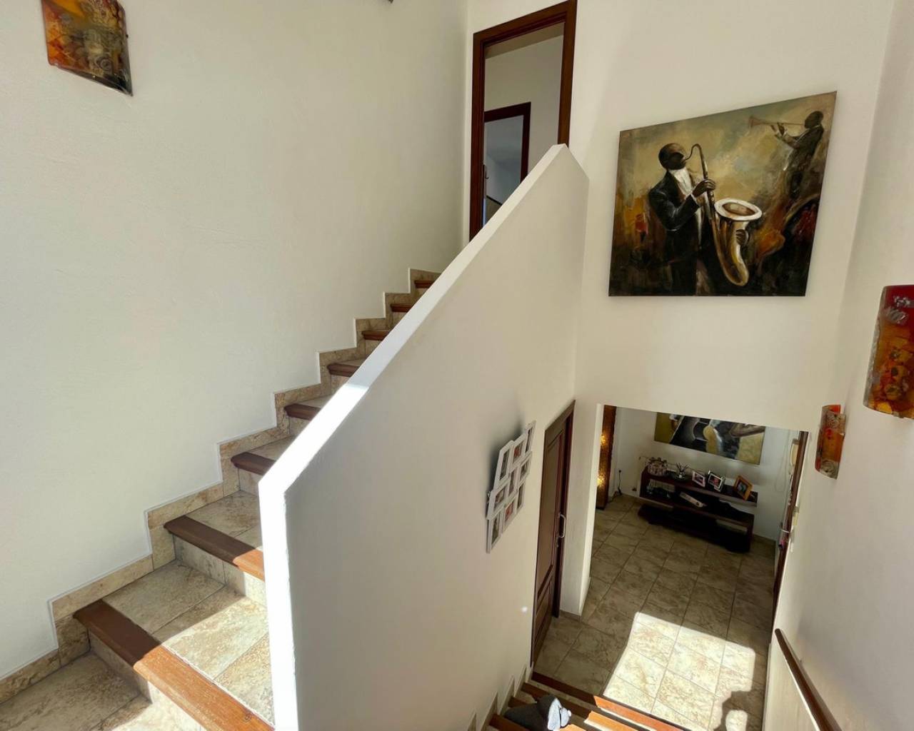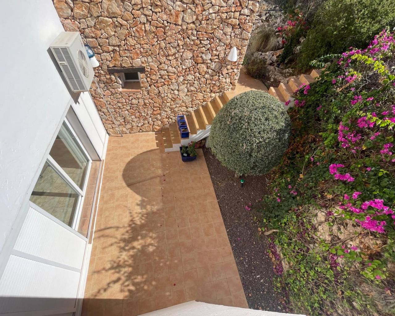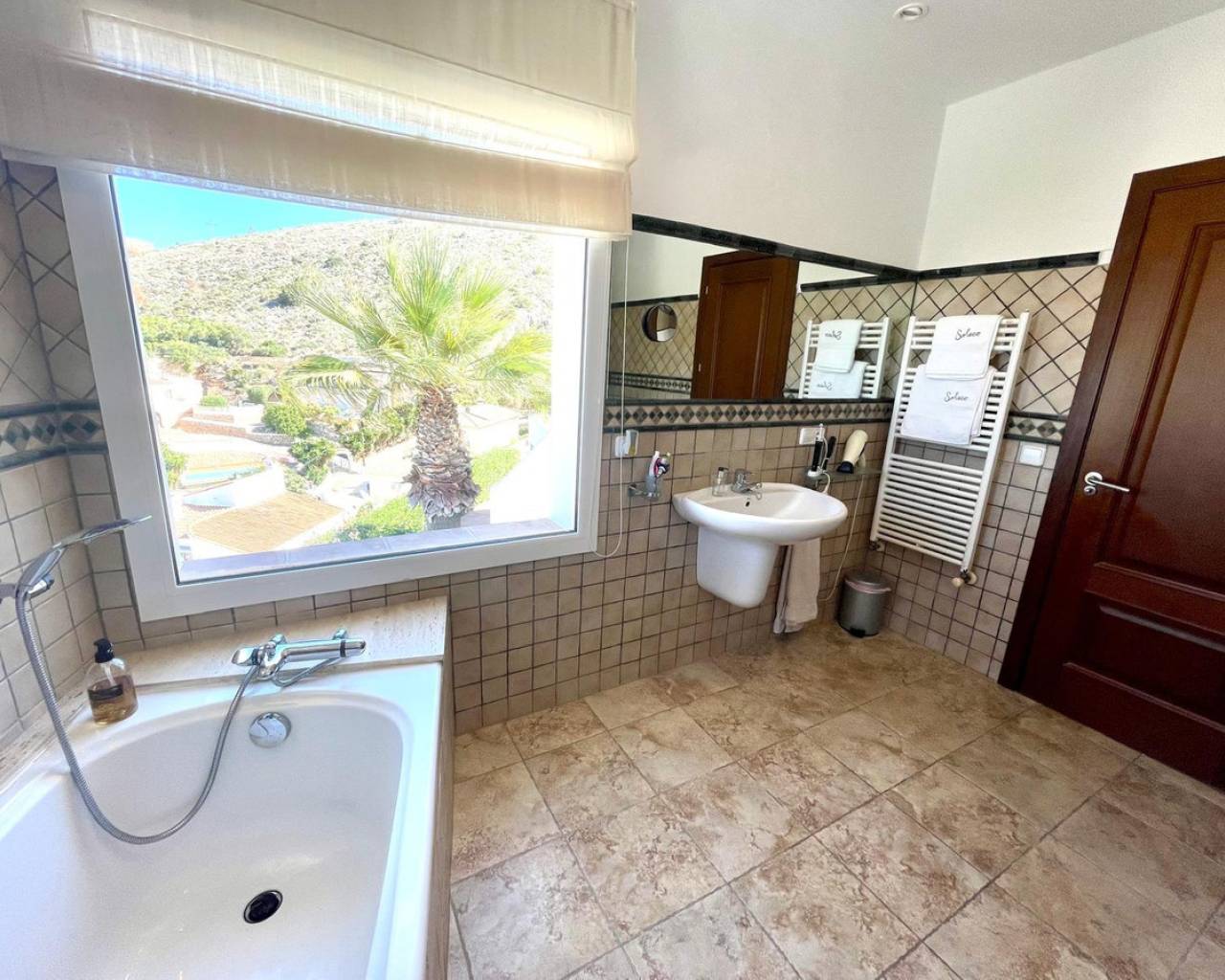 Villa consuelo, El Portet, Moraira. Villa Solace "La Villa Bond" Esta encantadora villa de estilo ibicenco es propiedad de dos productores de cine y teatro de renombre mundial, lo que da una pista de dónde proviene el nombre de esta villa. Los perales en la ladera sobre las villas vecinas miran hacia El Valle del Portet; esta villa podría ser el escenario de una película de James Bond, con espectaculares vistas panorámicas abiertas a las montañas de Benrnia y al mar azul turquesa. Al acercarse a Villa Solace, las puertas de entrada automatizadas de metal arquitectónico se abren y revelan un camino largo y amplio que lo lleva a una cochera espaciosa y a la entrada principal de esta exquisita propiedad. Al ingresar, lo recibirá una entrada amplia y luminosa. Pasillo que se abre a una gran sala de estar con una chimenea central que crea un ambiente acogedor. El salón se conecta a la perfección con la terraza cubierta para comer junto a la piscina, perfecta para recibir invitados o relajarse junto al agua. Junto al salón, encontrará una cocina moderna totalmente equipada con un lavadero en la parte trasera. Esta cocina ofrece un cómodo acceso a la amplia terraza cubierta, un lugar ideal para cenar al aire libre, relajarse o simplemente disfrutar del impresionante entorno. La piscina infinita, enmarcada por arbustos y árboles maduros y bien cuidados, ofrece un entorno sereno para nadar tranquilamente y tomar el sol. Al subir al primer piso, descubrirá dos elegantes dormitorios, cada uno con baño privado, armarios empotrados y aire acondicionado para mayor comodidad. Uno de estos dormitorios cuenta con acceso a una amplia terraza, lo que permite relajarse al aire libre en privado. El nivel superior de la villa está dedicado al lujoso dormitorio principal, que cuenta con un baño en suite con una amplia ducha a ras de suelo. Aquí, puede relajarse en la bañera mientras contempla la impresionante vista a través de la ventana panorámica diseñada especialmente. El dormitorio principal es excepcionalmente espacioso y luminoso, y también ofrece acceso a una gran terraza en la azotea donde podrá disfrutar de vistas panorámicas realmente impresionantes. El diseño interior combina maravillosamente paredes encaladas de piedra arenisca natural con vigas de madera y traviesas de jardín, encarnando la esencia de una villa de calidad ibicenca ubicada en la atractiva zona de El Portet de Moraira. Esta encantadora propiedad promete un estilo de vida sofisticado y tranquilo, perfecto para aquellos Buscando elegancia, comodidad y un entorno espectacular.