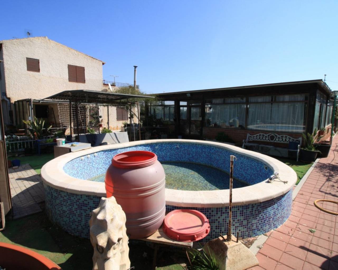 Ponemos a la venta esta espectacular finca en Lomas de Don Juan, a menos de 3 kilómetros de las playas de Campoamor y junto a los campos de golf. La finca, totalmente vallada, cuenta con una superficie de 3.500 metros cuadrados en la que se encuentra la vivienda principal, de 106 m2 construidos, distribuida en dos plantas. En la planta baja está el enorme salón con zona de comedor, chimenea de leña, la cocina independiente y un cuarto de baño con ducha. En la planta superior tenemos 2 dormitorios con acceso a una gran terraza, y otro cuarto de baño con ducha. La finca igualmente cuenta con otra construcción independiente, de 106 metros cuadrados, cuadras para caballos, gallinero, conejeras, estanque con peces, zona de barbacoa y cenador, aparcamiento para varios coches, invernadero y como no, piscina. En definitiva, es una finca de ensueño donde podrás vivir y disfrutar de la tranquilidad del campo, del mar y del fantástico clima mediterráneo.